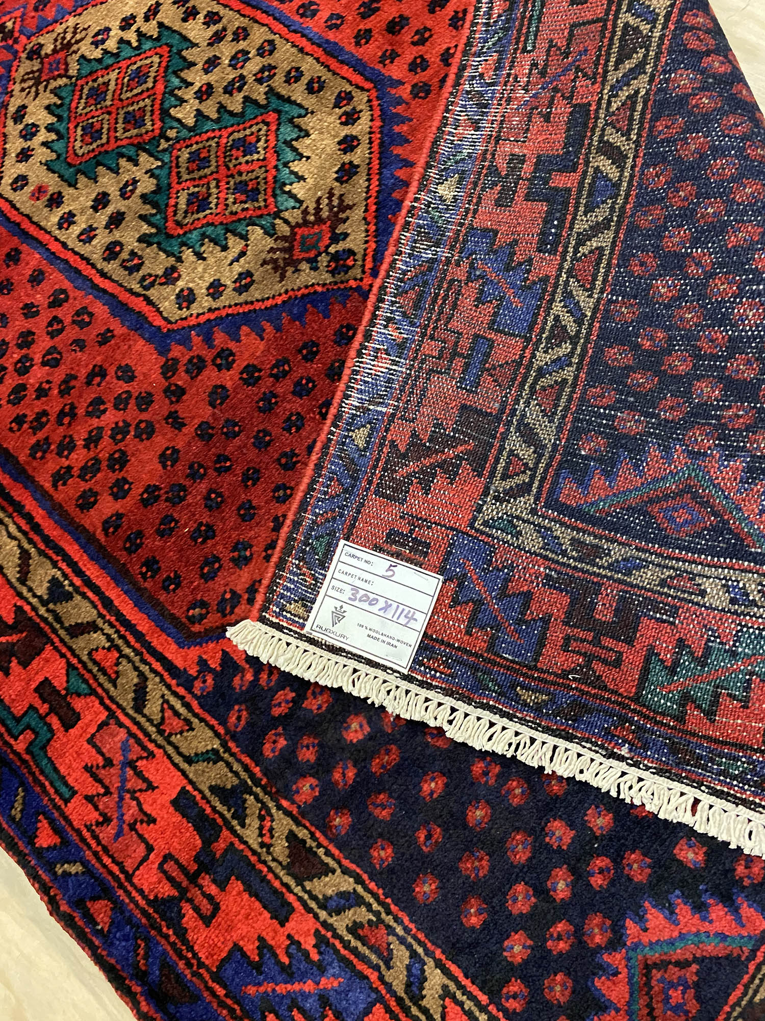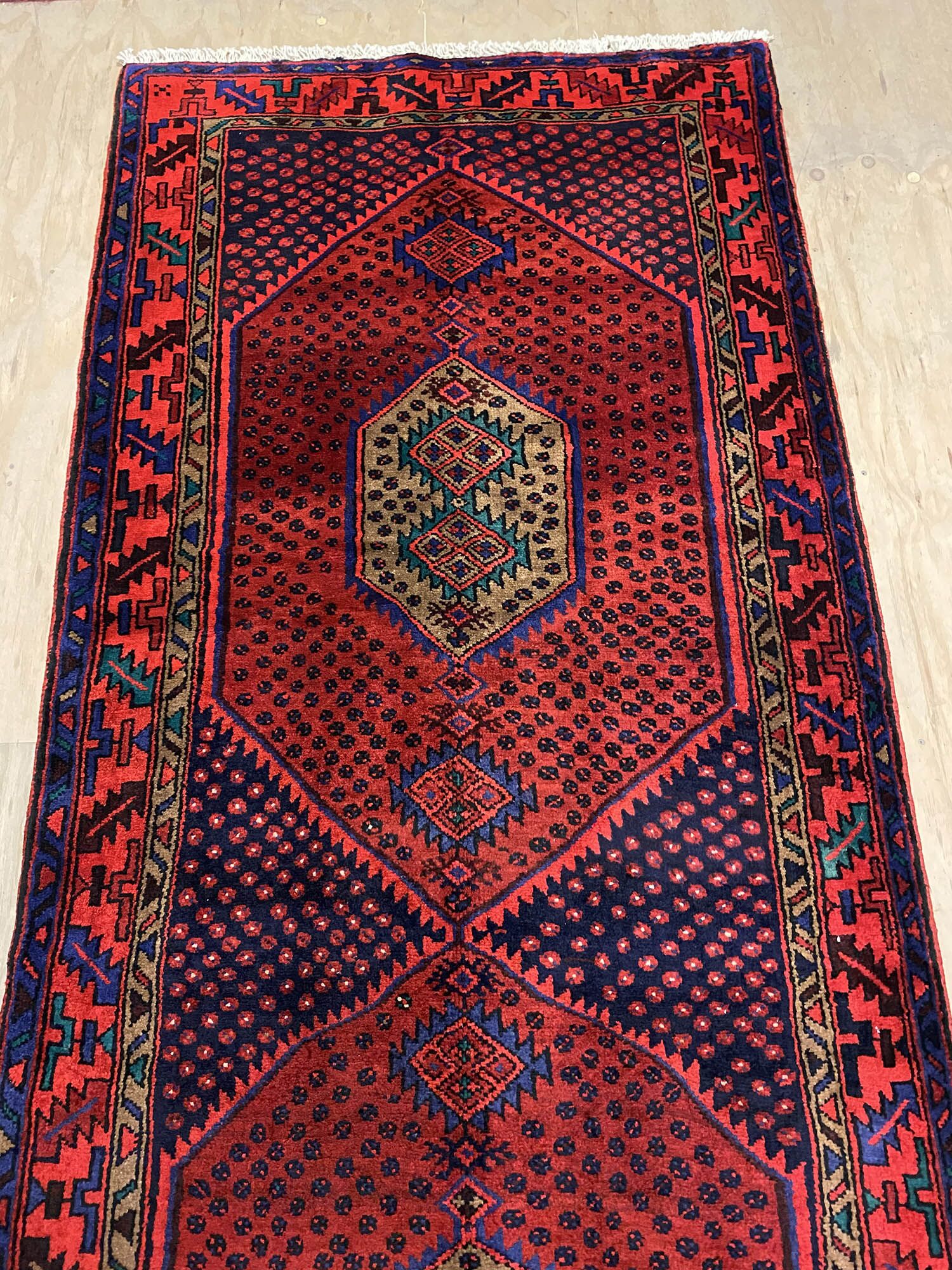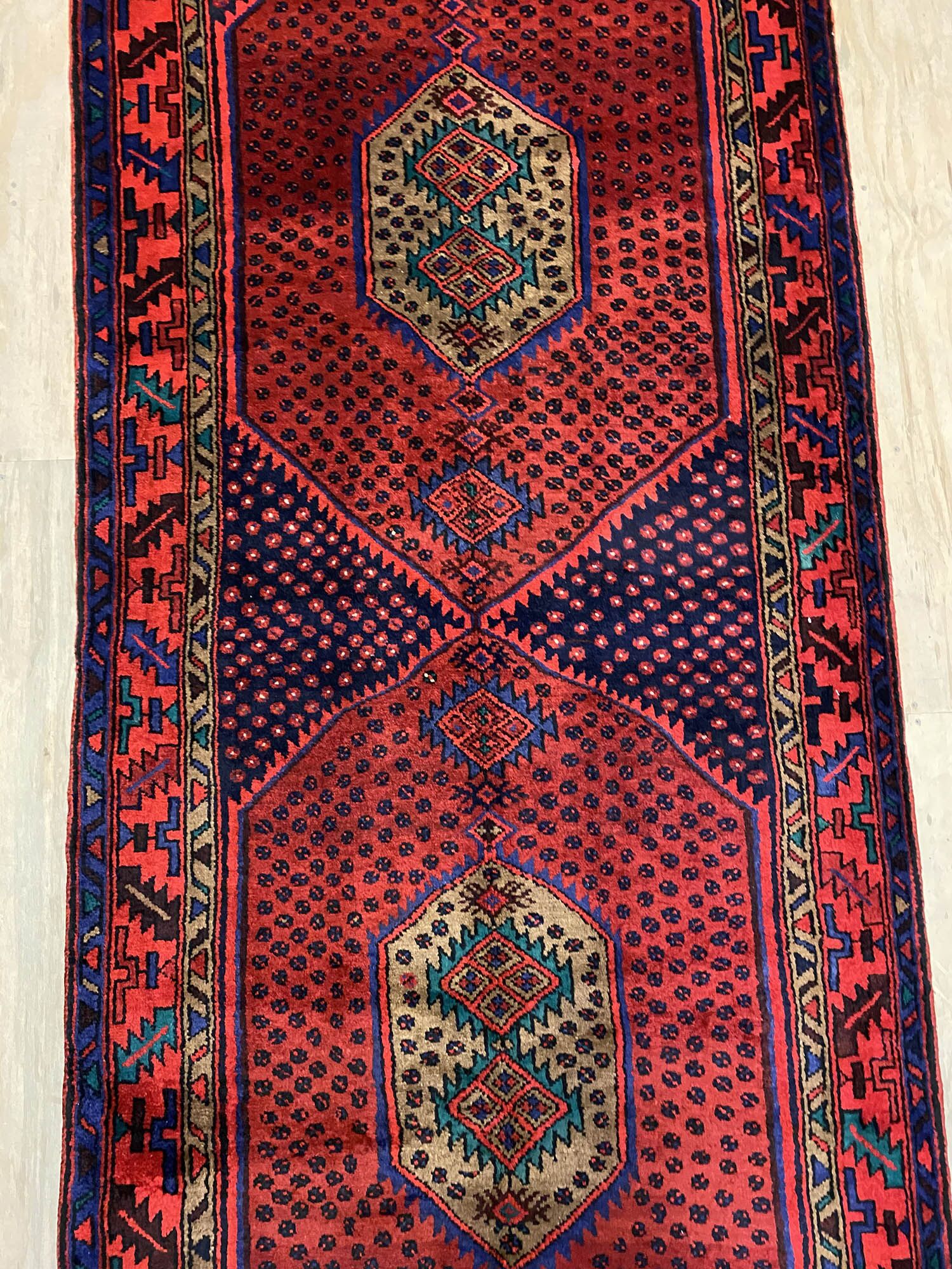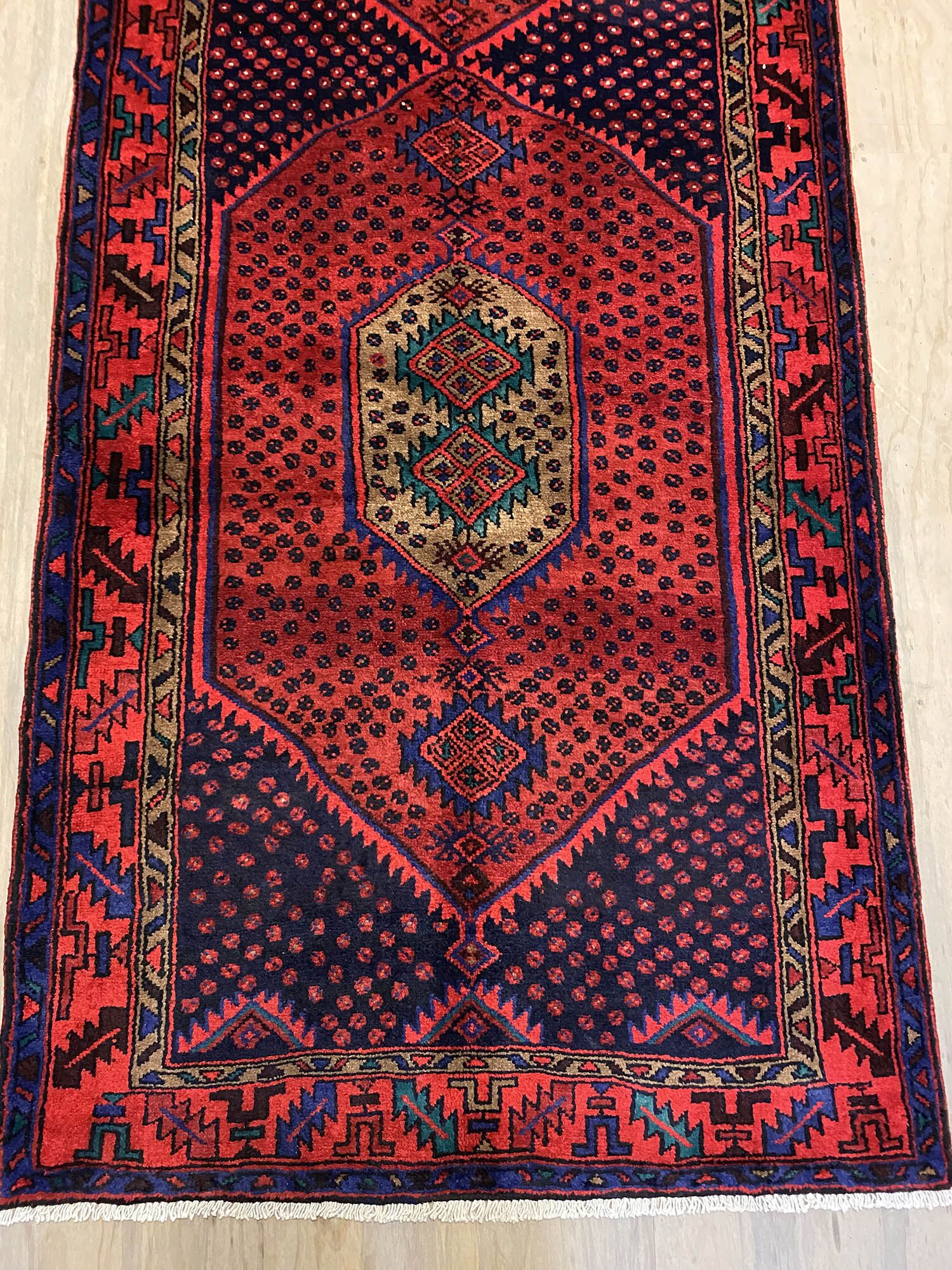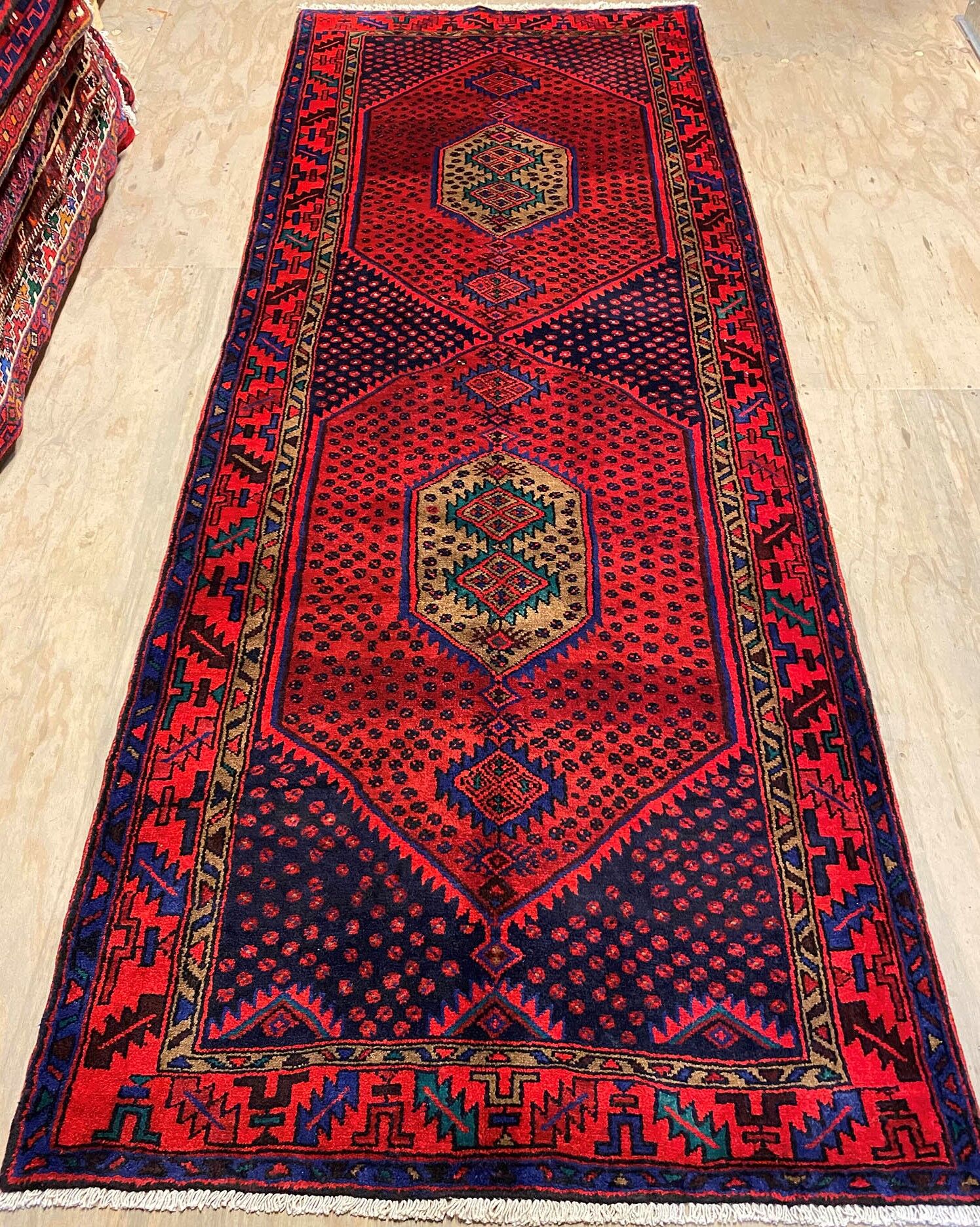 – Origin: Discover the allure of this rare 4m long Herati design handmade Persian Hamedan runner, known for its durability and unique tribal art work.