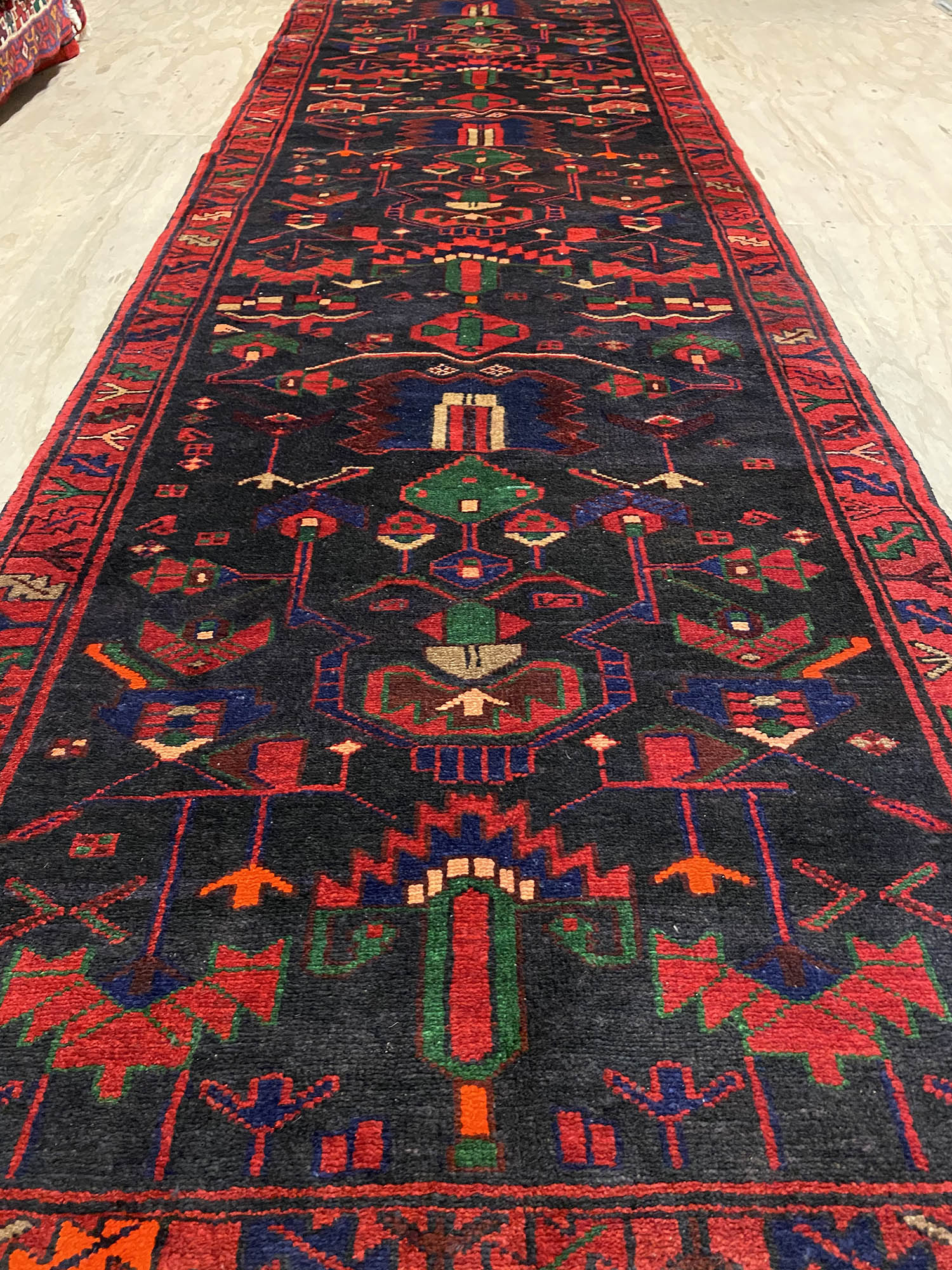 – Origin: Discover the allure of this rare 4m long Herati design handmade Persian Hamedan runner, known for its durability and unique tribal art work.