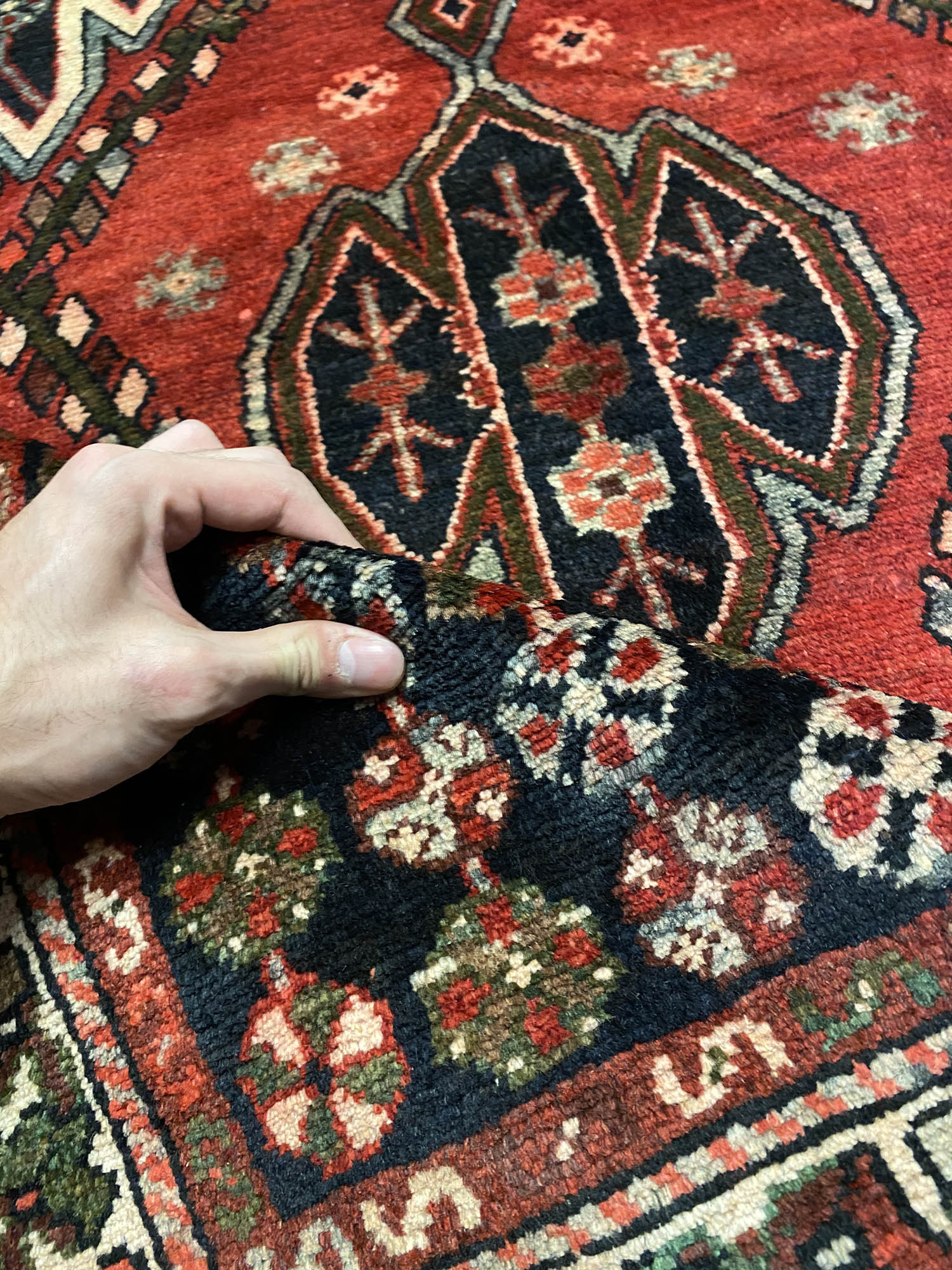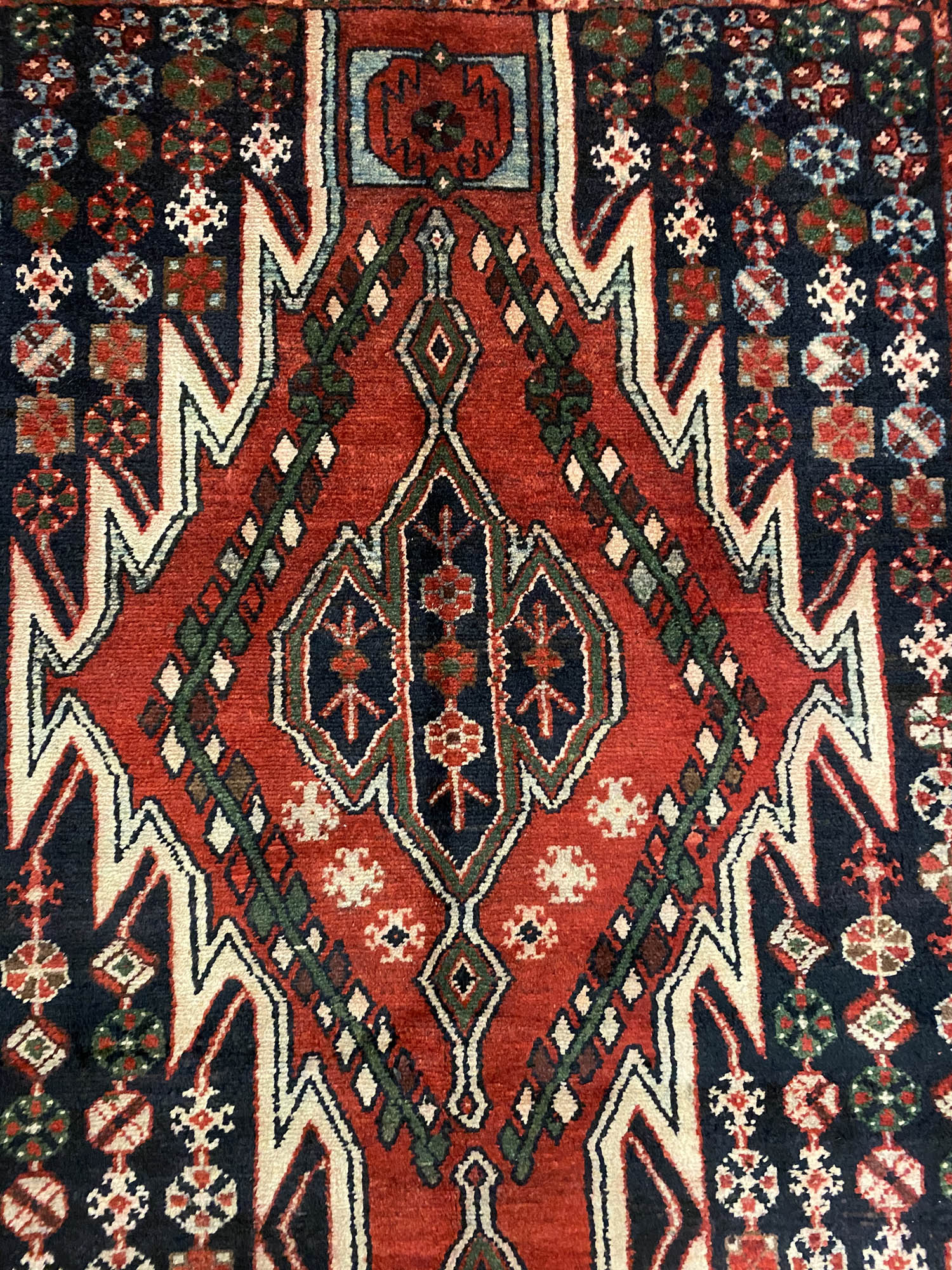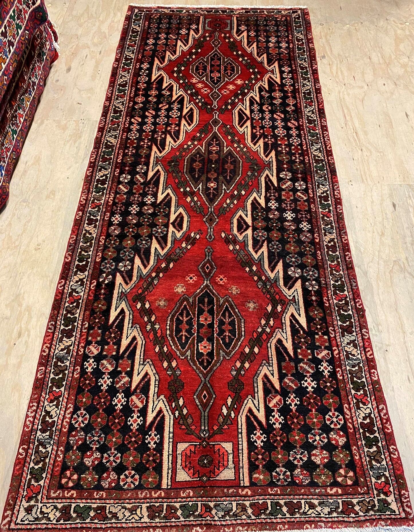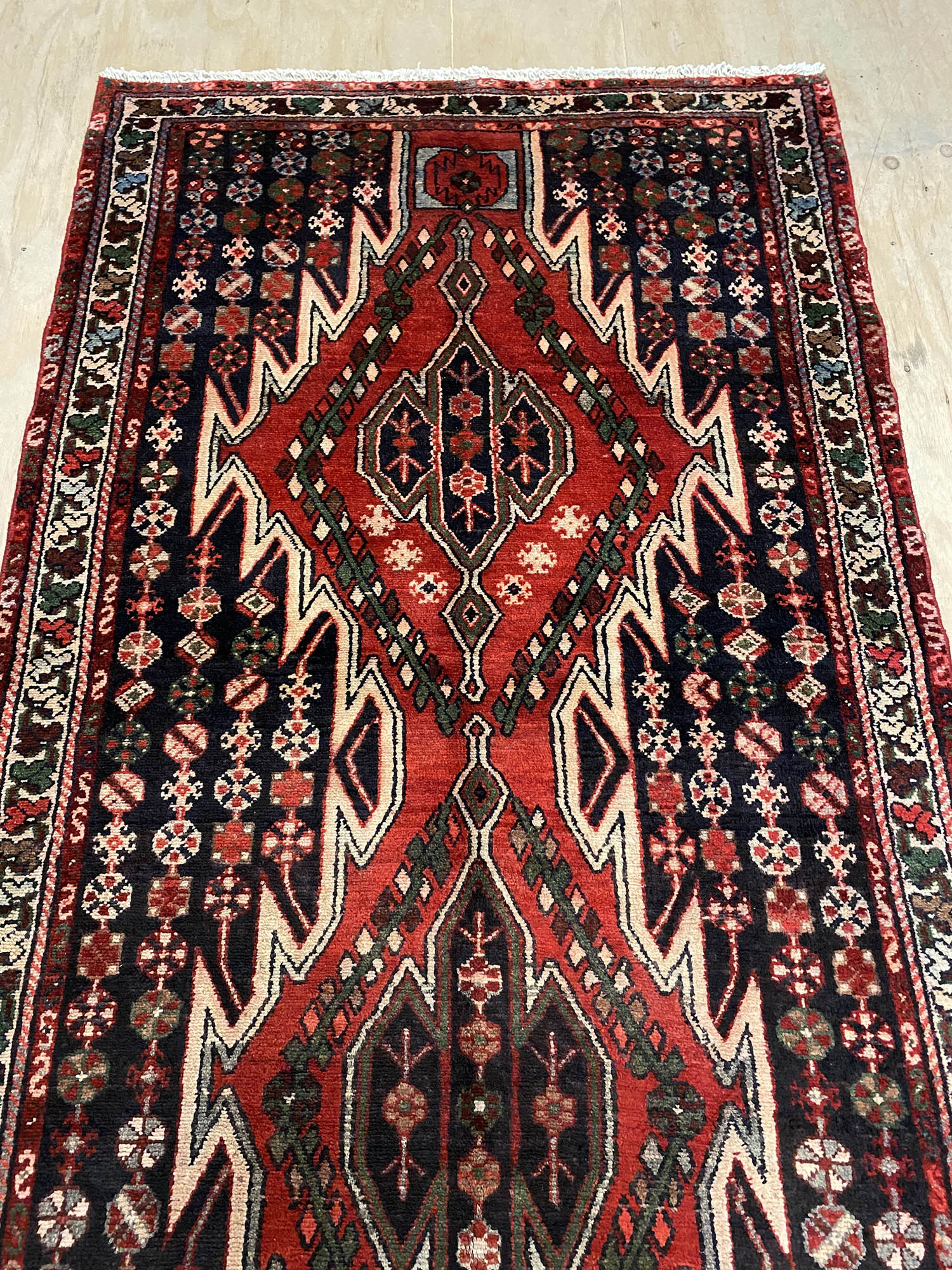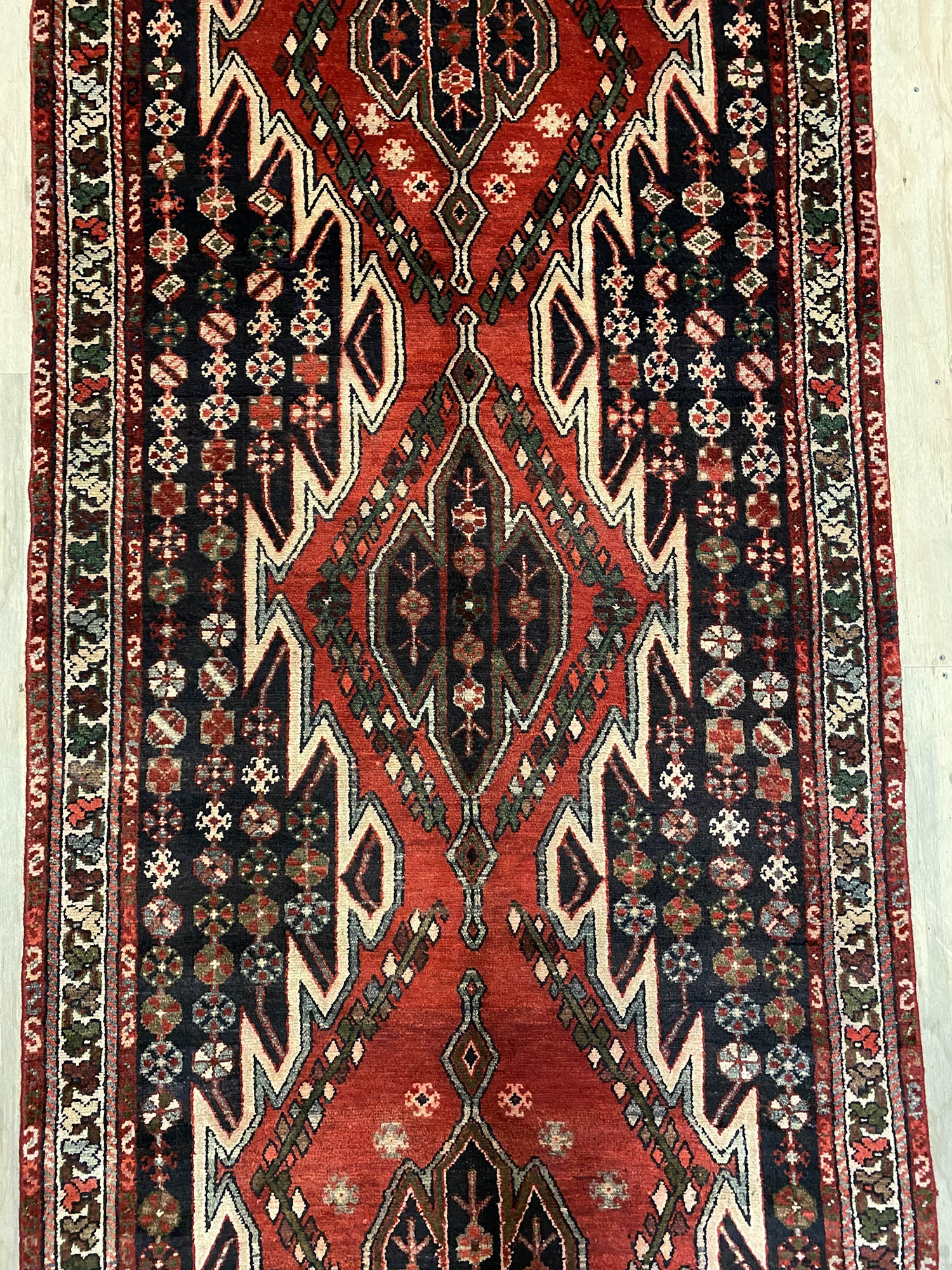 Rare 3m Handmade Village Persian Hamedan Runner. Above All It Is A Very Hard Wearing Runner. Pure Hand Spun Wool Pile On Cotton Base. It Also Has A Deep Indigo Blue Background Dyed Using Traditional Methods.