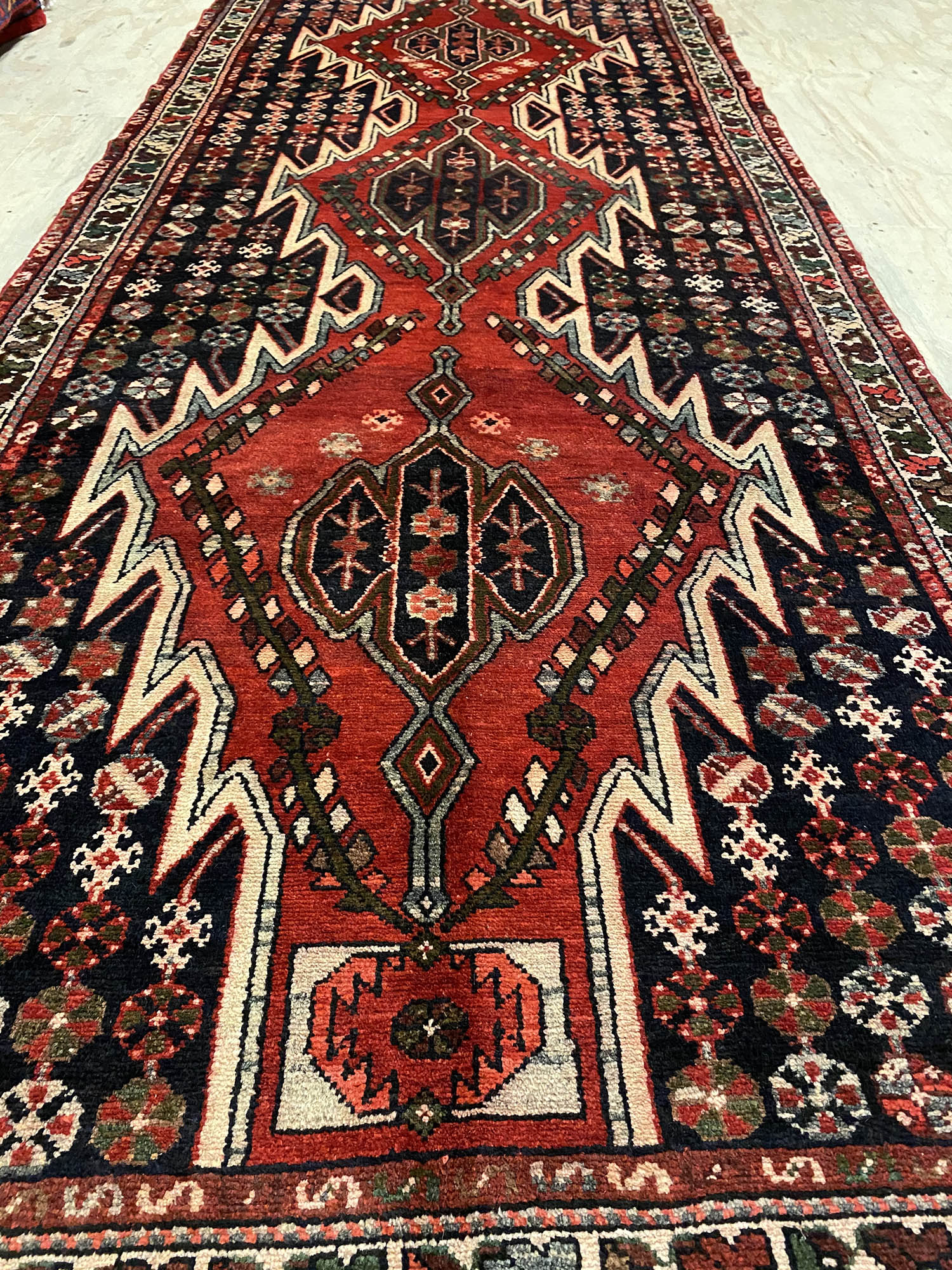 Rare 3m Handmade Village Persian Hamedan Runner. Above All It Is A Very Hard Wearing Runner. Pure Hand Spun Wool Pile On Cotton Base. It Also Has A Deep Indigo Blue Background Dyed Using Traditional Methods