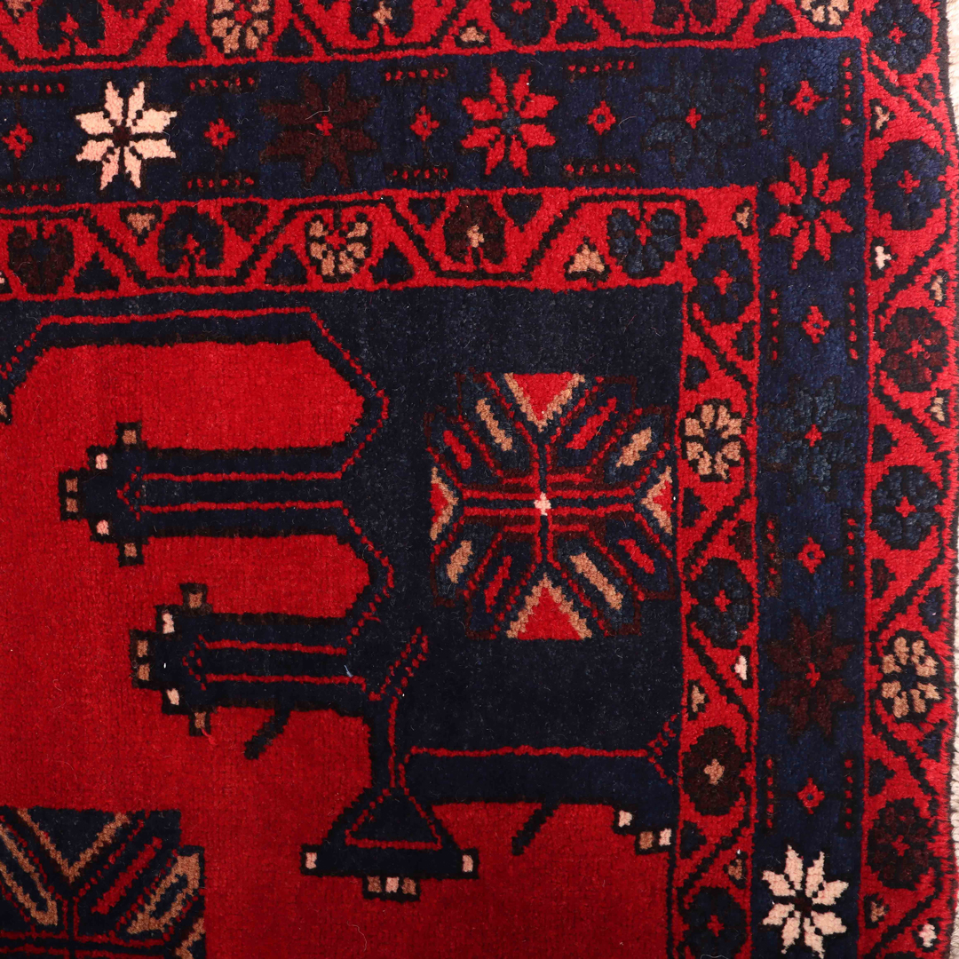 – Gorgeous Red Background: Dyed using traditional methods, the rug features a vibrant red background, adding warmth to your space.
