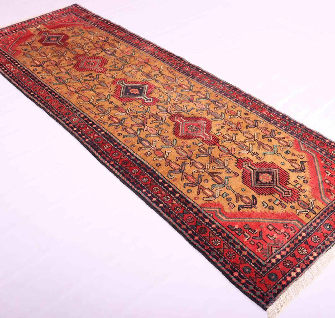 – Rare Old Design: A rare 2.9m long old design handmade Persian Hamadan Runner, showcasing enduring beauty and exceptional condition.