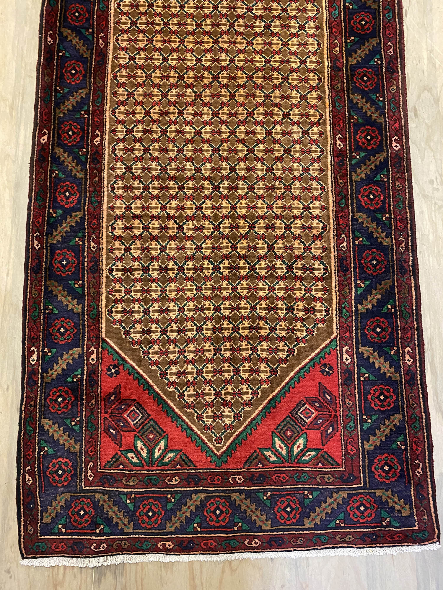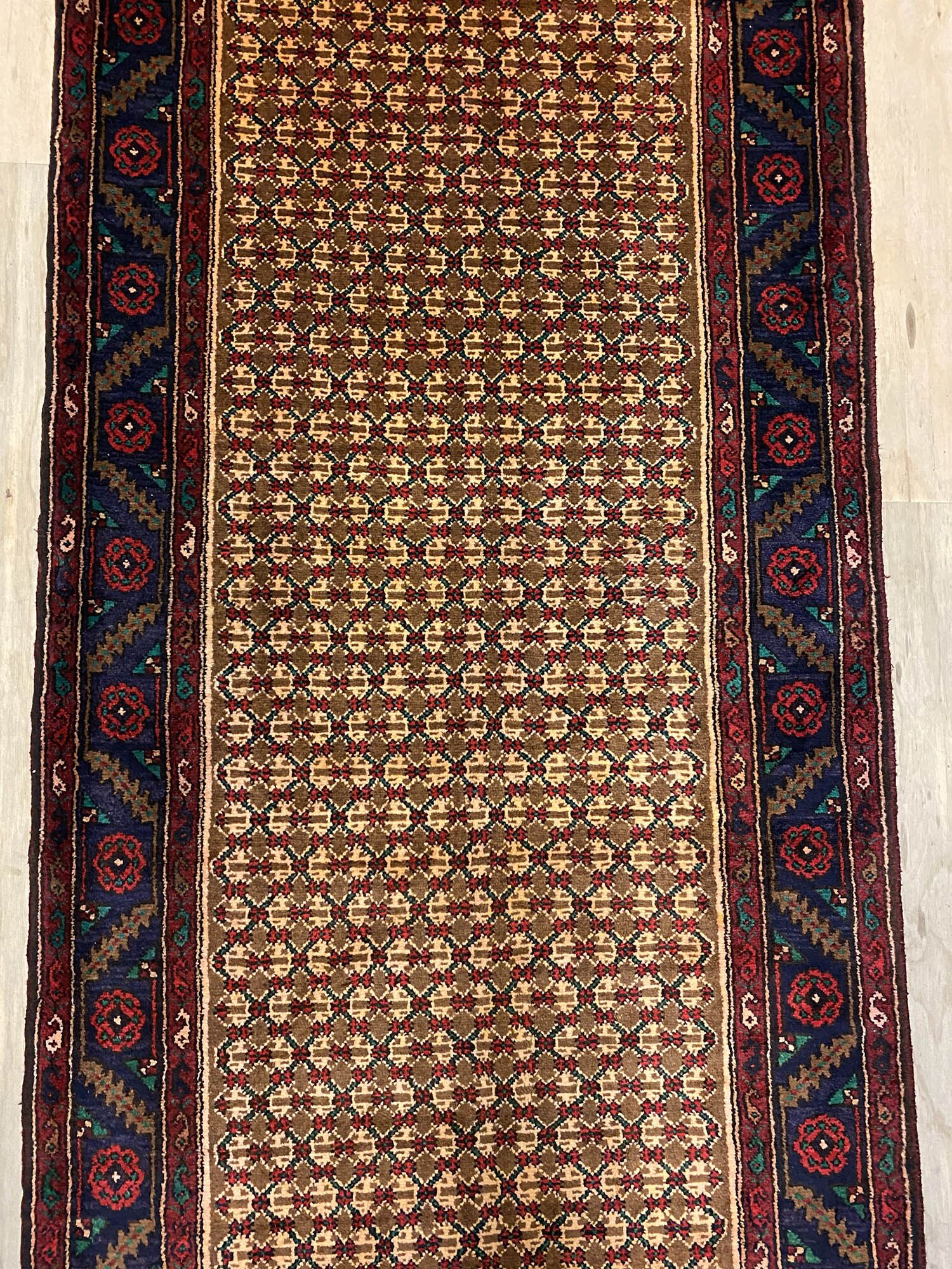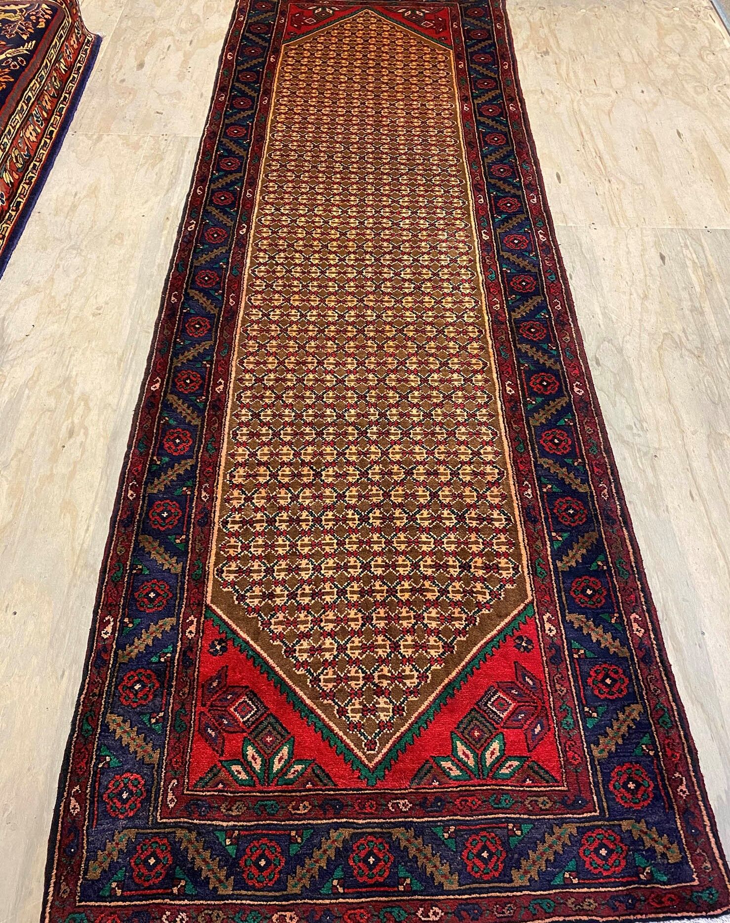 – Origin: This rare hand-knotted Kurdish Songhor Koliai runner is a unique piece that reflects the rich tradition of Kurdish craftsmanship. Crafted with pure hand-spun wool pile on a cotton base, it is a testament to the artistry from the Kurdish region.