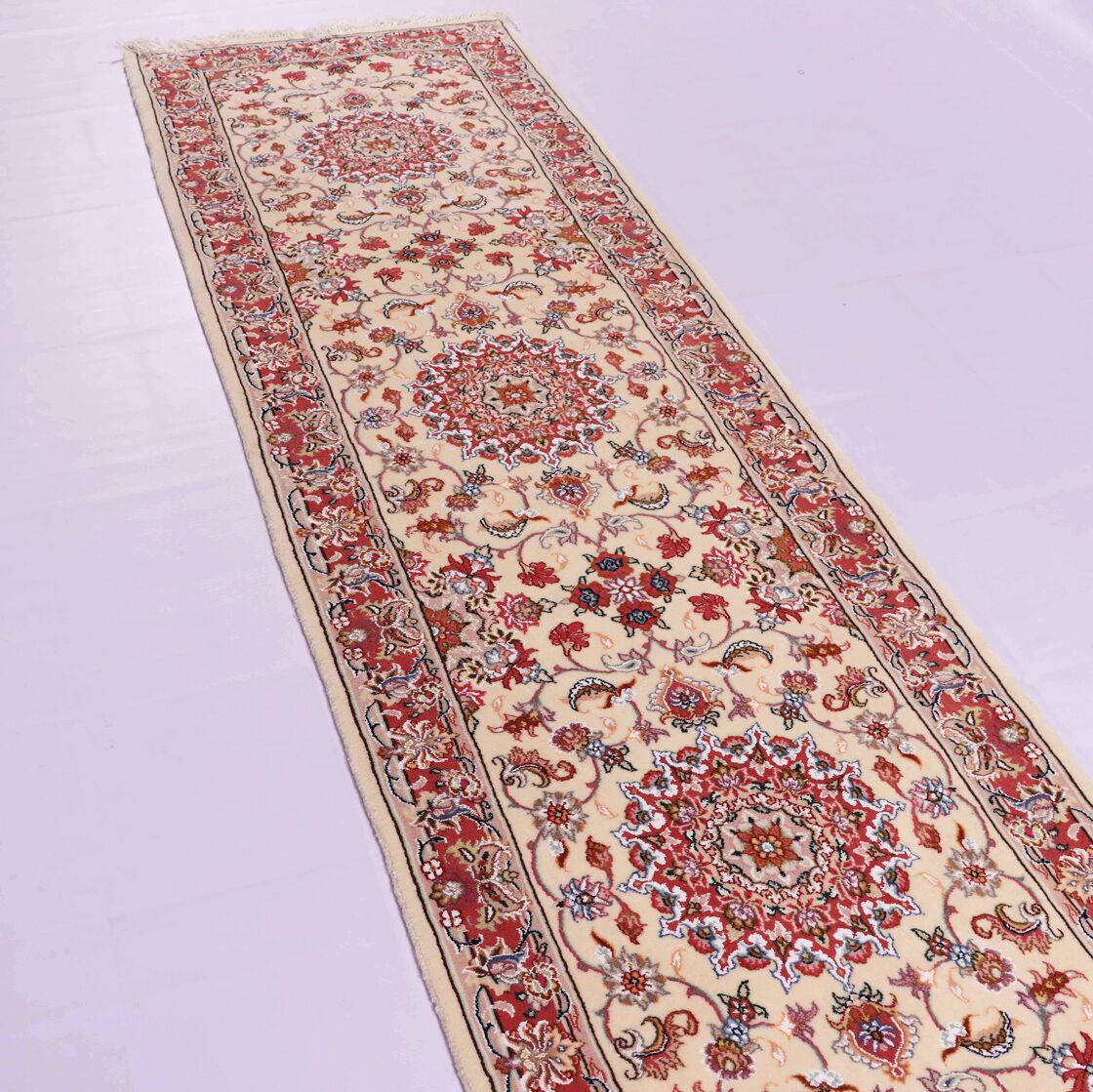 Elevate your space with the allure of this Certified Silkinlaid Hand-Knotted Persian Nain Runner, exclusively from RugMaster, your trusted handmade Persian Rugs and Runners specialist in Australia!
