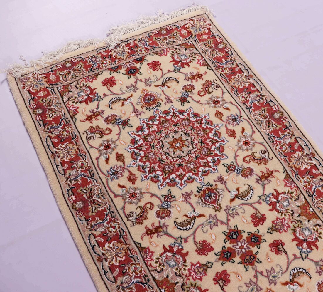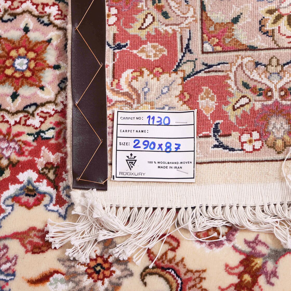 – Fine Elegance: Experience the allure of a fine authentic handmade Persian Nain Hall runner, a rarity over 2.5 meters in length, with pure lamb’s wool pile on a cotton base, featuring beige and pink tones dyed using traditional methods.