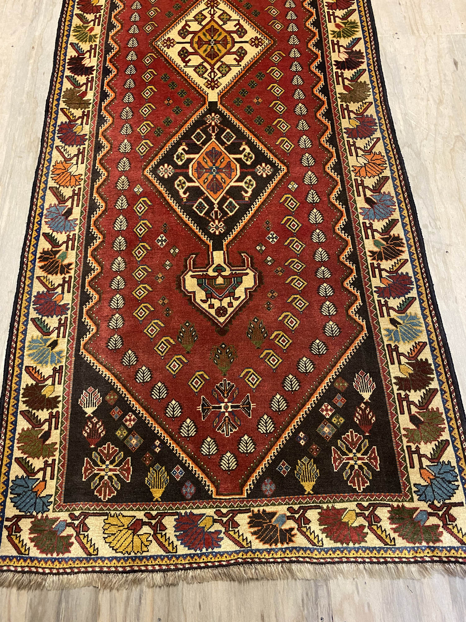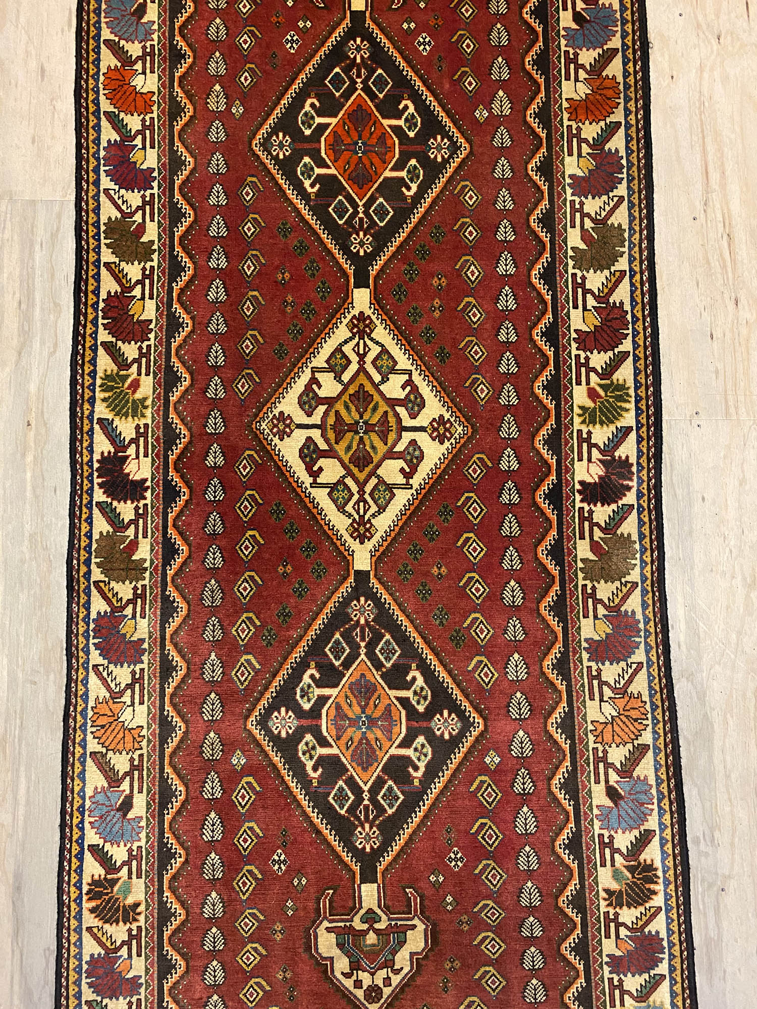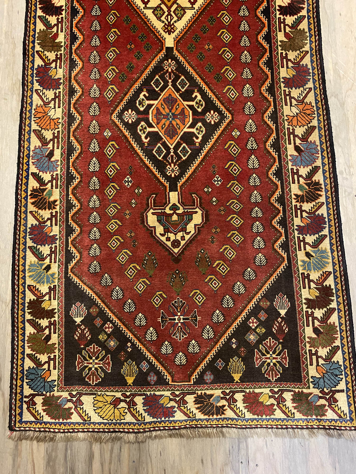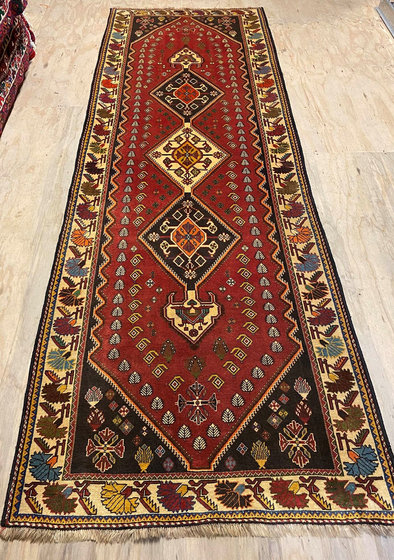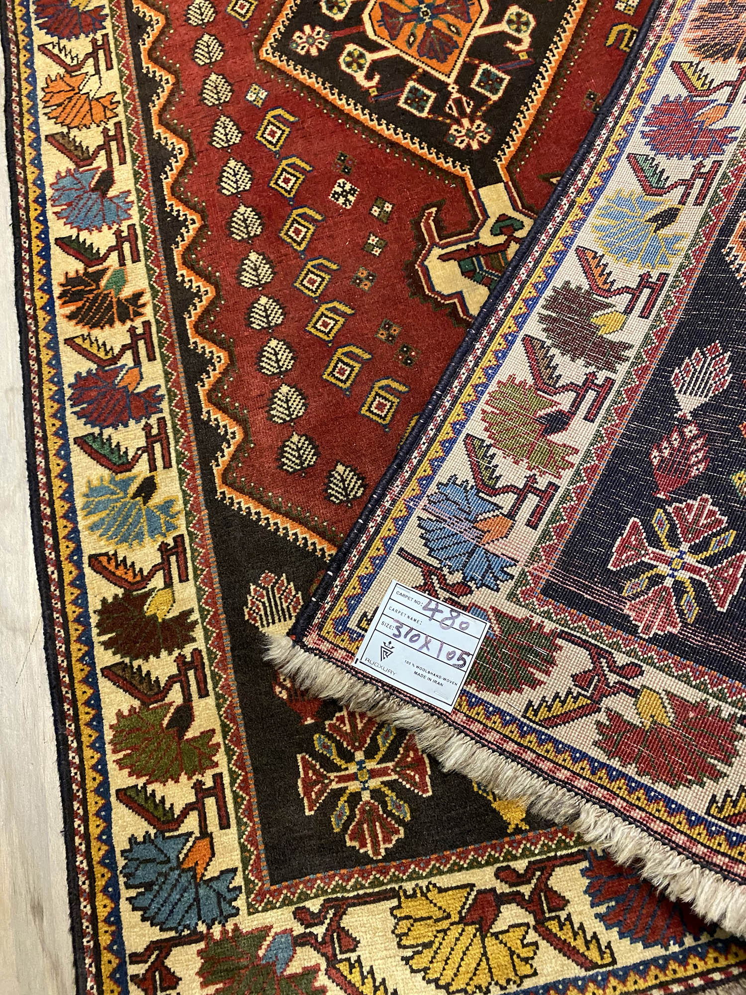 Certified Hand Knotted Persian Qashghai Shiraz Runner 310x105cm