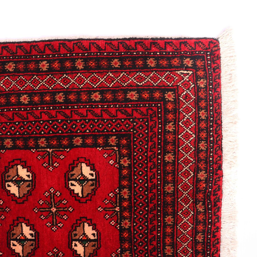 – Craftsmanship: Superb allover tribal pattern renowned as Bokhara design, reflecting the artisanal skills of the weaver.
