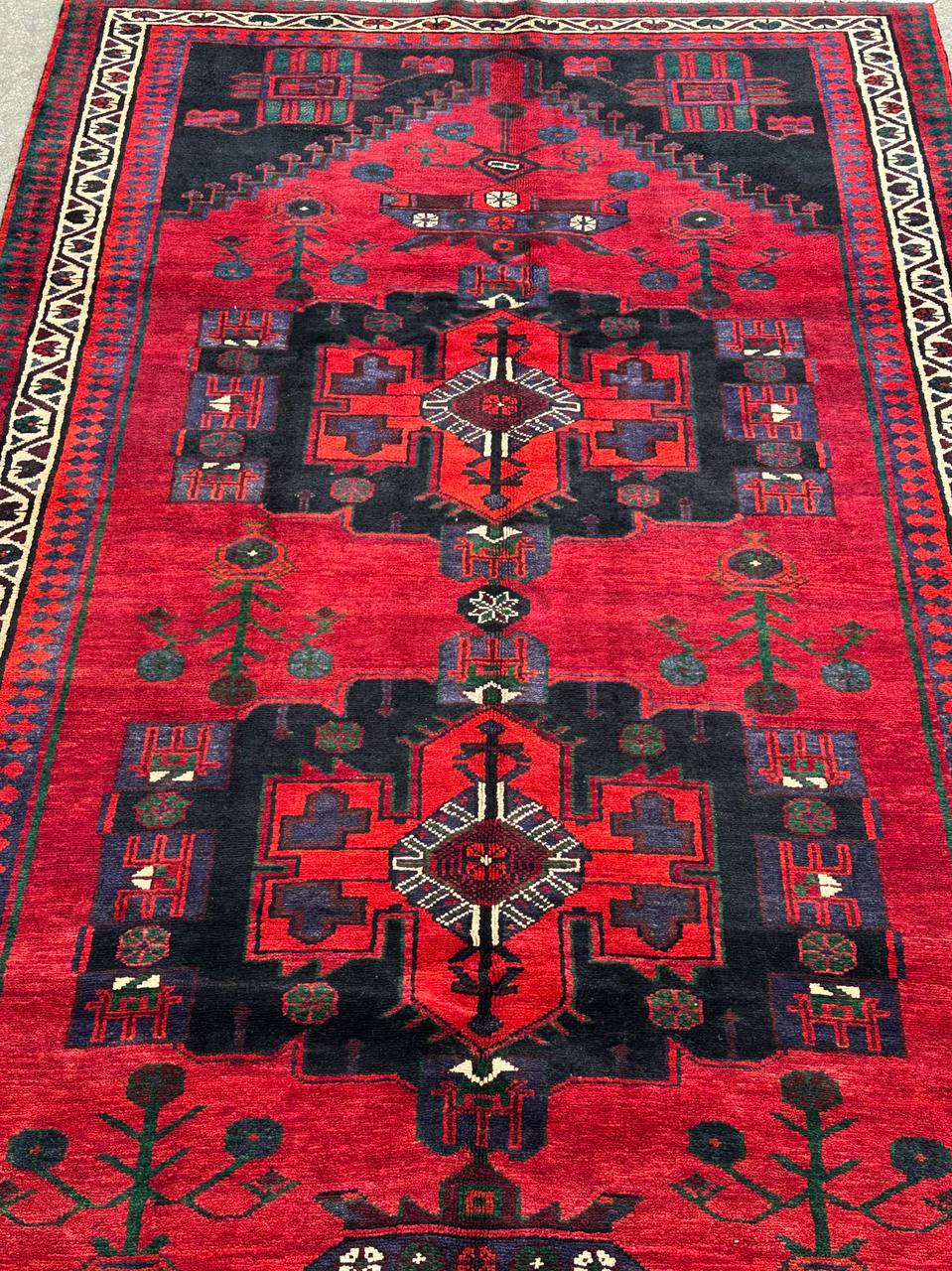 – Tribal Design: Central Medalion and floral design is a unique creation, with the pattern originating from the weaver’s imagination.