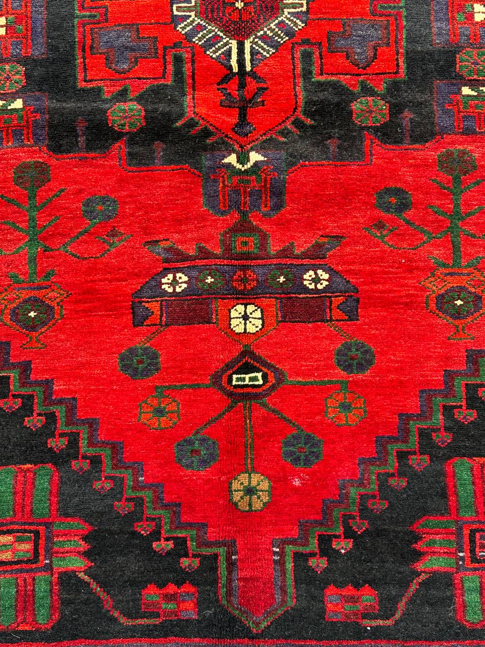 – Durable Elegance: Elevate your hallway with this Tribal Design handmade Persian Hamedan Runner Rug, known for its hard-wearing and durable qualities. Pure hand-spun wool pile on a cotton base provides both comfort and longevity.