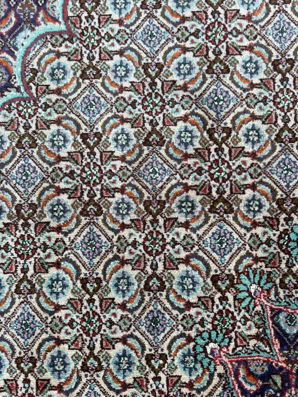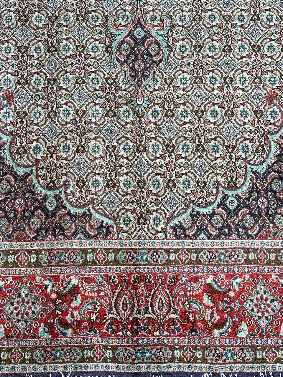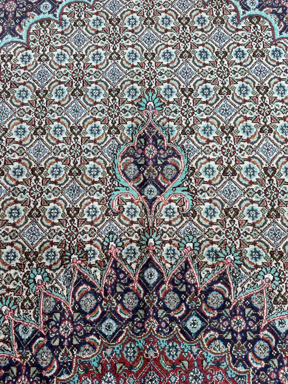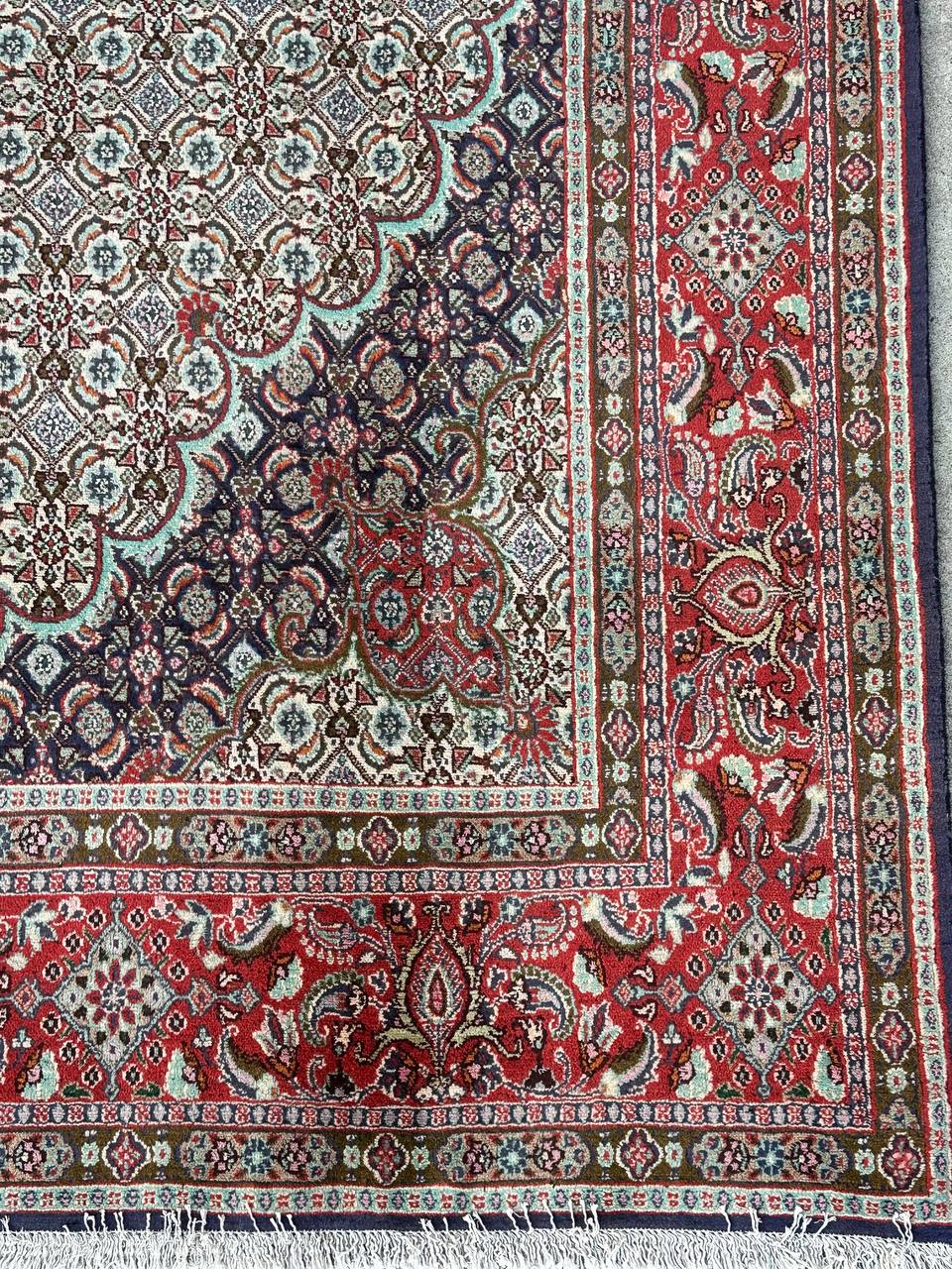 – Timeless Elegance: Immerse your space in the timeless pattern and fine workmanship of this super fine full room size Persian Mood Rug. Pure lamb’s wool pile on a fine cotton base creates a dense quality carpet in beige, blue, and red tones, crafted with traditional methods.