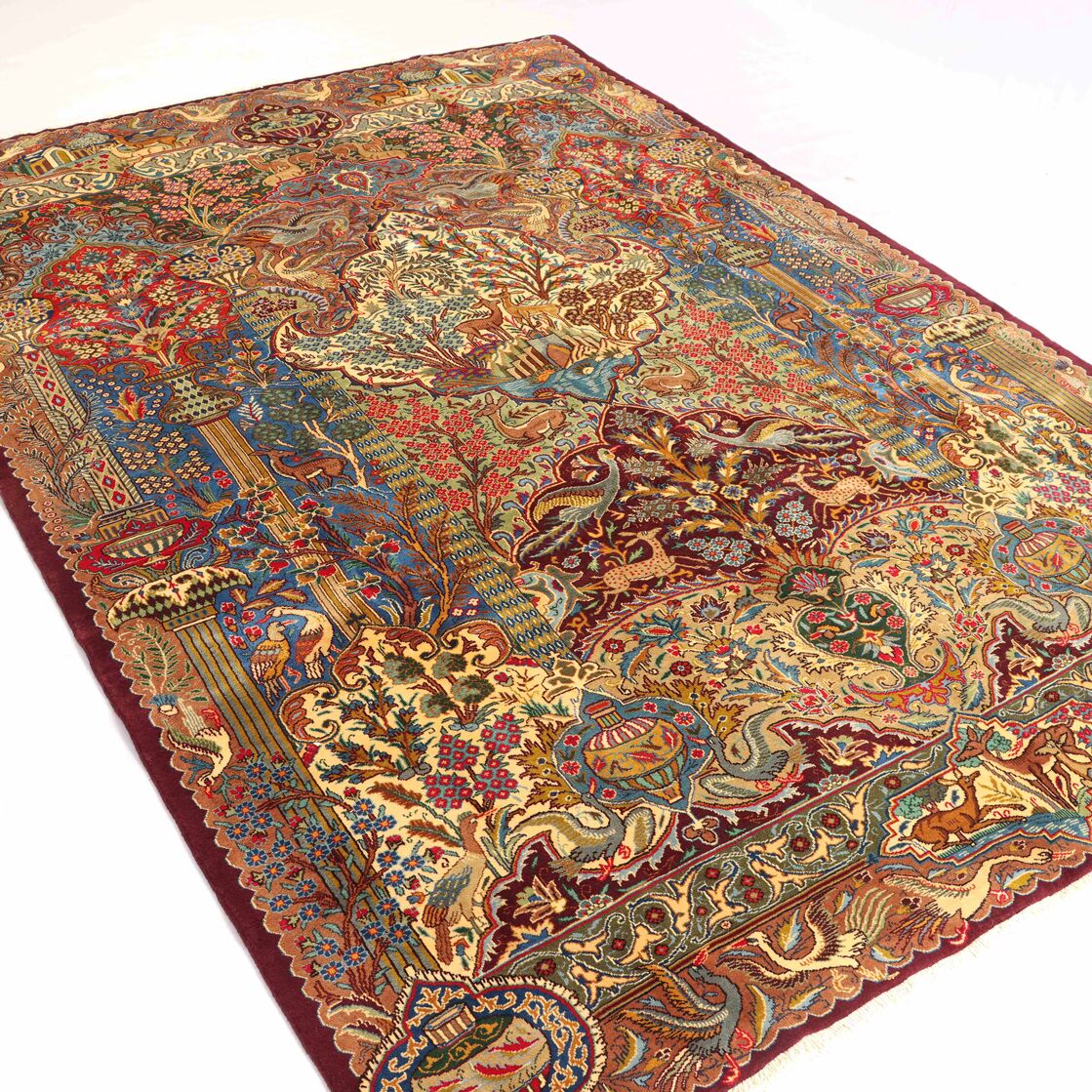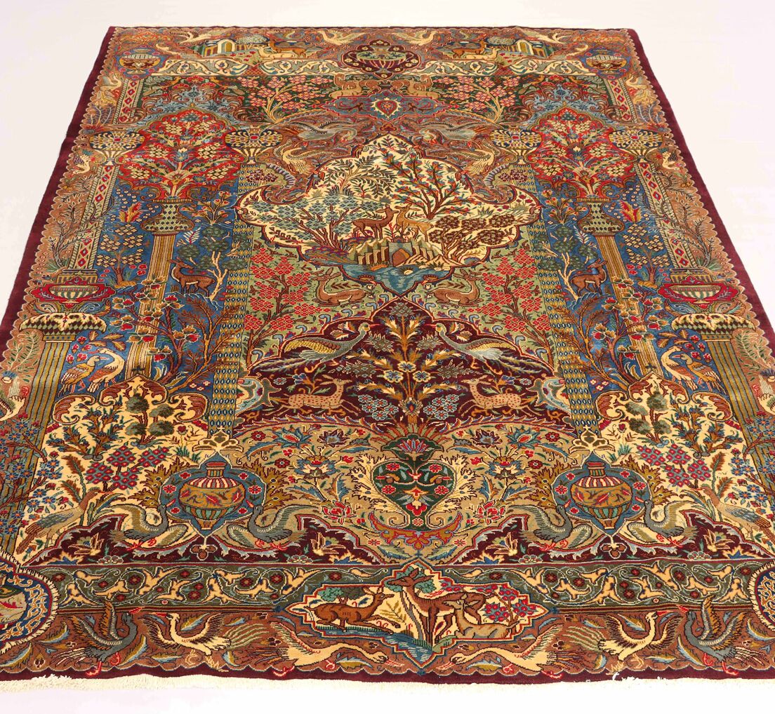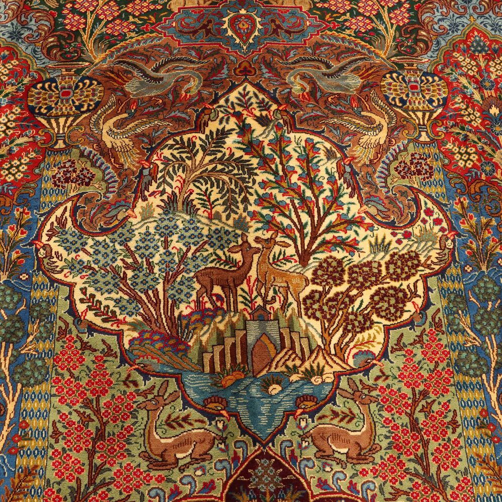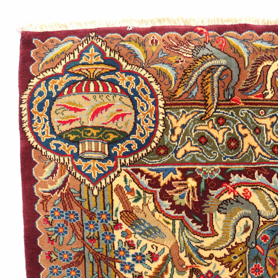 High-Quality Masterpiece Certified Handmade Pictorial Garden of Eden Kashmar Rug