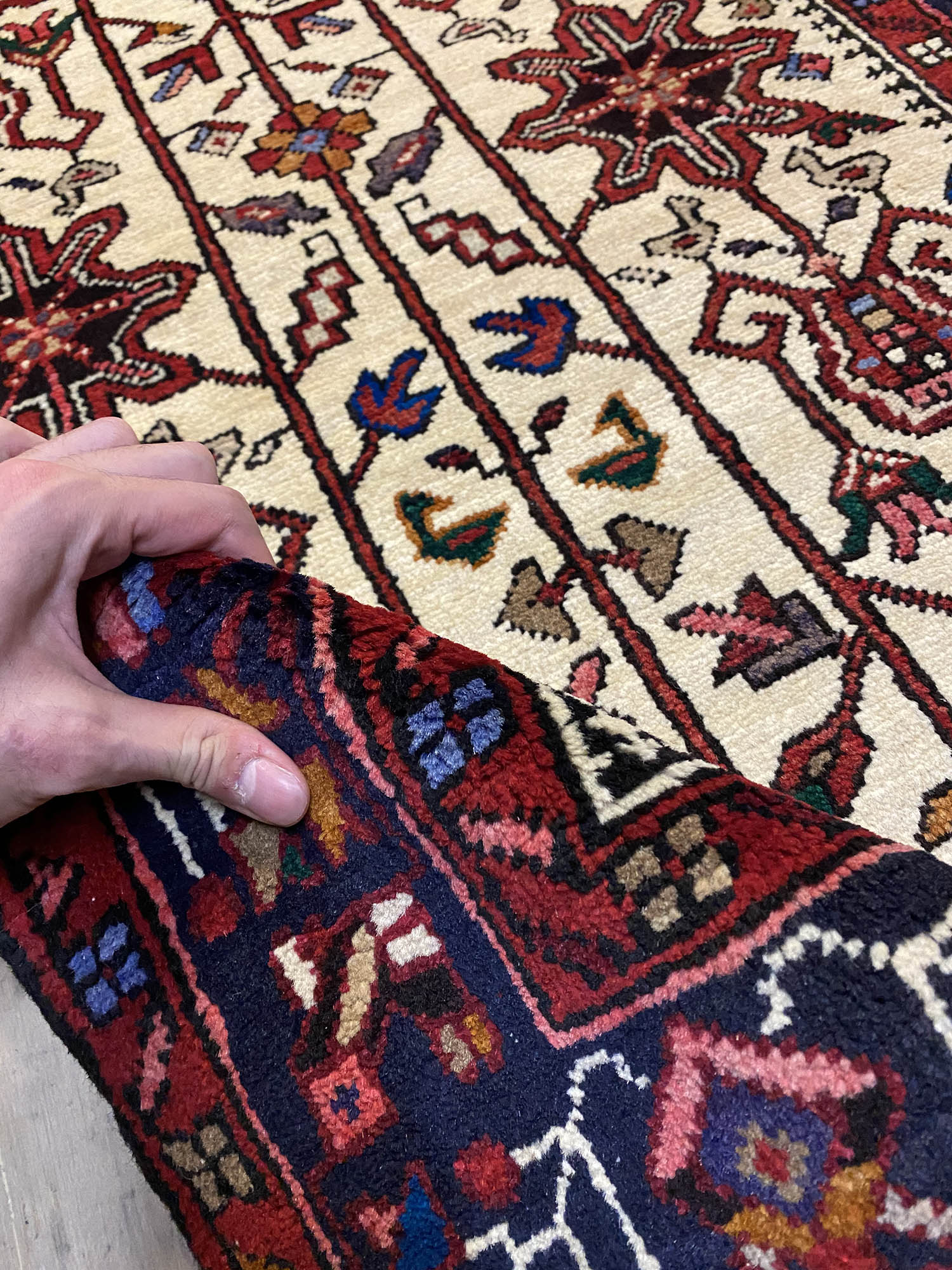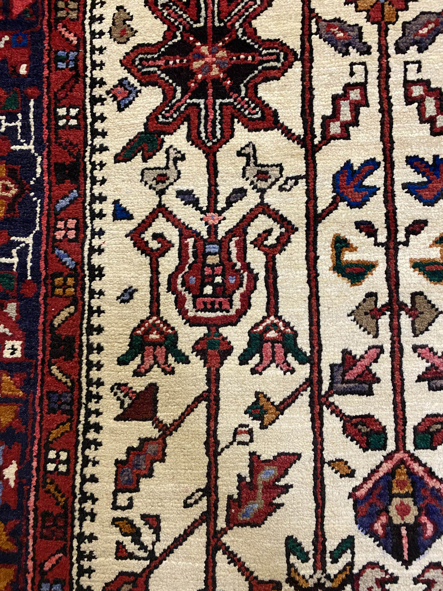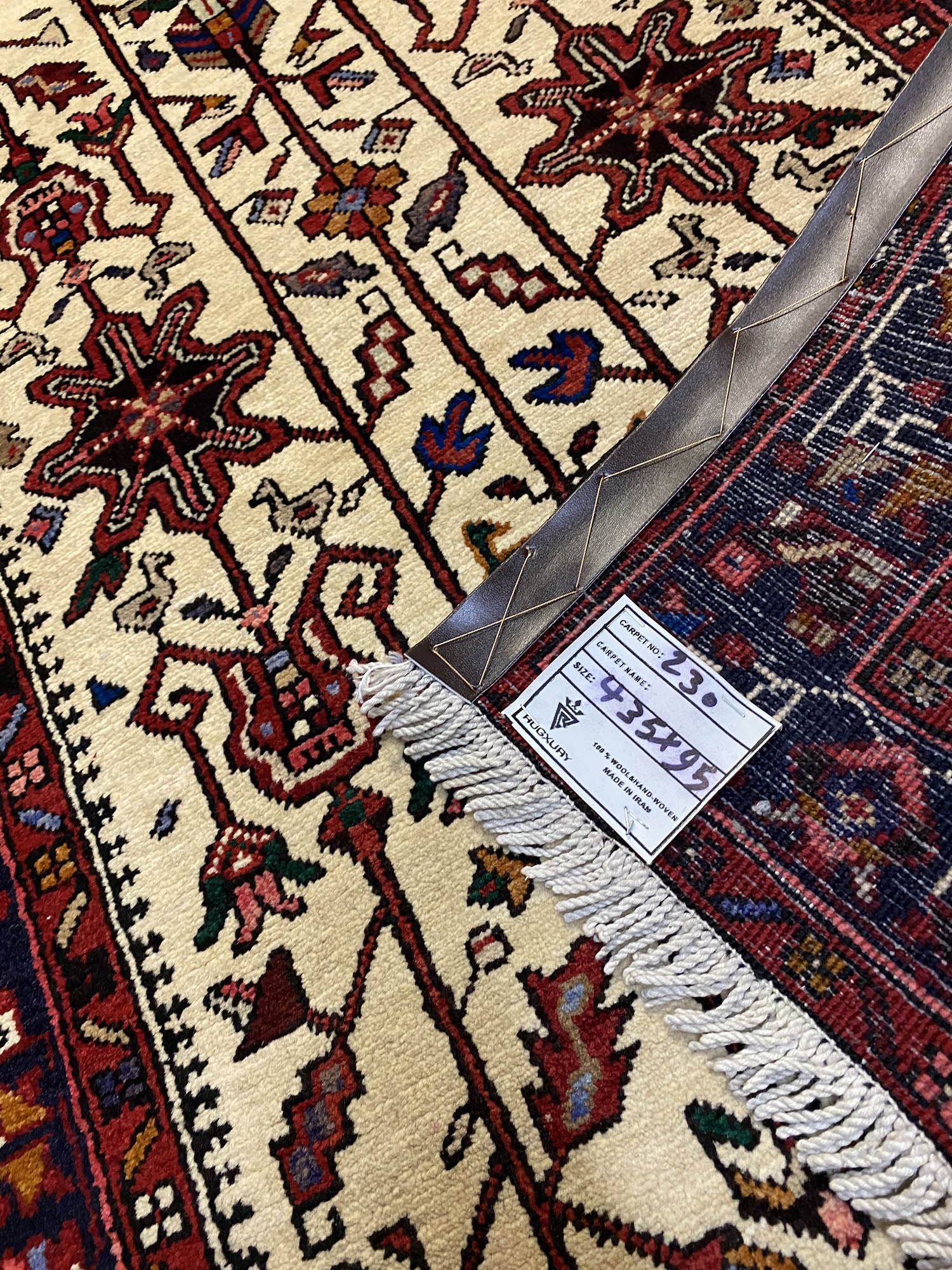 – Geometric Elegance: Admire the multiple medallion geometric design, renowned as the Heriz pattern, showcasing the intricate craftsmanship of the weaver who dedicated around 9 months to complete this piece.