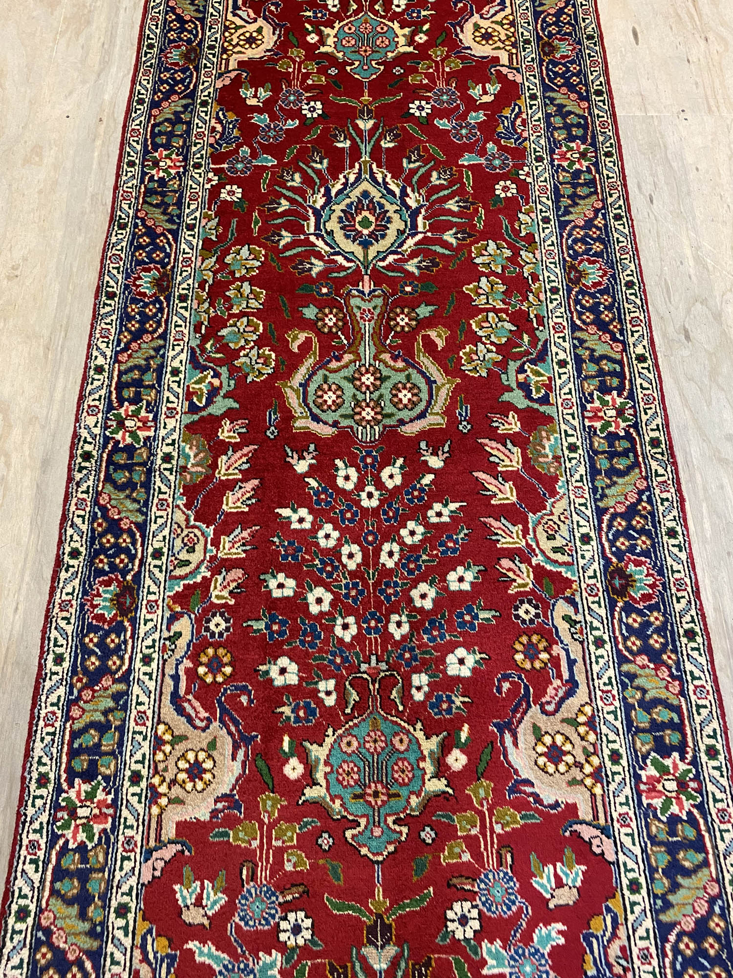 – Rare Elegance: Elevate your space with this rare oversize vase design authentic Persian Tabriz Hall runner, a unique piece that’s hard to find in lengths over 4m.