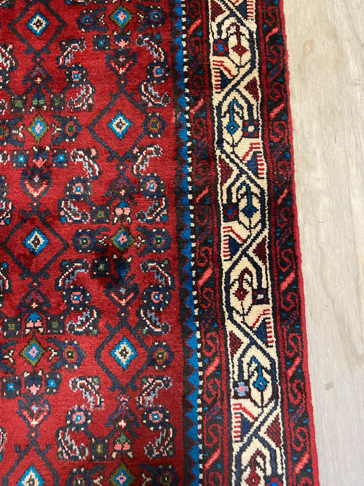– Herati Design Handmade Persian Hamedan Runner: A hard-wearing and durable runner, crafted with pure hand-spun wool pile on a cotton base. The gorgeous red background is dyed using traditional methods.