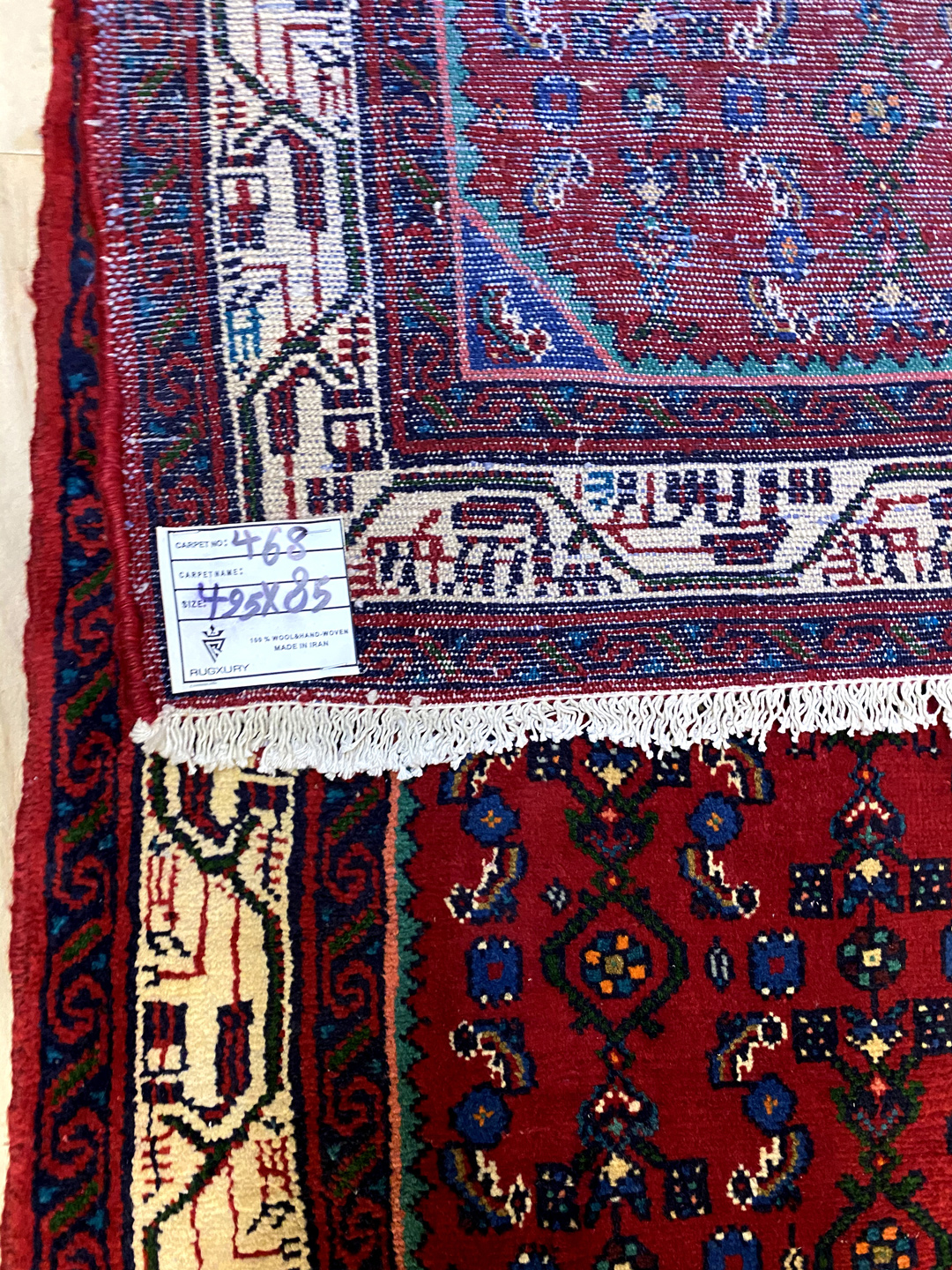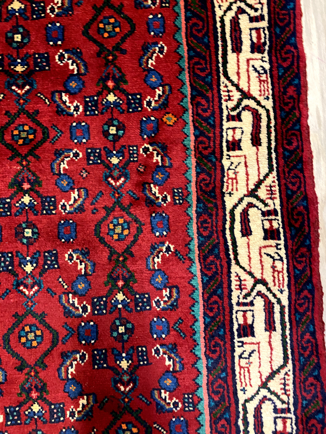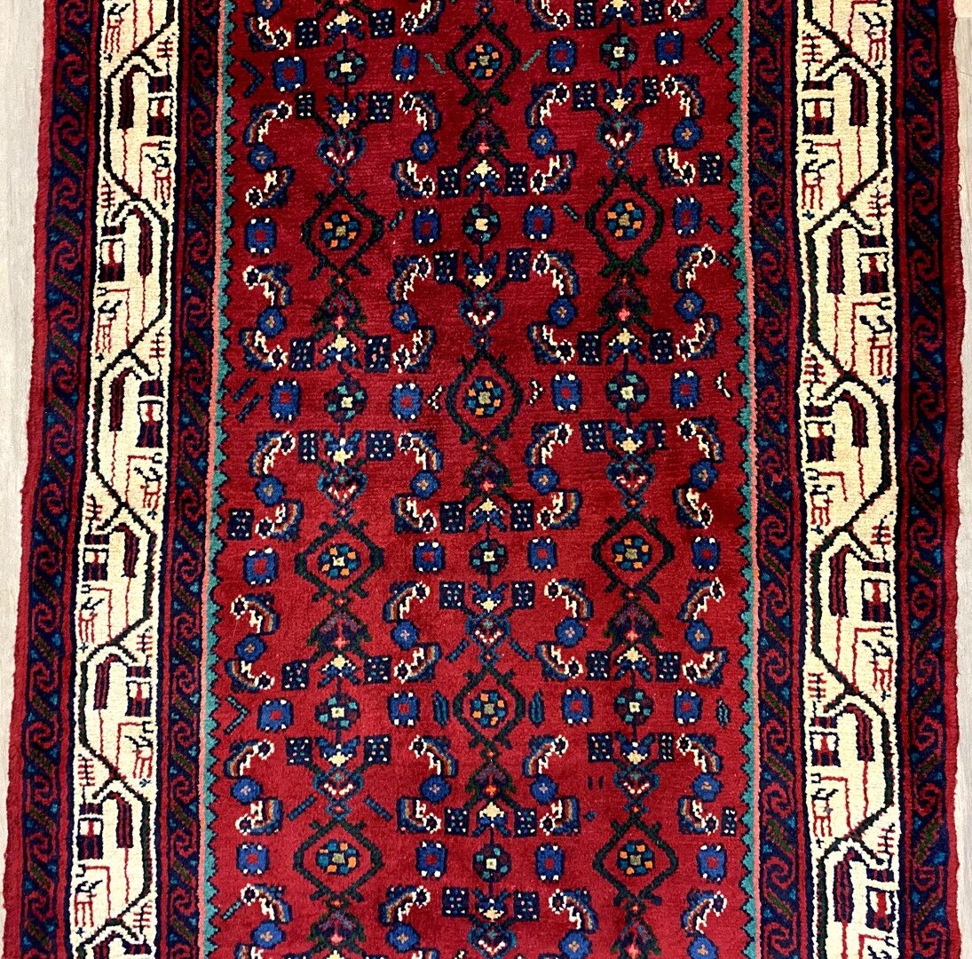 Rare Oversize Hand Knotted Persian Enjelas Runner. Above All It Is a Hard Wearing & Durable Piece. It Also Has Pure Hand Spun Wool Pile On Cotton Base. Deep Red Background Dyed Using Traditional Methods.
