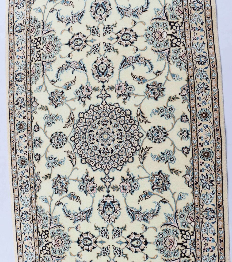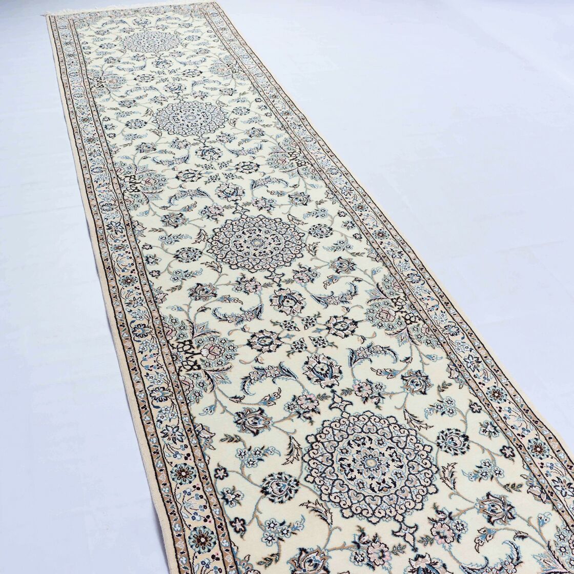 Elevate your space with the allure of this Certified Silkinlaid Hand-Knotted Persian Nain Runner, exclusively from RugMaster, your trusted handmade Persian Rugs and Runners specialist in Australia!