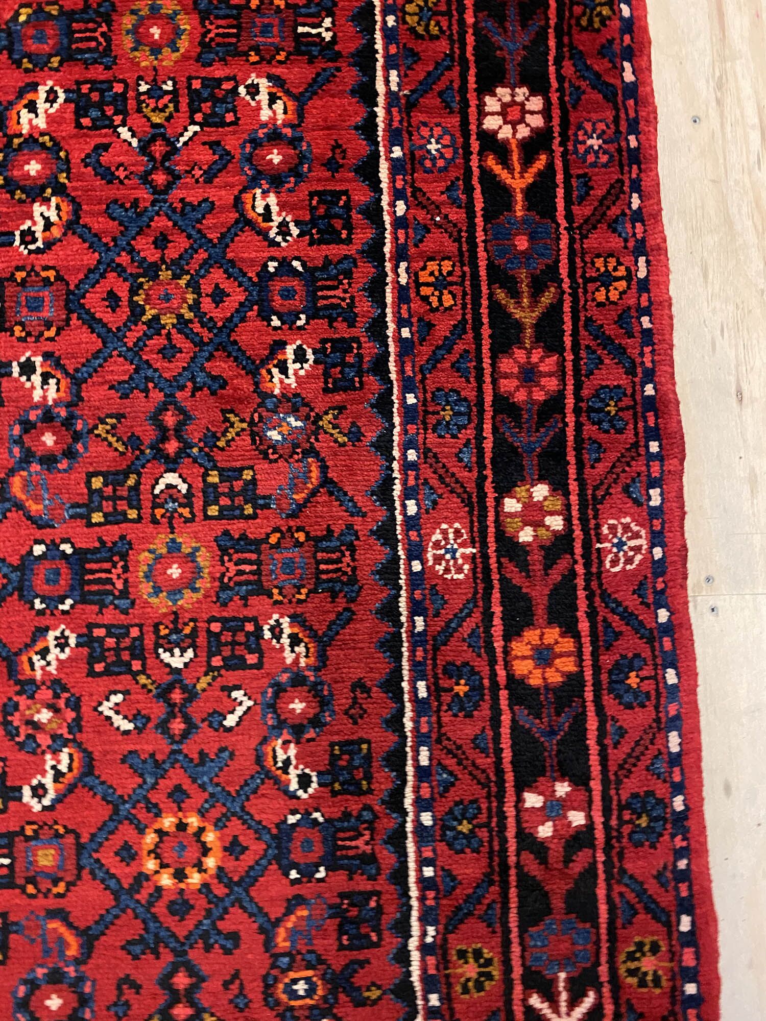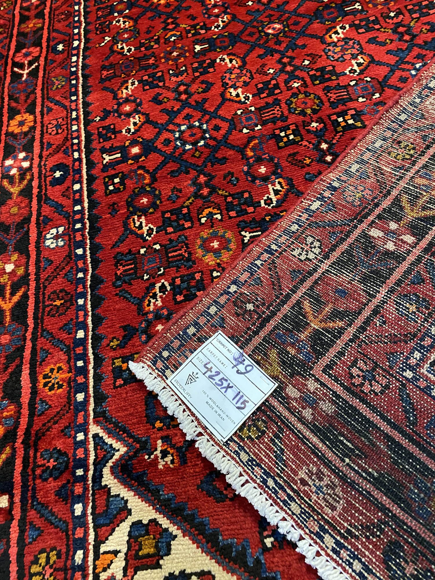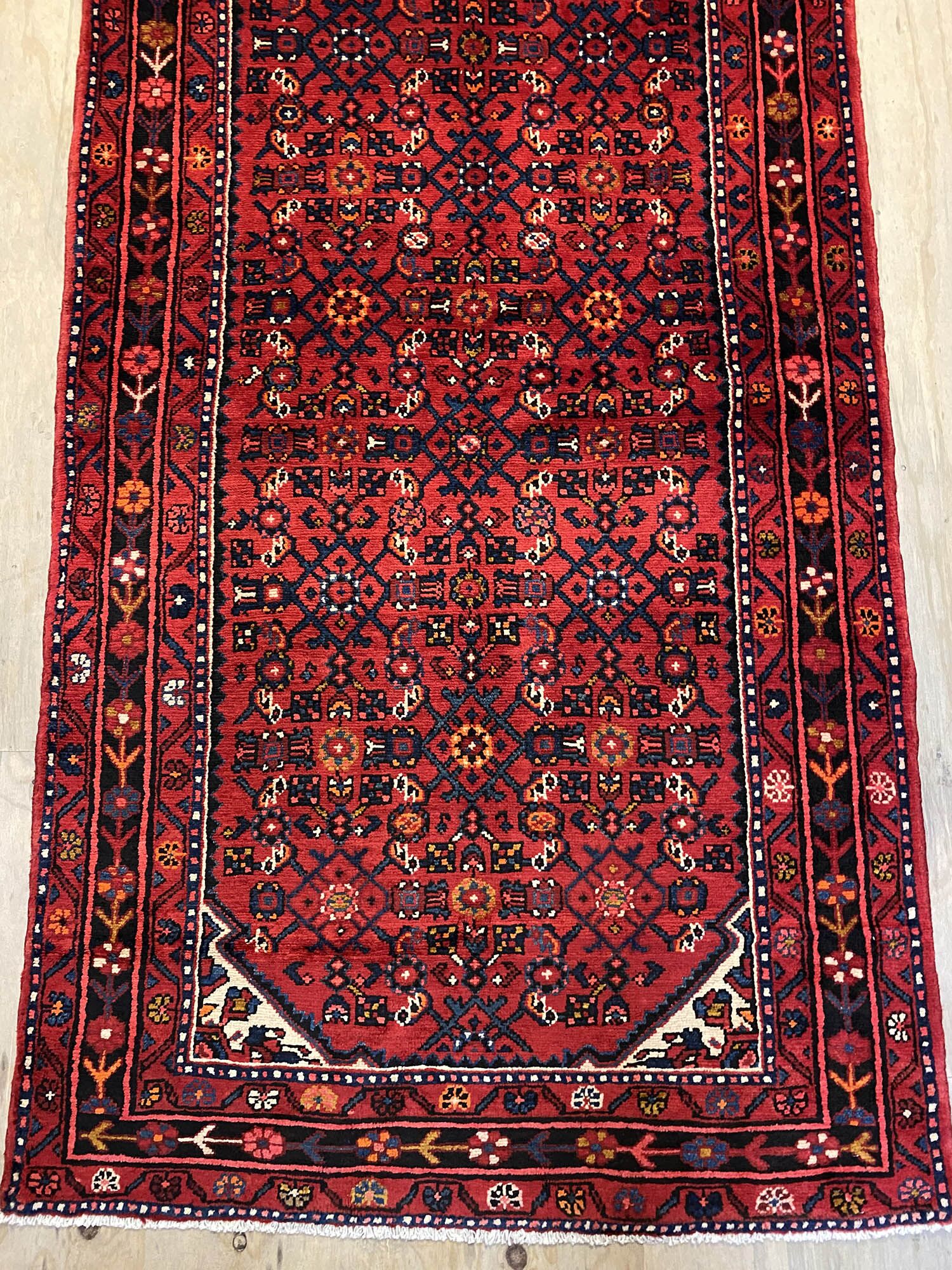 – Durable Elegance: Elevate your hallway with this Hosseinabad design handmade Persian Hamedan Runner, known for its hard-wearing and durable qualities. Pure hand-spun wool pile on a cotton base provides both comfort and longevity.