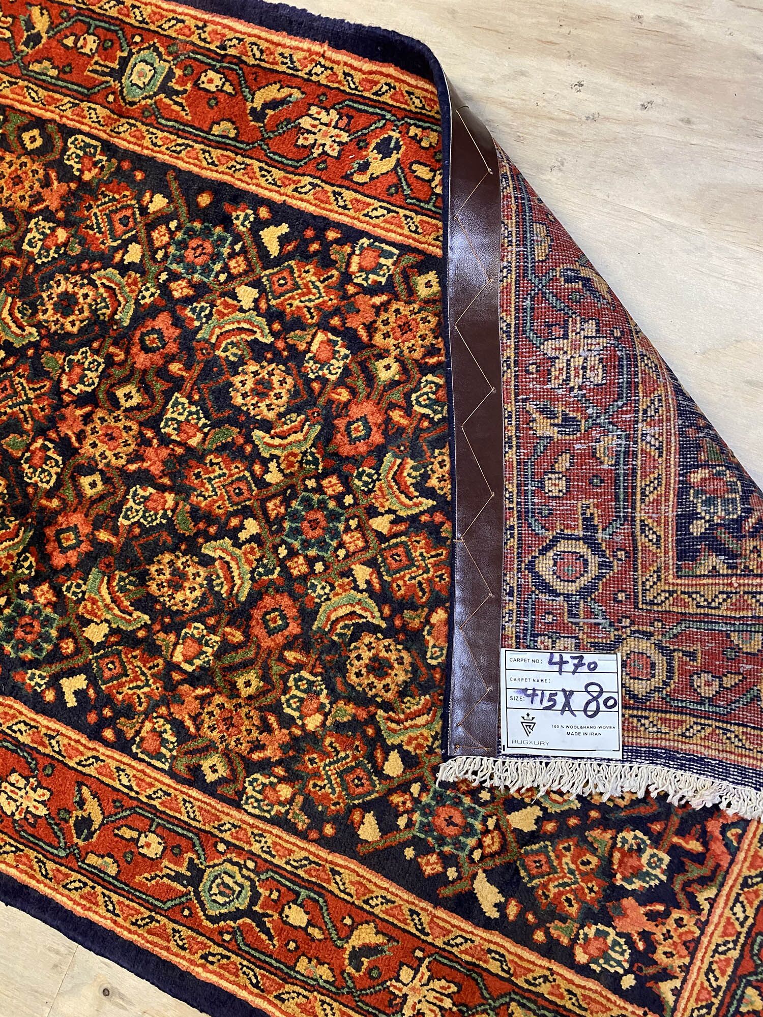 Certified Hand Knotted Persian Rug Hamdedan Runner 415x80cm