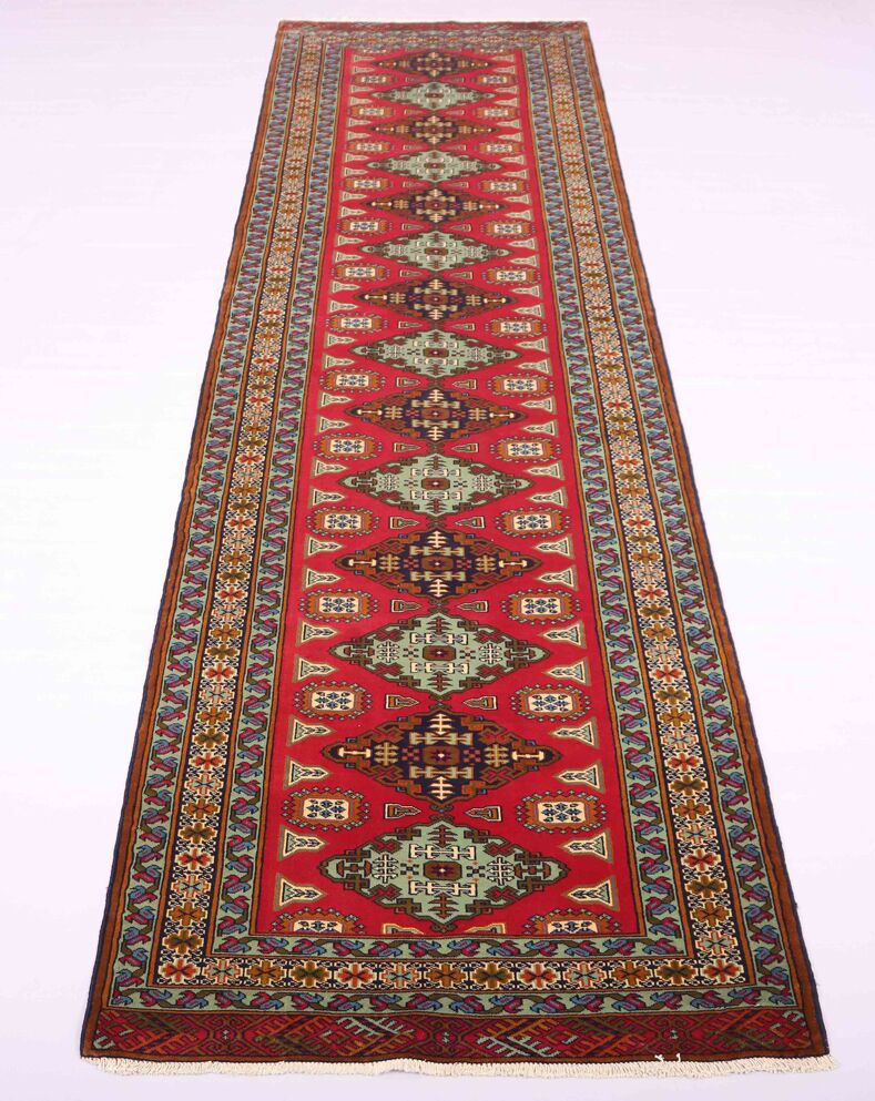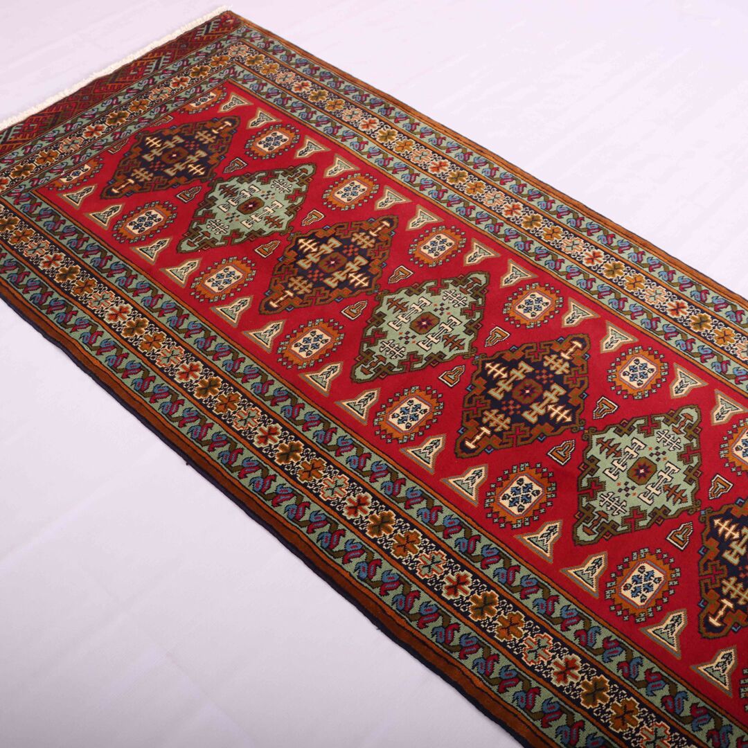 Elevate your space with the enduring beauty and craftsmanship of the Certified Hand Knotted Persian Turkoman Runner Rug, exclusively available from RugMaster, your trusted source for handmade Persian Rugs and Runners.