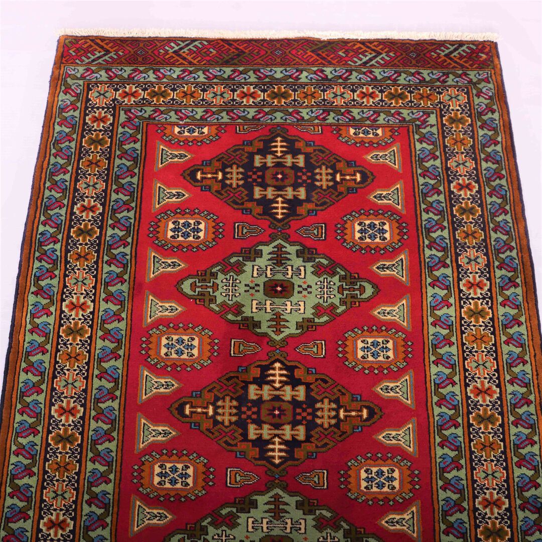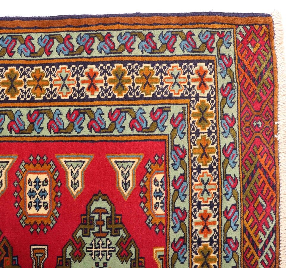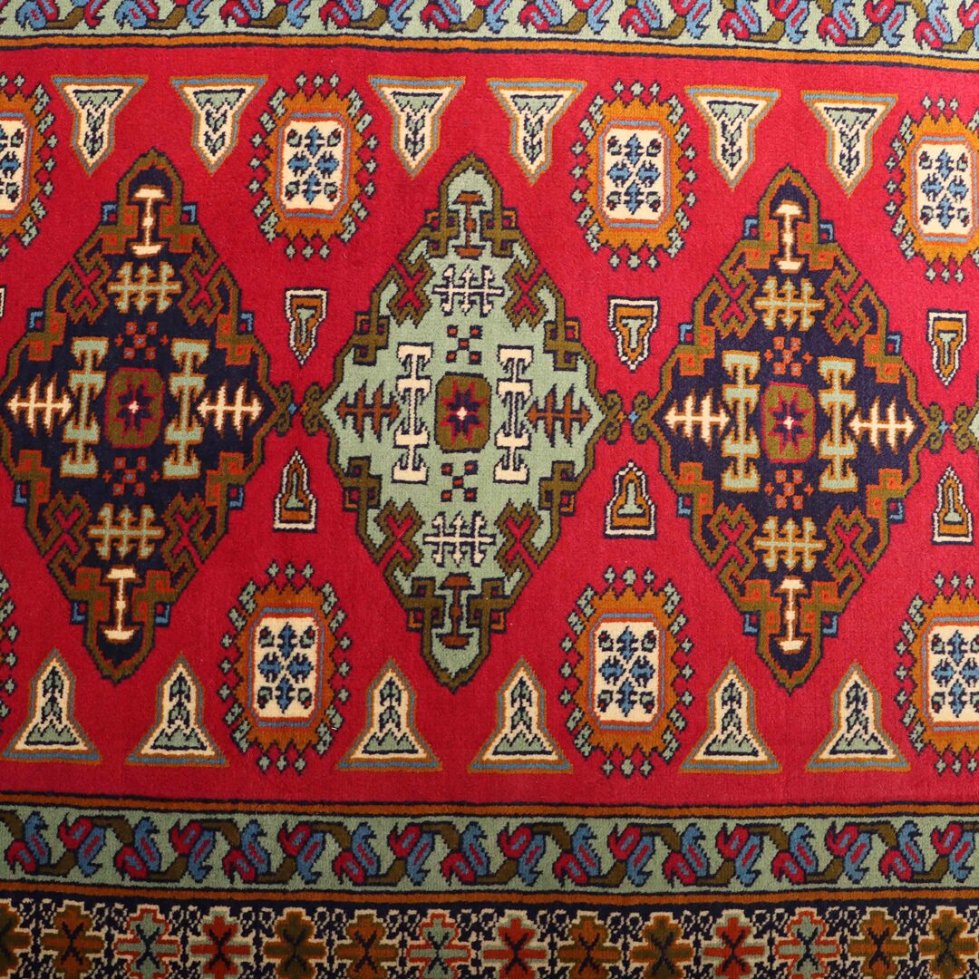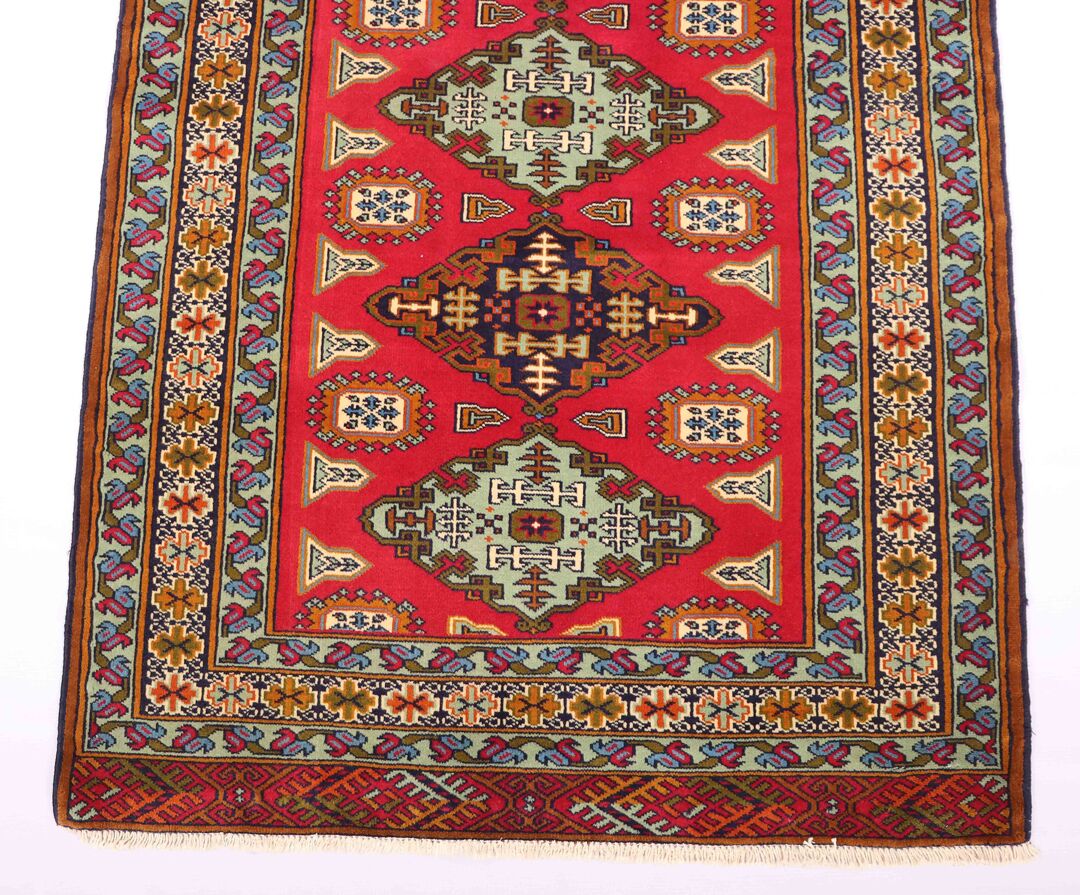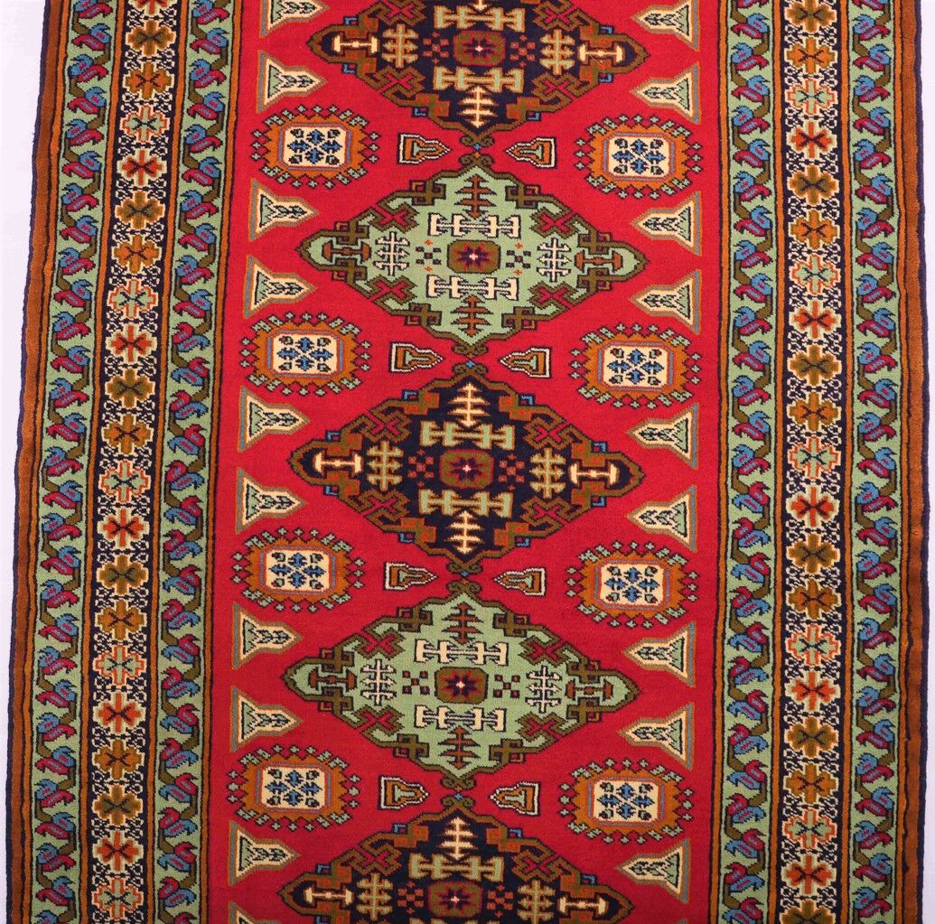– Origin: This handmade Persian Turkoman Runner Rug is a testament to enduring craftsmanship, meticulously hand-knotted by skilled artisans. Crafted with pure hand-spun wool pile on a cotton base, it showcases the artistry from the Turkoman region.