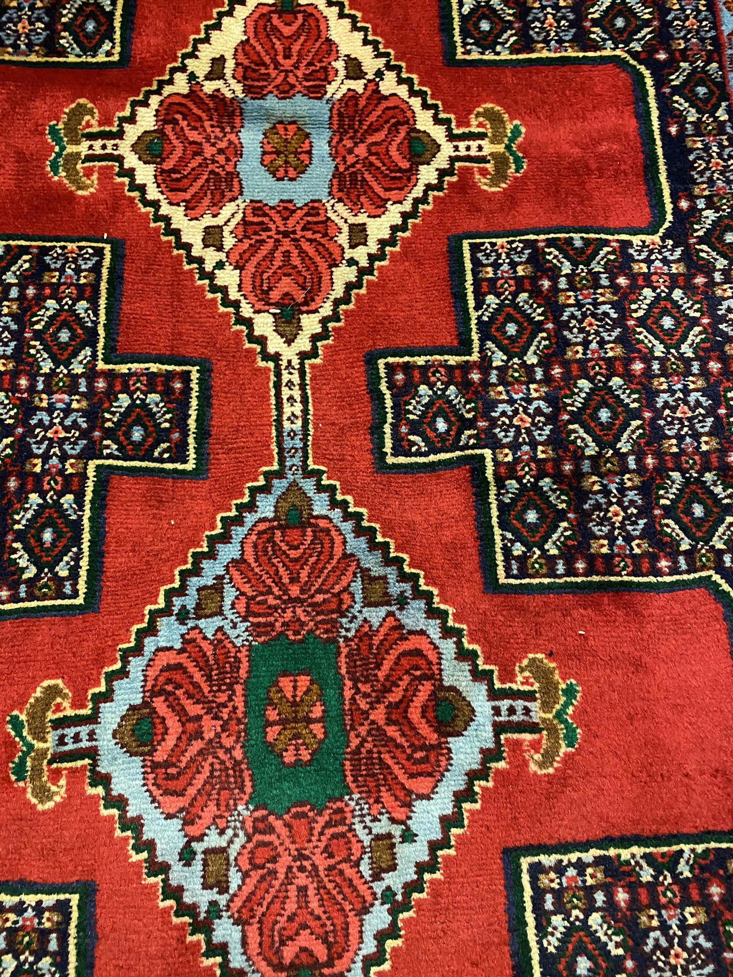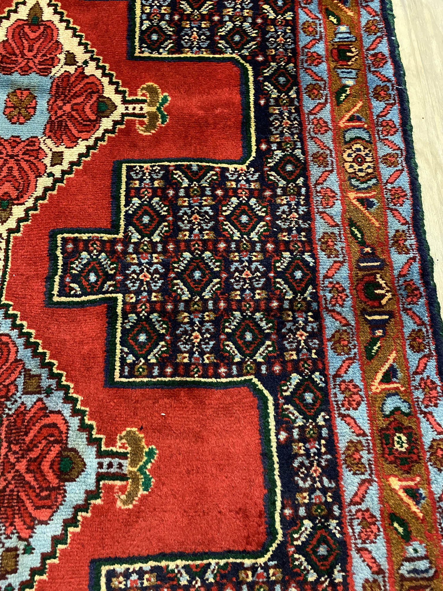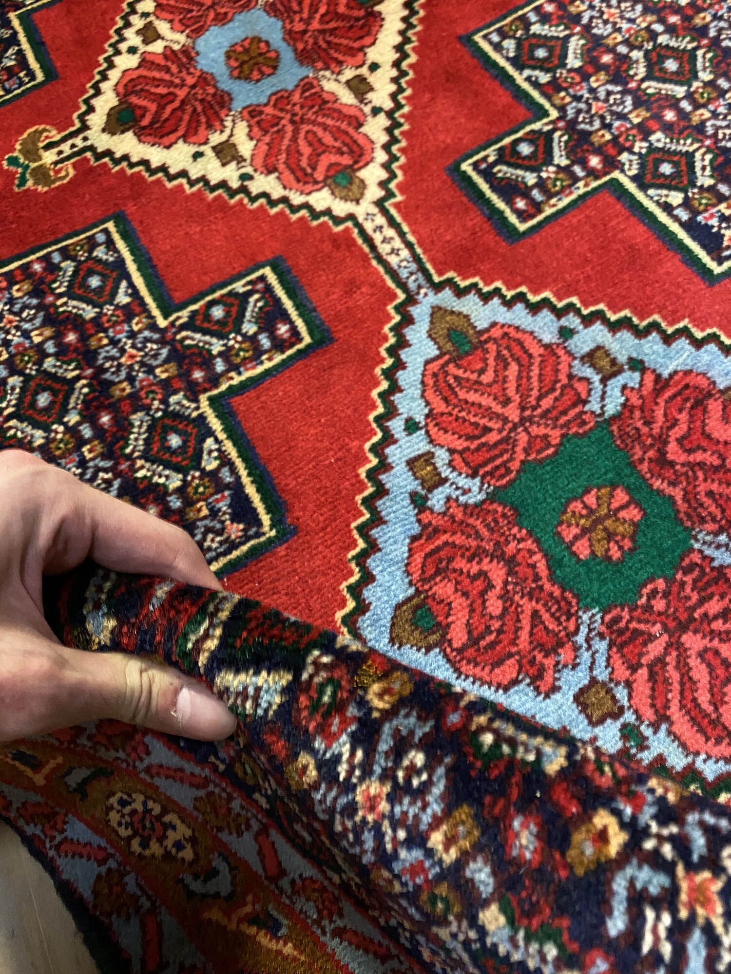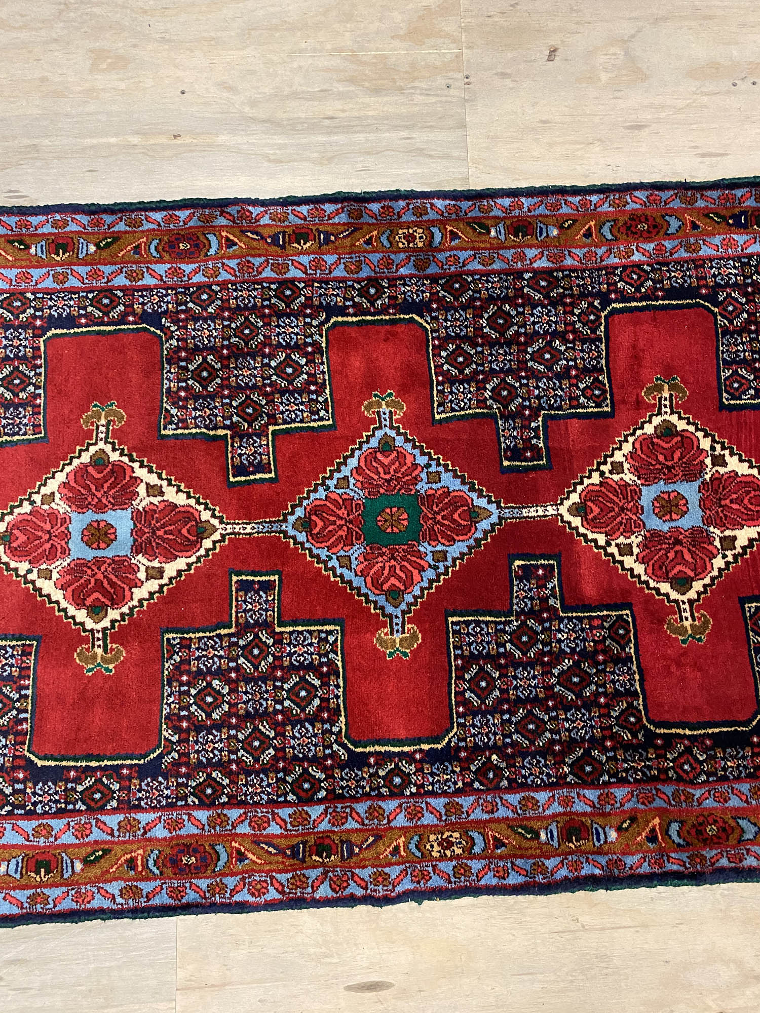 – Origin: Explore the rarity of this 4m hand-knotted Persian Senneh Bijar runner, celebrated for its originality and quality, woven in Sanandaj, a Kurdish province in West Persia.