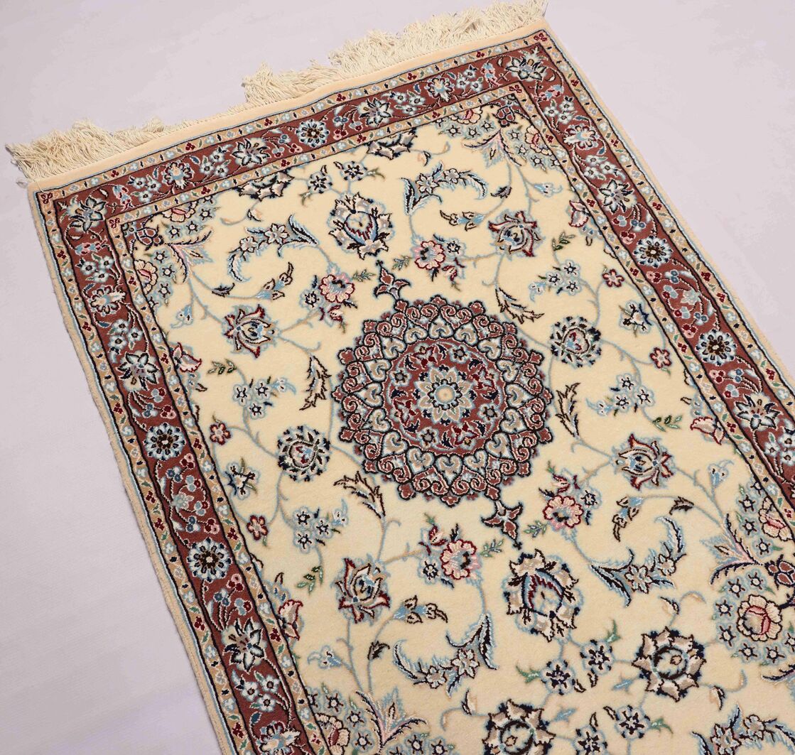 Elevate your space with the allure of this Certified Silkinlaid Hand-Knotted Persian Nain Runner, exclusively from RugMaster, your trusted handmade Persian Rugs and Runners specialist in Australia!