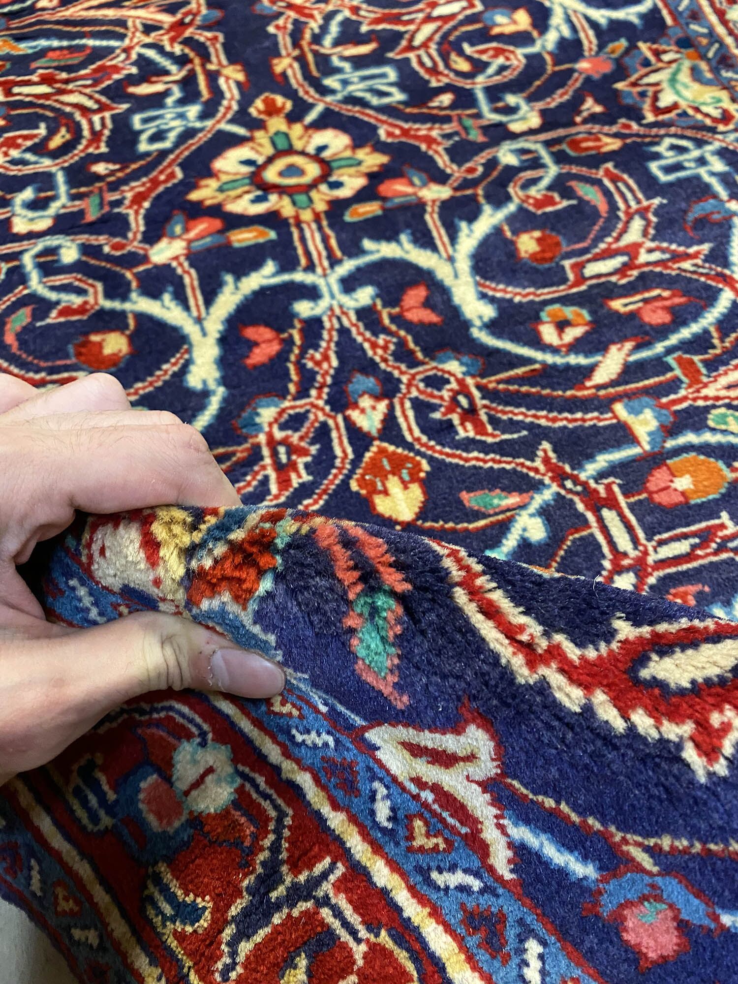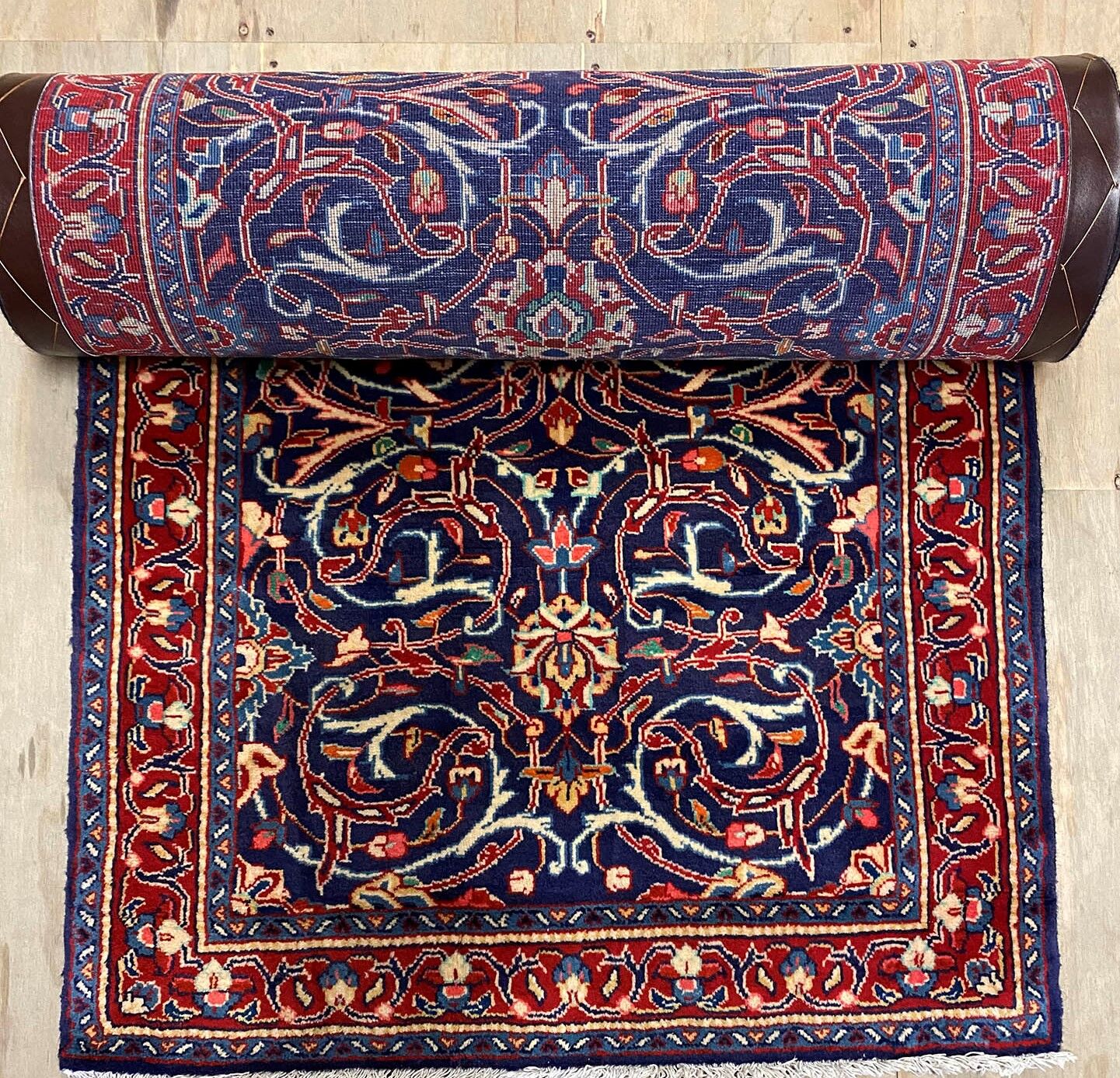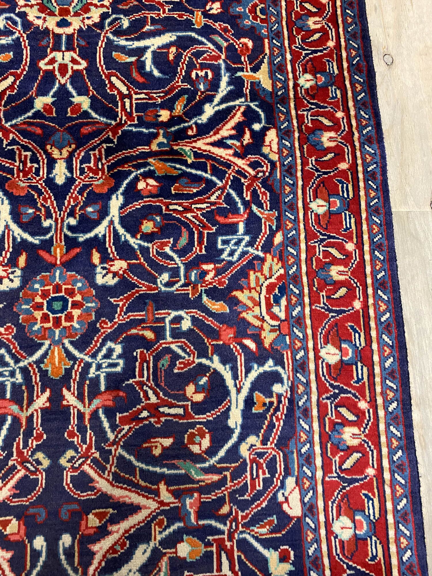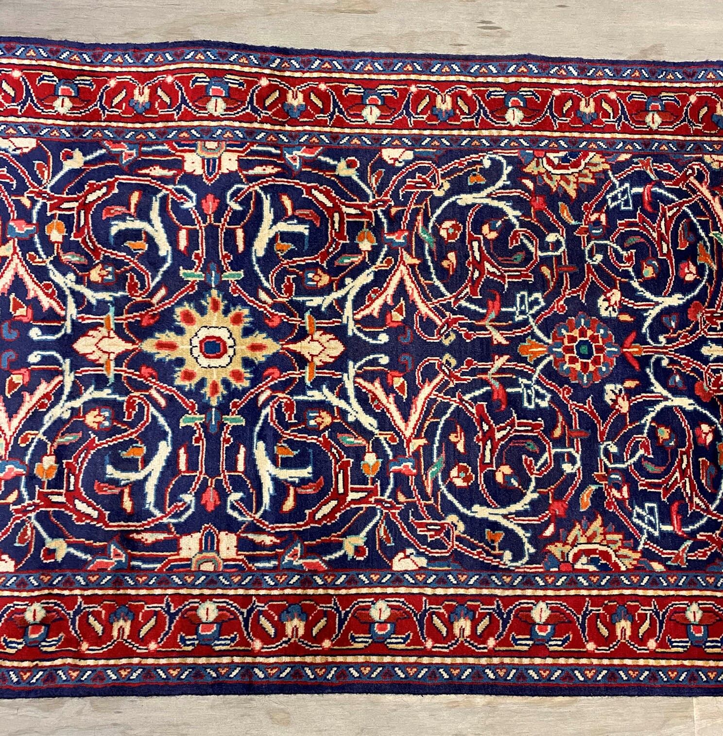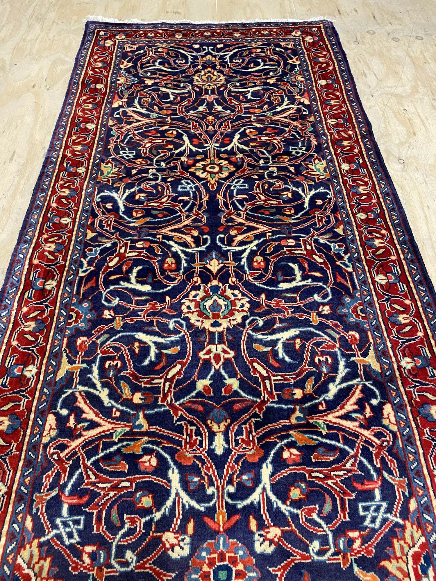 Lamb’s Wool Handmade Persian Sarough Hall Runner. Above All It Has A Very Dense And Heavy Pile. You Will Enjoy How It Will Feel Underneath Your Feet. It Also Pure Lamb’s Pile On Cotton Base. It Has an Indigo Blue and Red Tone Which Was Dyed Using Traditional Methods.