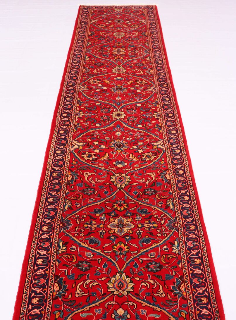 – Craftsmanship: Hard-to-find quality hand-made hall runners over 3.5m, featuring pure lamb’s pile on a cotton base with red tones dyed using traditional methods.