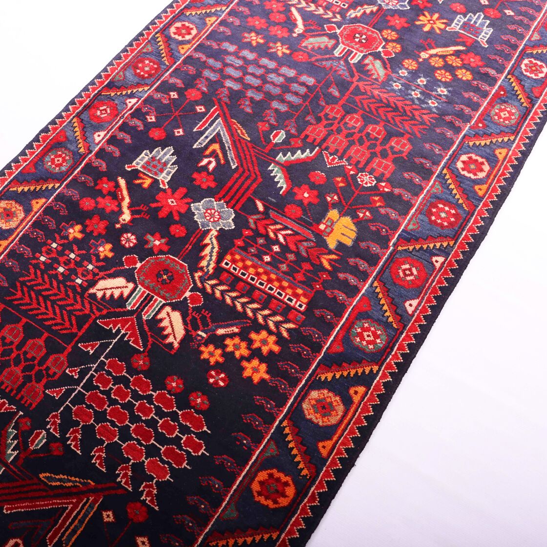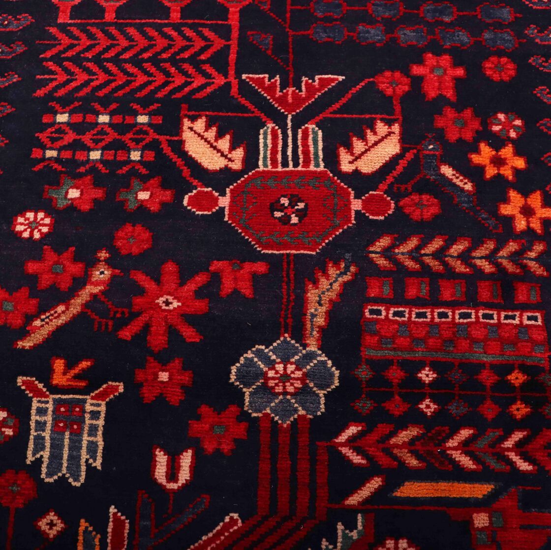 – Gorgeous Background: Dyed using traditional methods, the rug features a stunning Indigo Blue background, adding warmth and vibrancy.