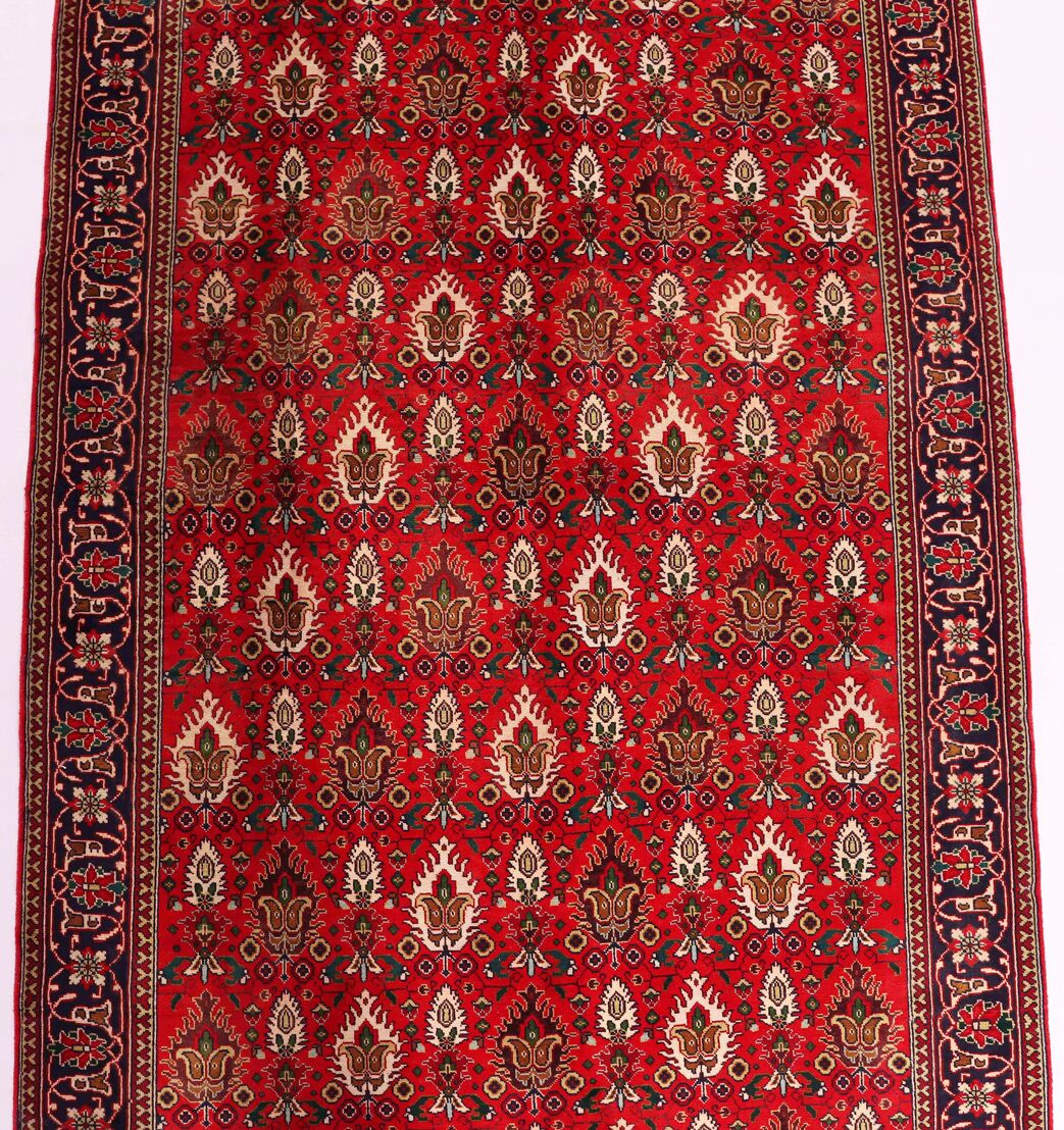 – Elegance Redefined: Experience authenticity with this handmade Persian Tabriz runner. Pure wool pile on a cotton base and a beautiful red tone dyed using traditional methods showcase the craftsmanship of this piece.
