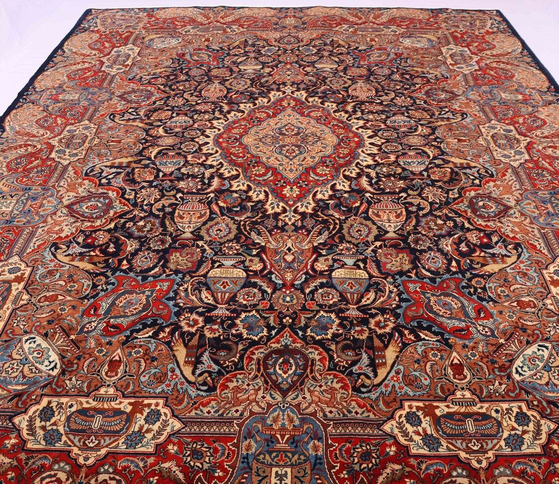 – Unique Elegance: Discover a stunning large room size authentic handmade treasure design Persian Kashmar carpet, a rare find in this exceptional design.