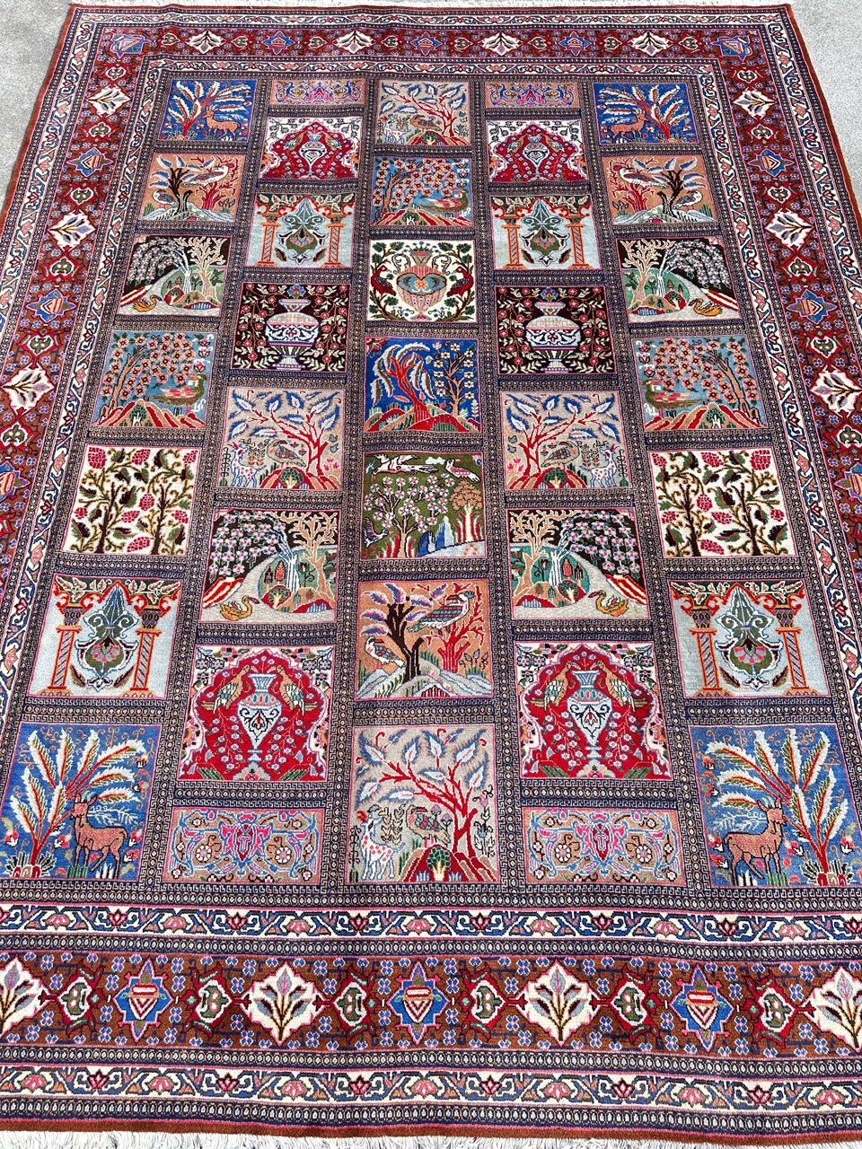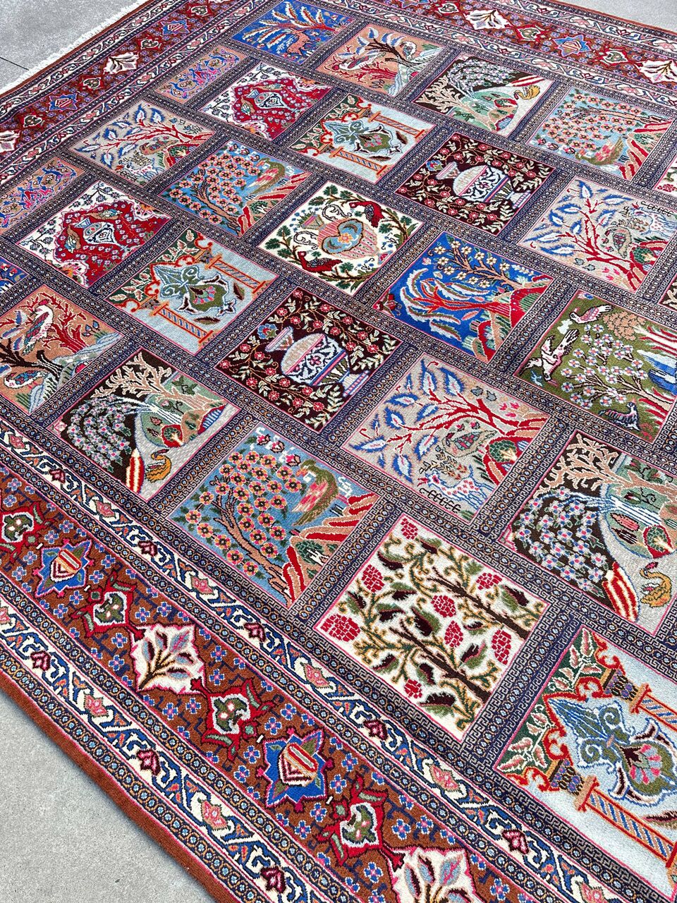 – Compartment Design: Renowned as the Garden Pattern or Window Scene, the superb compartment design enhances the rug’s uniqueness.
