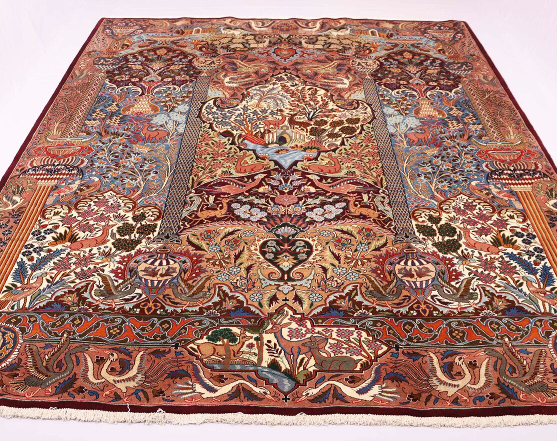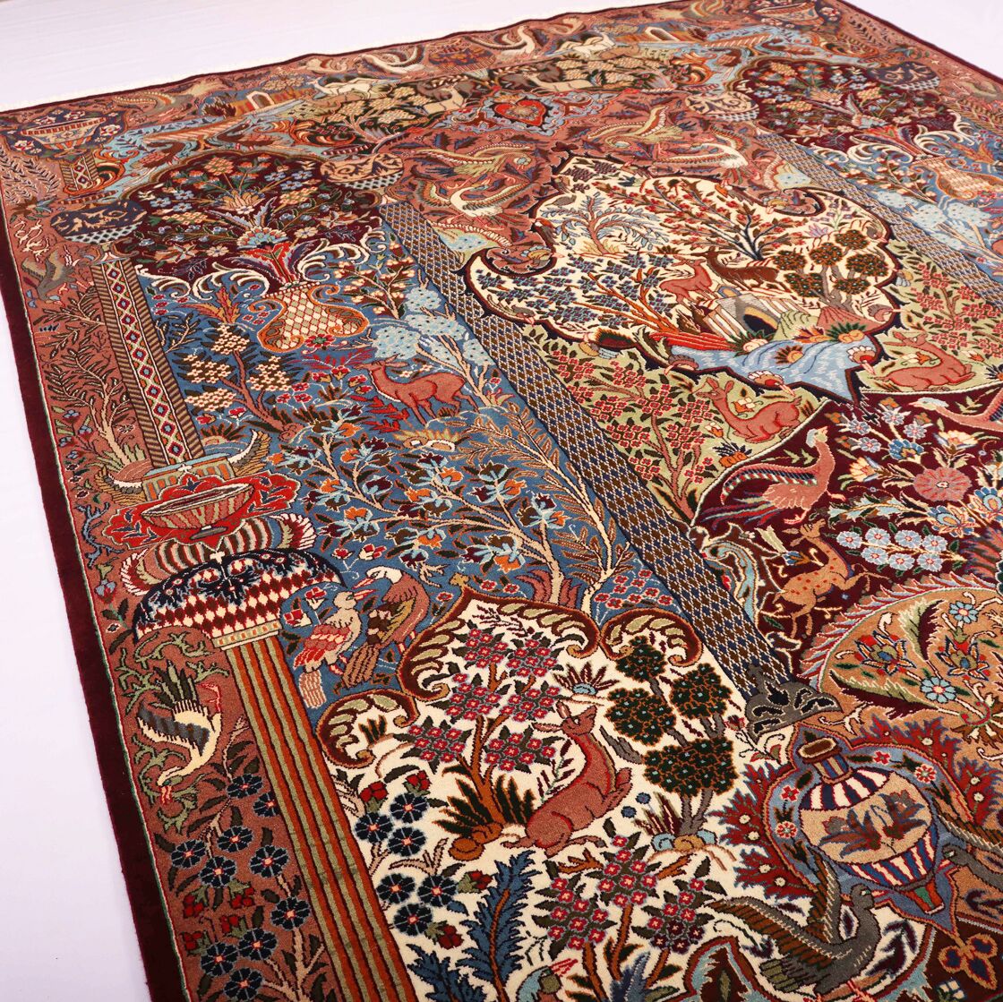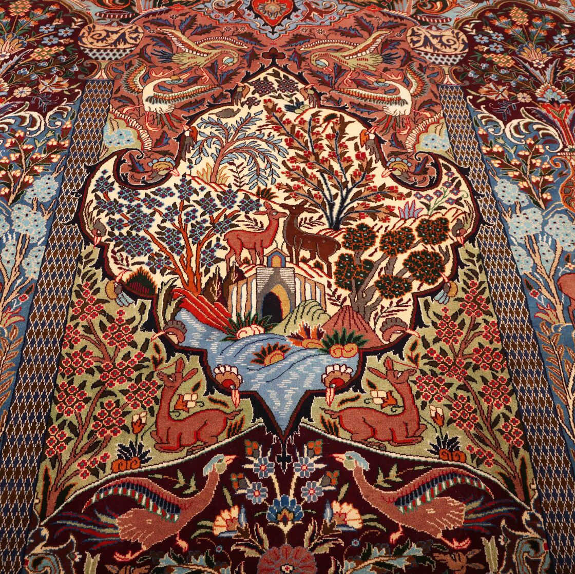 High-Quality Masterpiece Certified Handmade Pictorial Garden of Eden Kashmar Rug