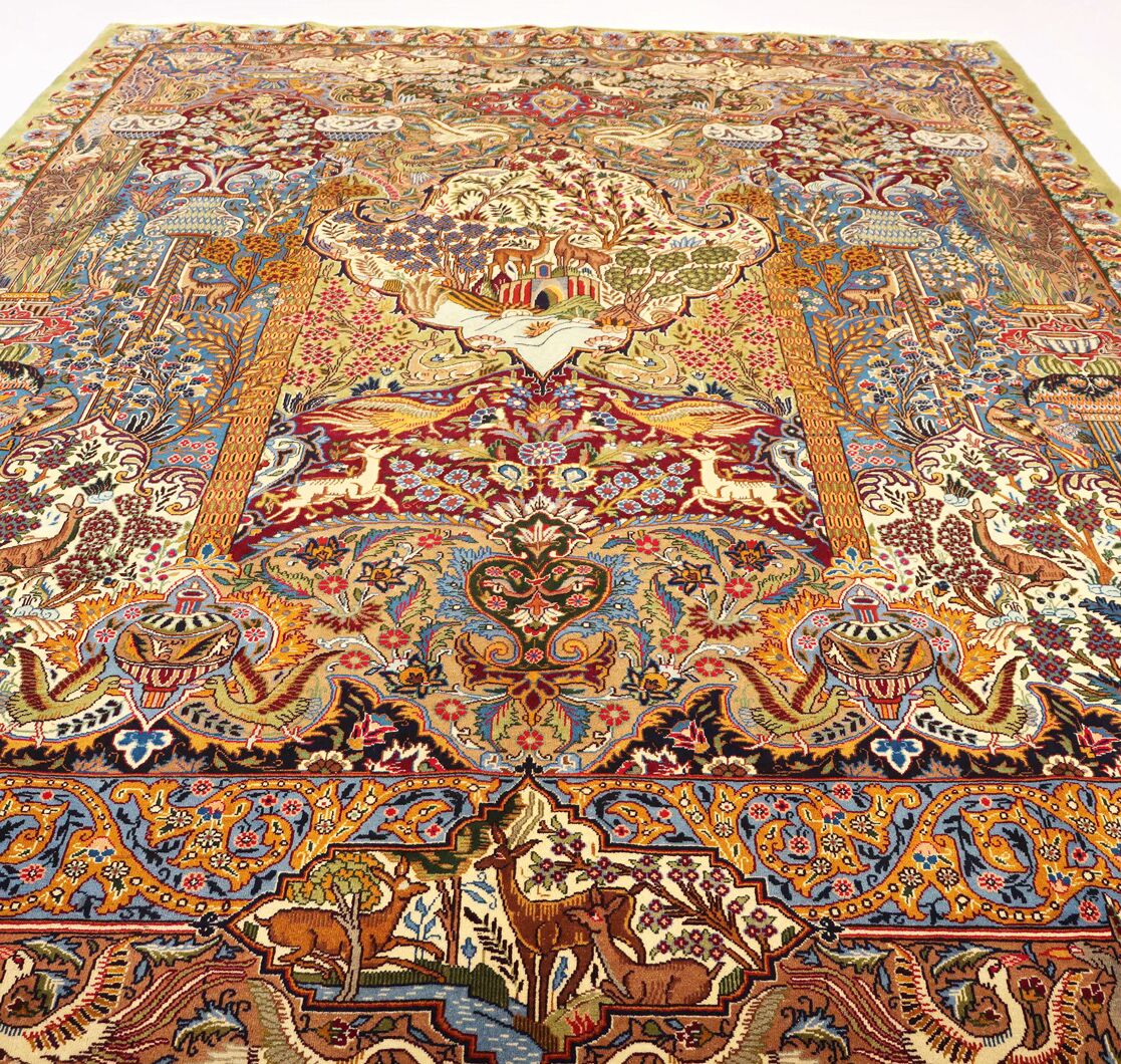 High Quality Massive Room Size Garden Of Eden Authentic Persian Kashmar Rug. Above All This Rug Would Look Like a Painting on Your Floor. It Also Has a Pure Lamb’s Wool Pile on Cotton Base. Multi-Color Tones Dyed Using Traditional Methods. It Is Fine Quality Piece Which Would Last A Life Time.