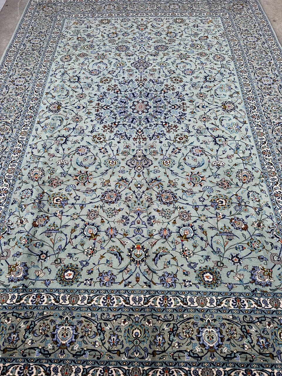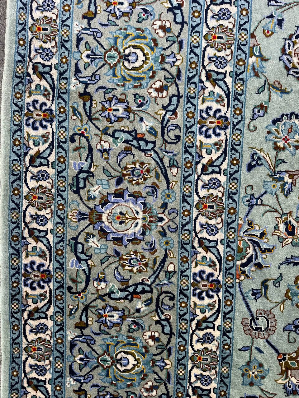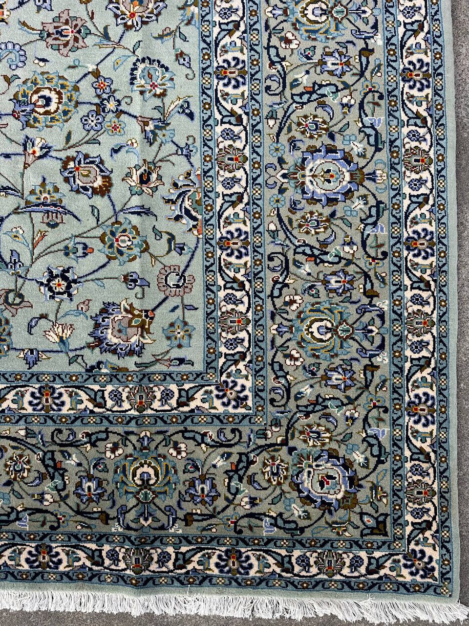 Signed Pistachio Tone Persian Kashan Rug – 404×290