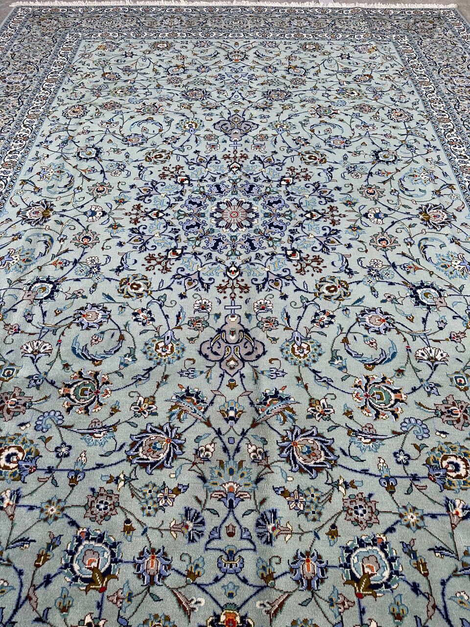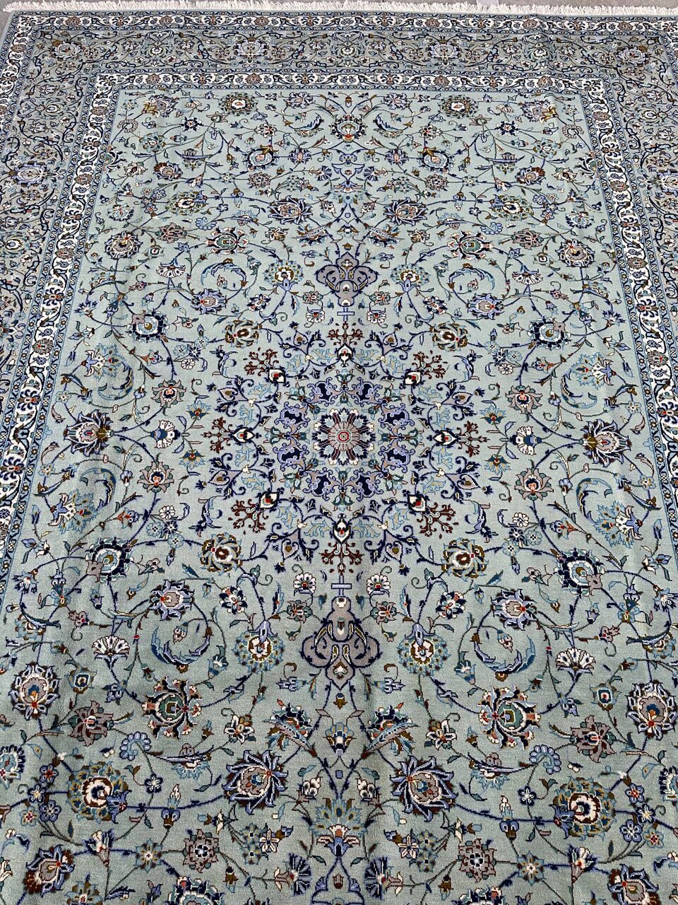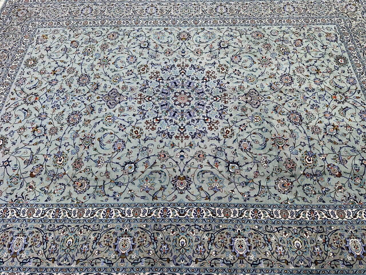 Signed Pistachio Tone Persian Kashan Rug – 404×290