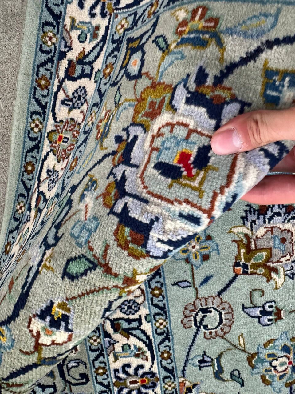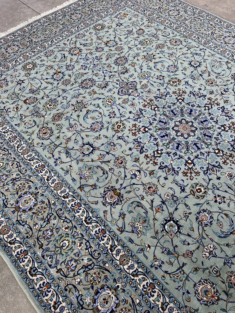 Be the first to review “4x3M Signed Pistachio Tone Persian Kashan Rug”