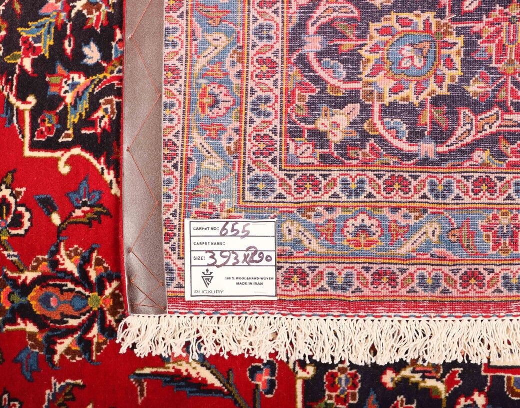 Signed Large Room Size Persian Kashan Rug. Above All It Is Hard To Get This Quality Original Handmade Rug. It Has a Pure Lamb’s Pile on Cotton Base. Main Colors Are Deep Red, Beige And Red Dyed Using Traditional Methods. Fine Quality Piece from City Of Kashan.