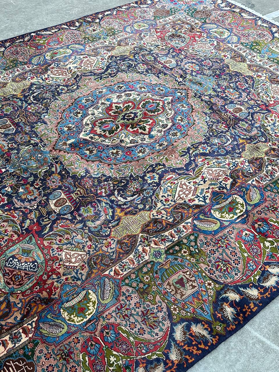 Stunning Large Room Size Authentic Handmade Treasure Design Persian Kashmar Rug
