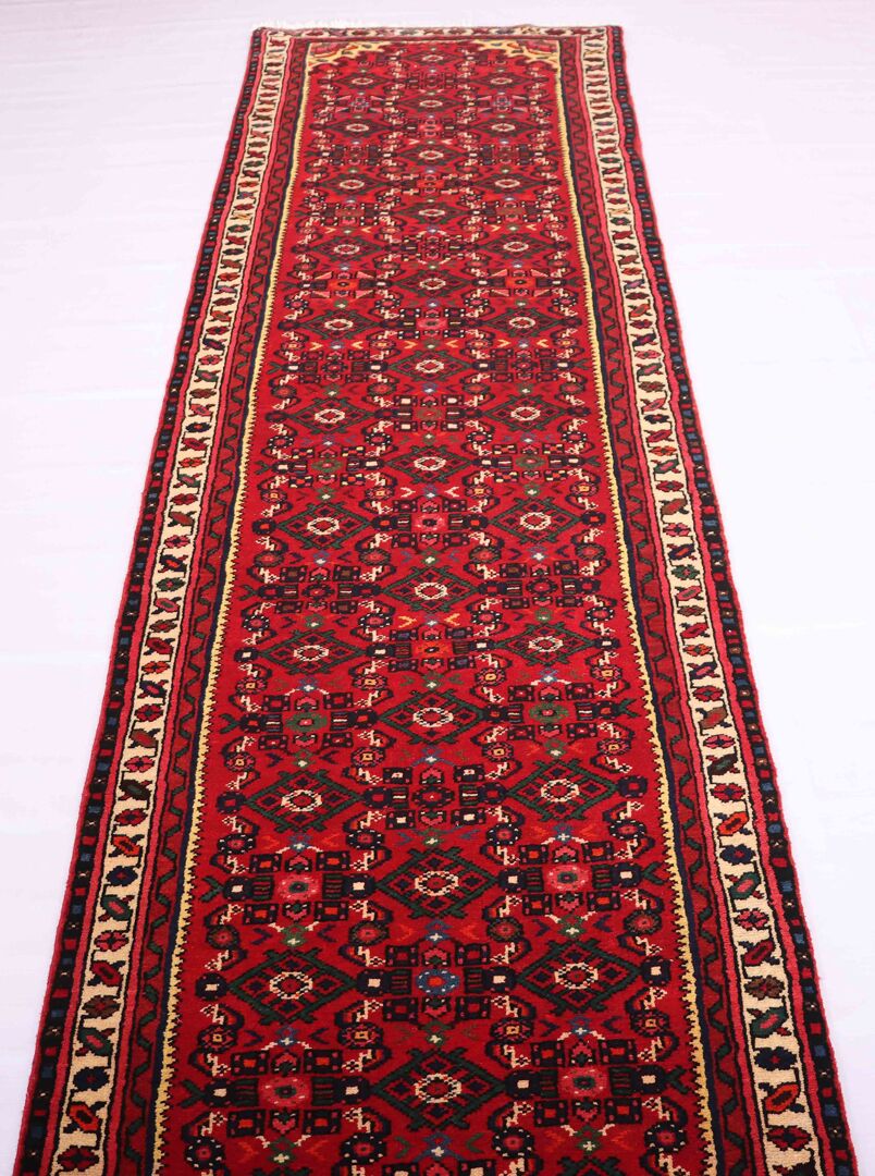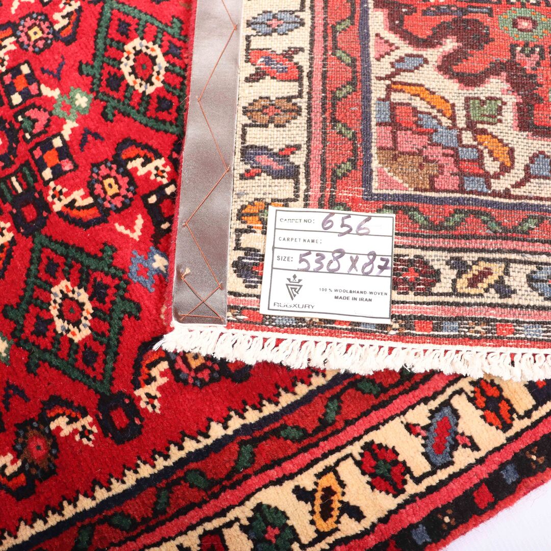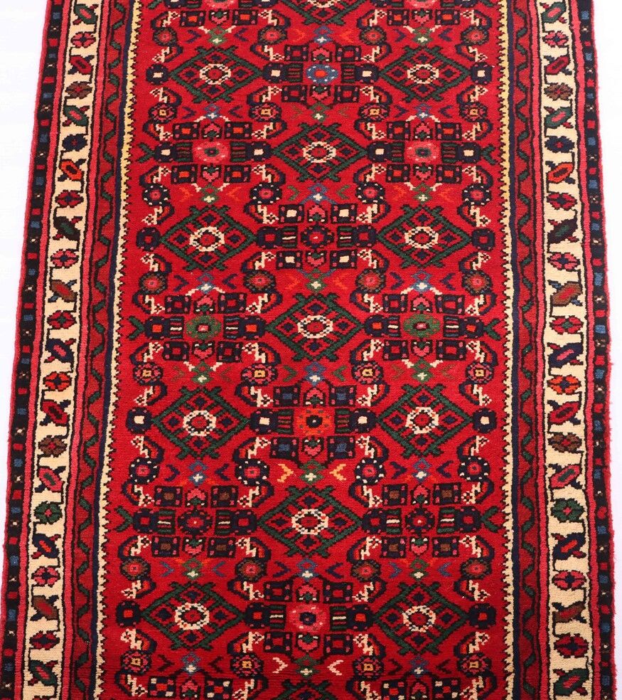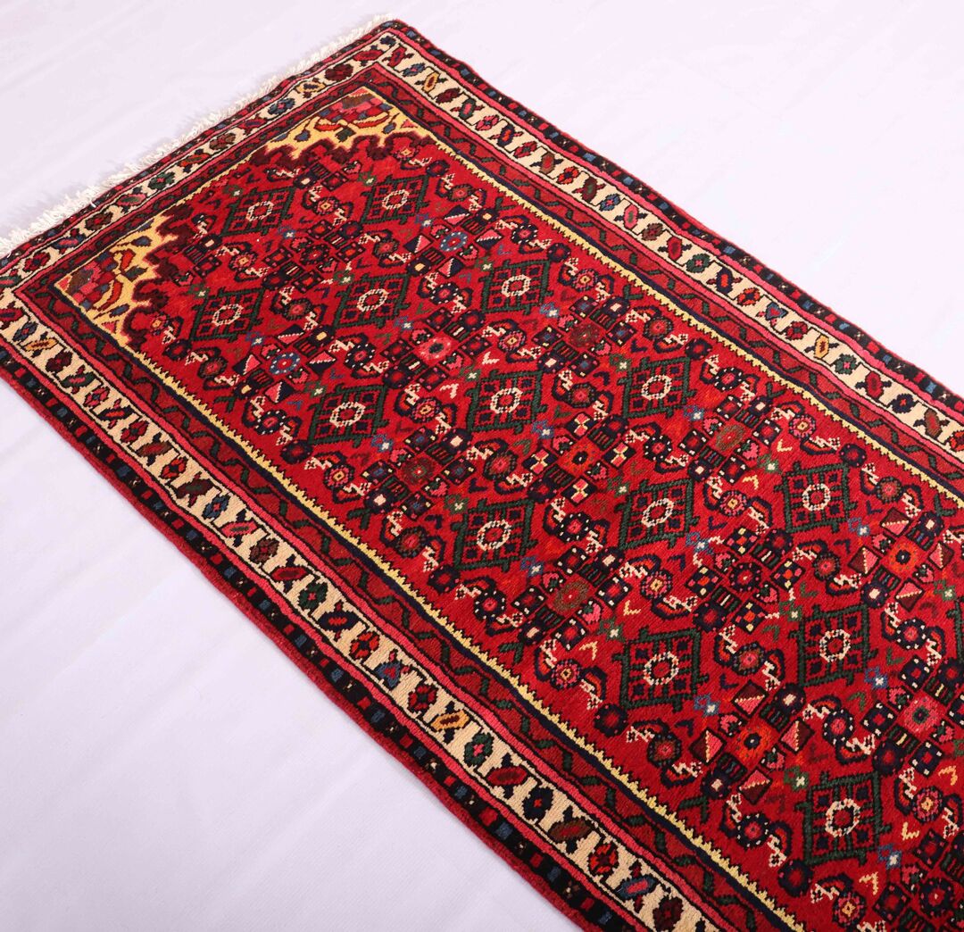 – Durable Elegance: Elevate your hallway with this Hosseinabad design handmade Persian Hamedan Runner, known for its hard-wearing and durable qualities. Pure hand-spun wool pile on a cotton base provides both comfort and longevity.