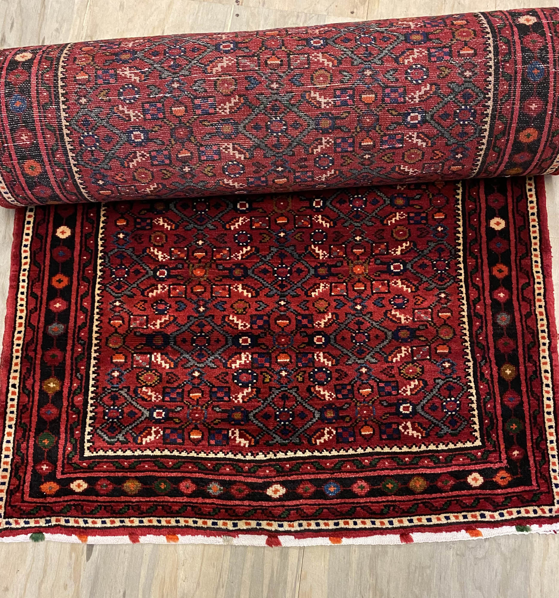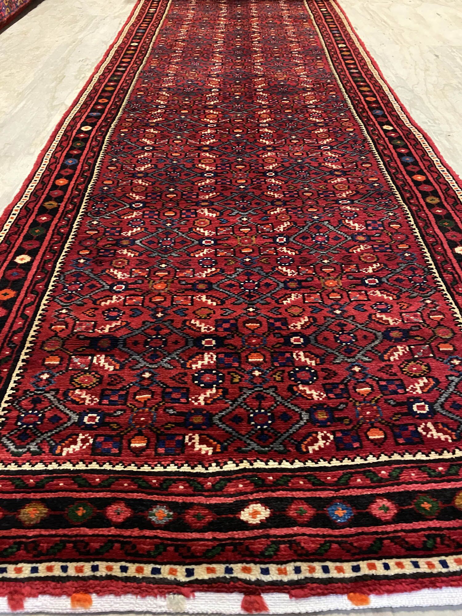 – Durable Elegance: Elevate your hallway with this Hosseinabad design handmade Persian Hamedan Runner, known for its hard-wearing and durable qualities. Pure hand-spun wool pile on a cotton base provides both comfort and longevity.