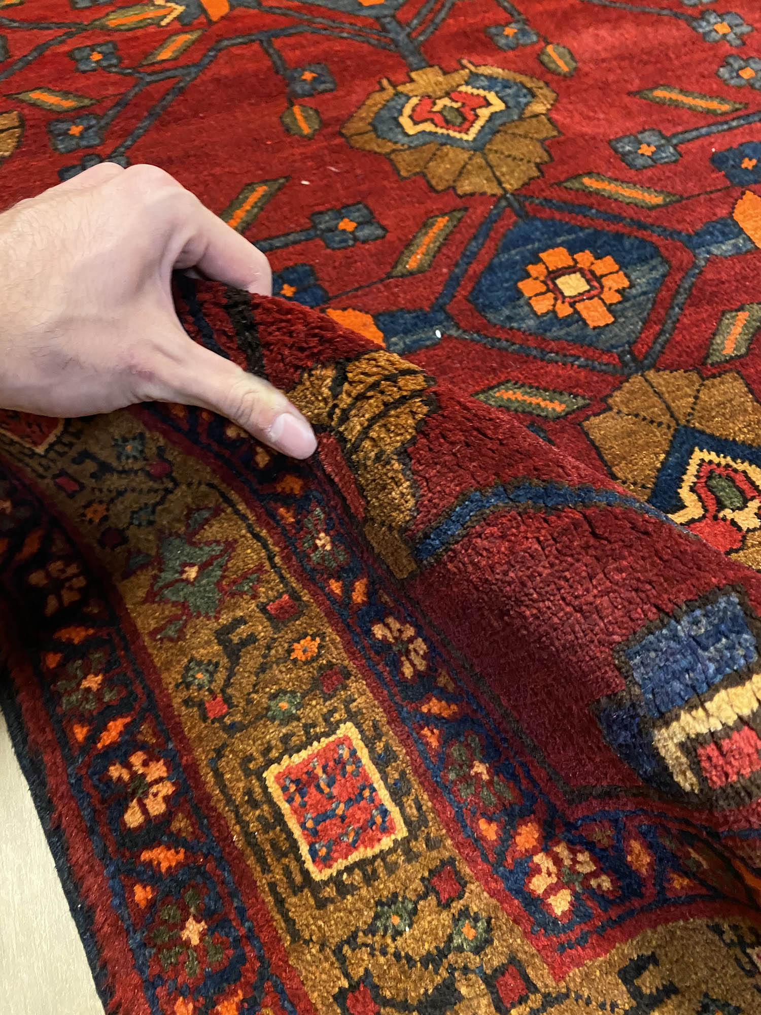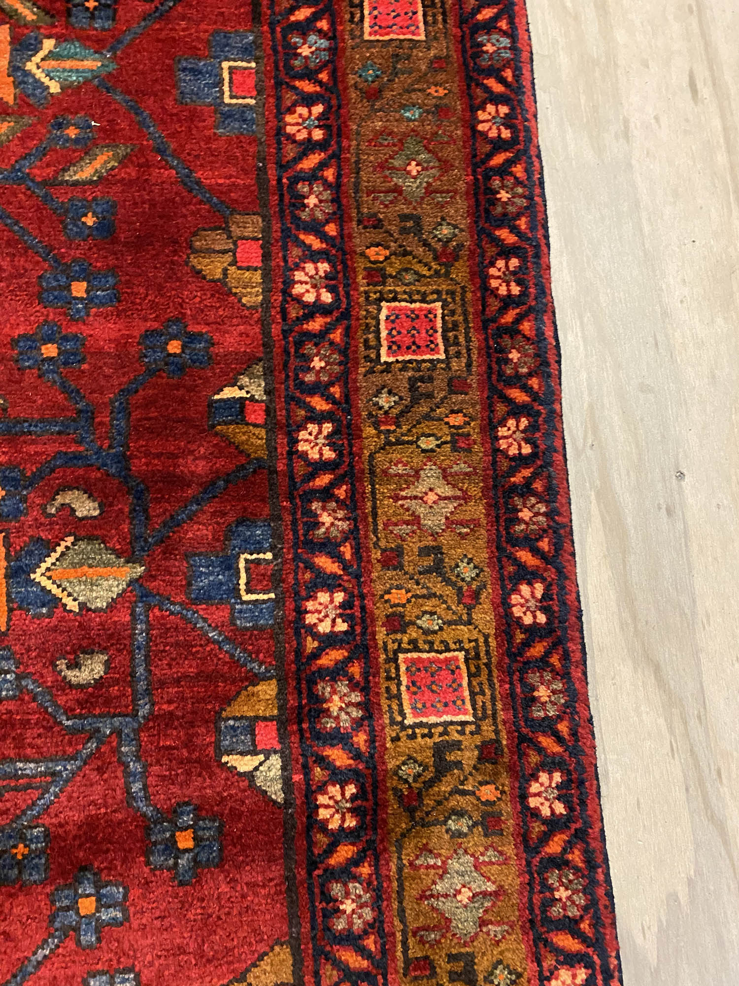 Rare 5m Long Herati Design Handmade Persian Hamedan Runner. Above All It Is Hard Wearing & Durable Runner. It Also Has Pure Hand Spun Wool Pile On Cotton Base. Gorgeous Red Background Dyed Using Traditional Methods.