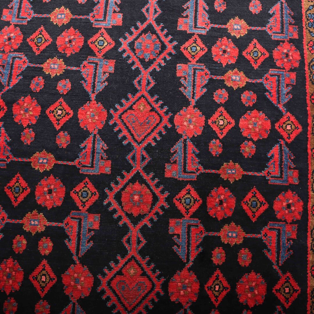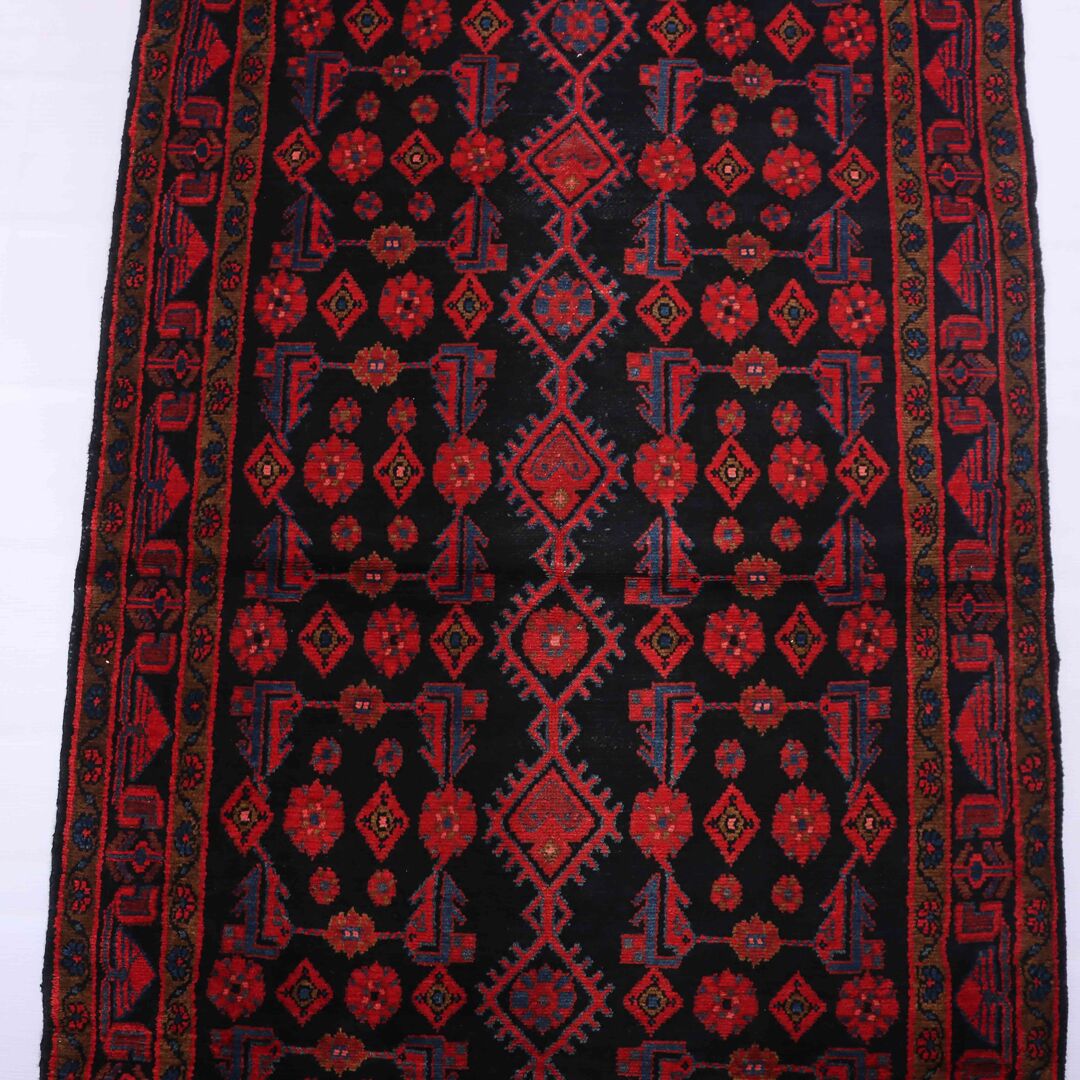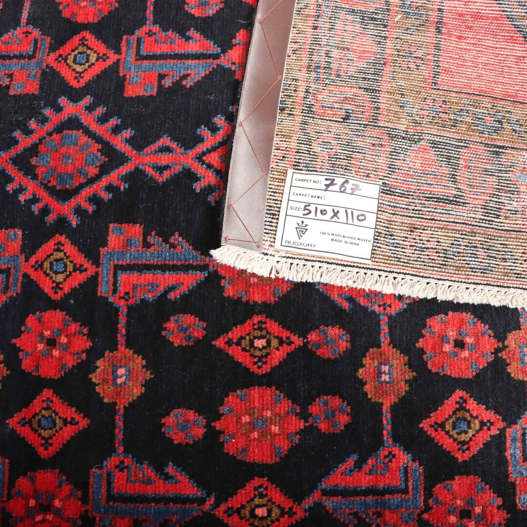 – Origin: Handwoven in the village of Malayer in Central West Persia, this rare 5-meter long tribal design handmade Persian Hamedan runner is a unique piece of art.