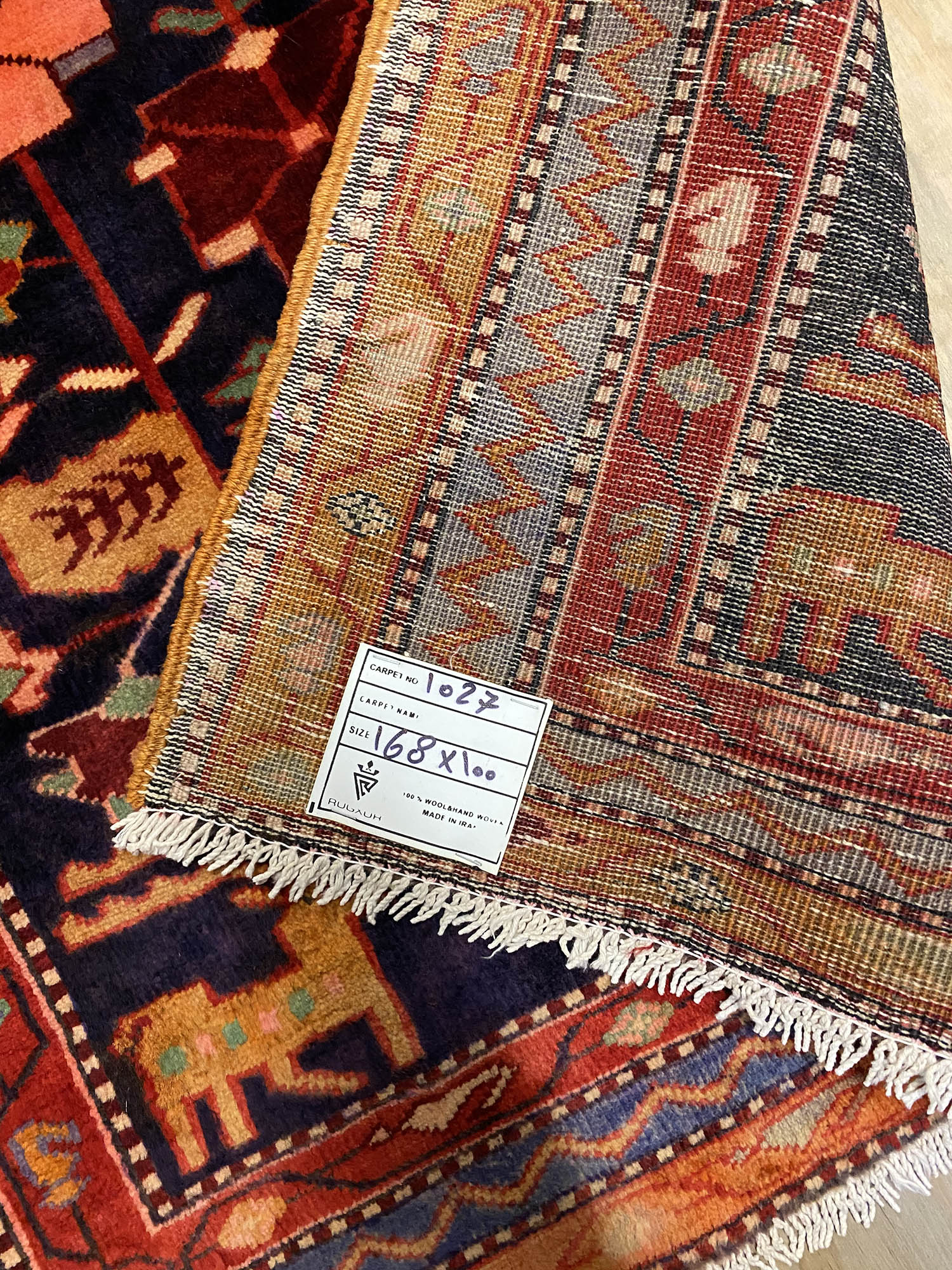 Certified Hand Knotted Persian Hamedan rug 168x100cm