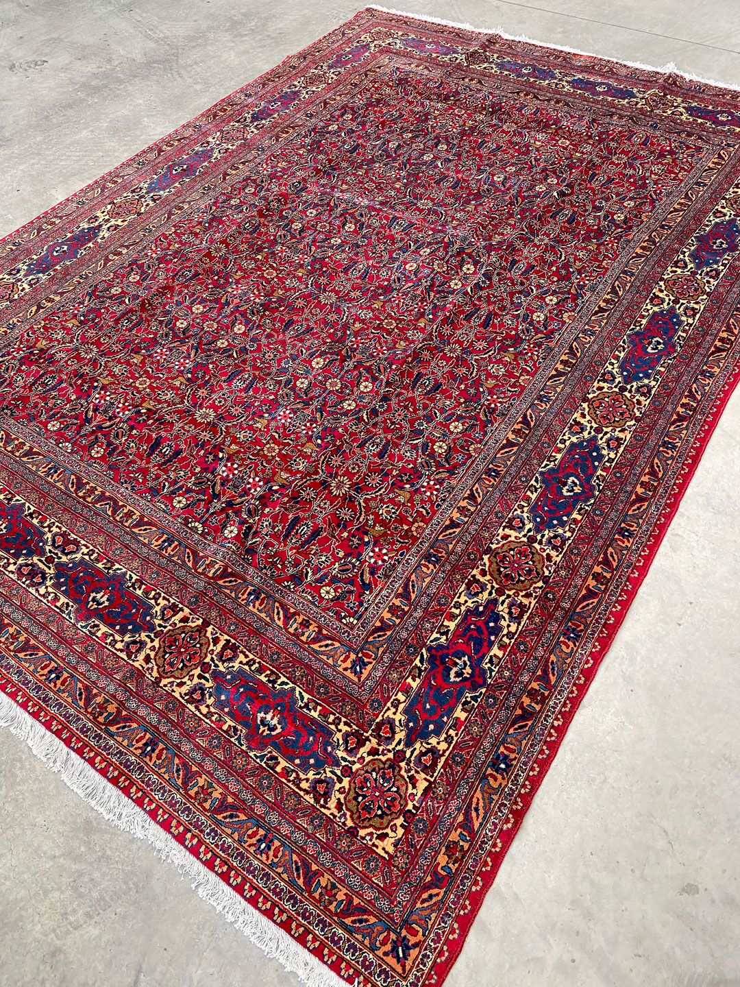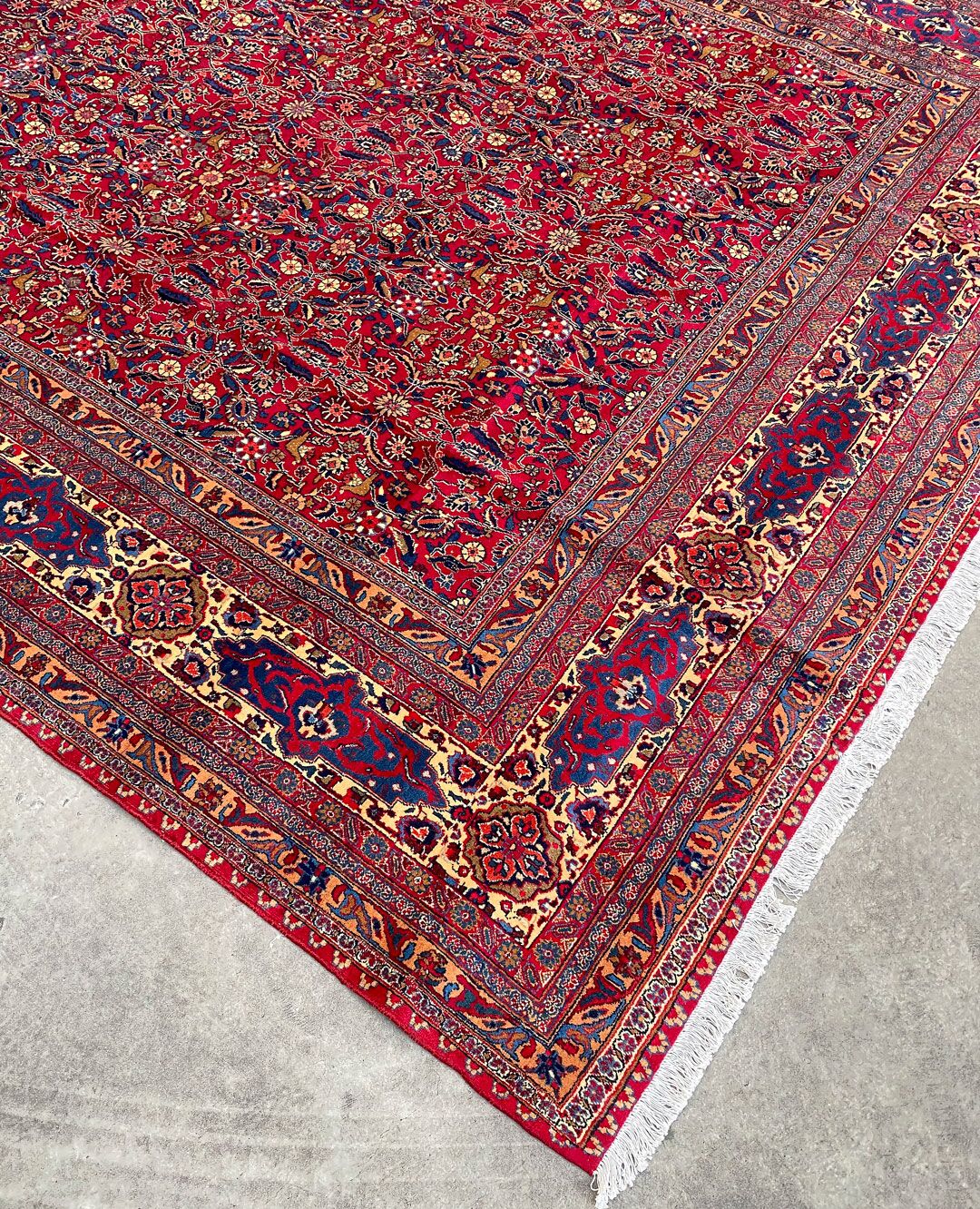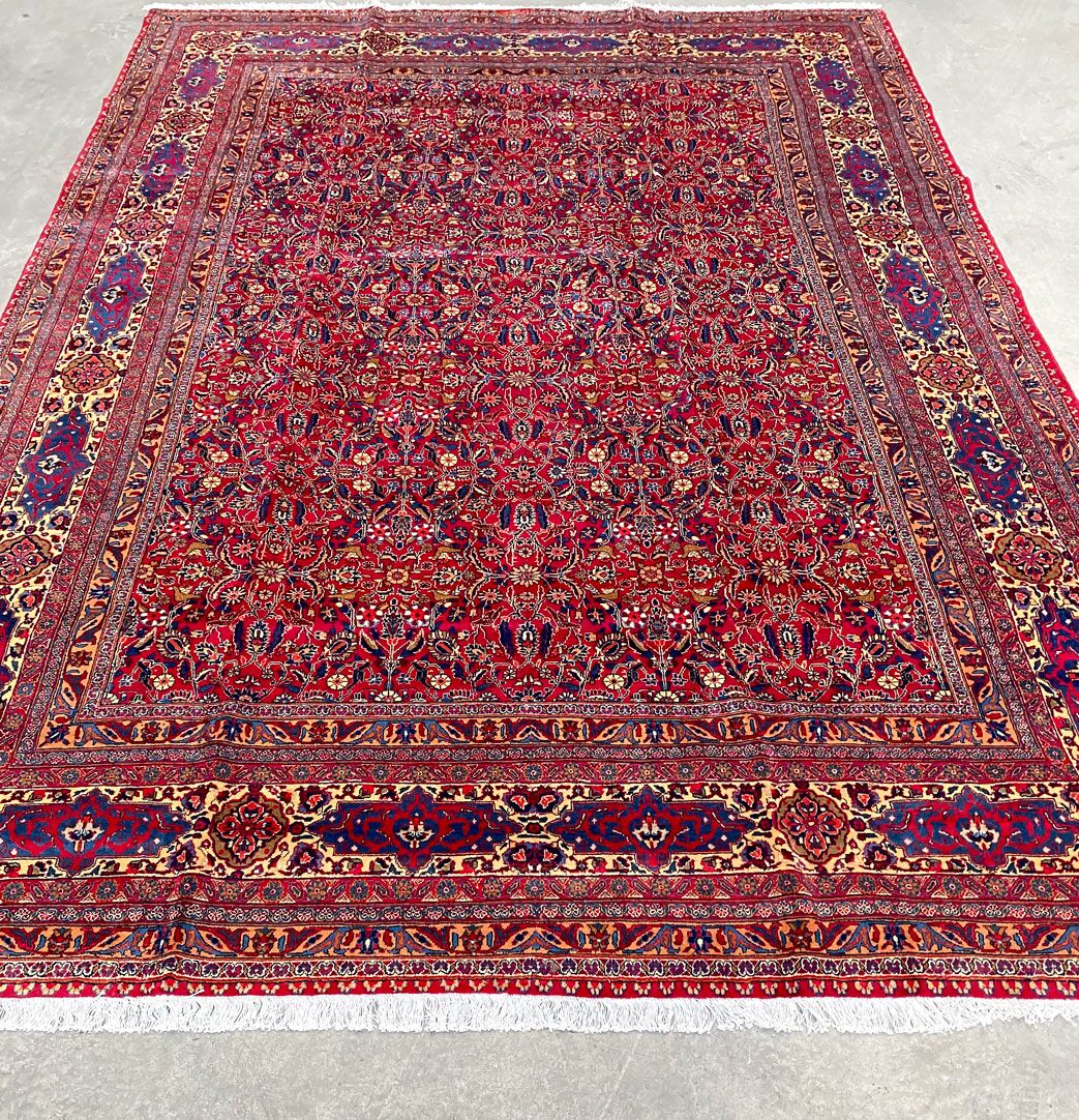 Large Room Size Authentic Persian Carpet. Above All It Is Hard To Get This Quality Hand Made Rug In Larger Sizes. Pure Lamb’s Pile on Cotton Base. Rich Red Tone Dyed Using Traditional Methods.