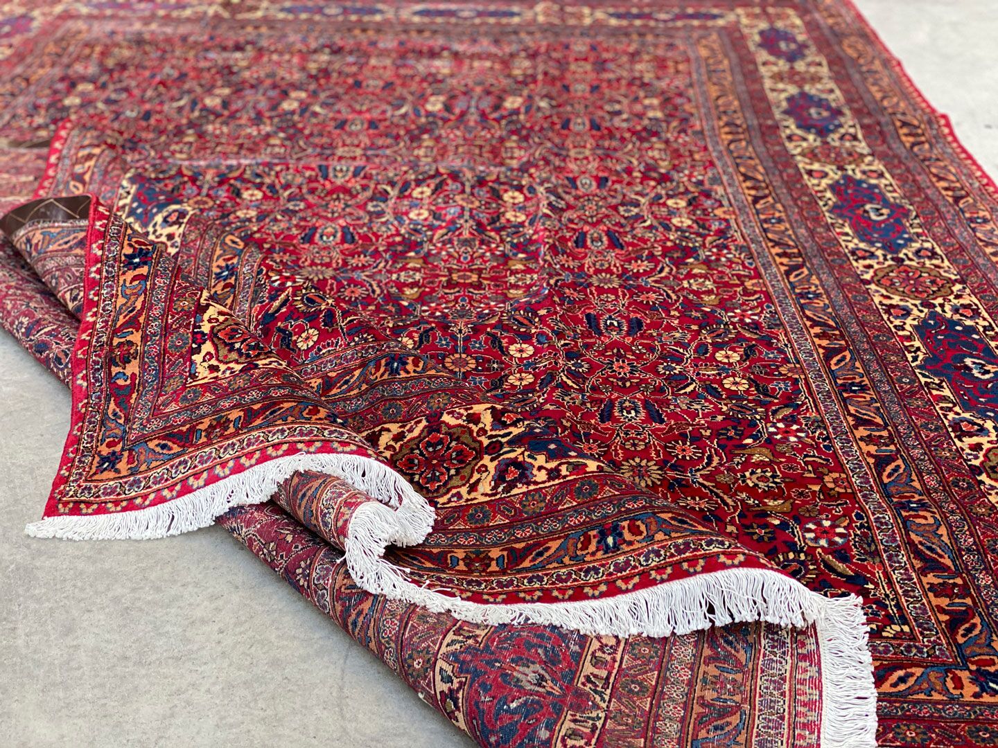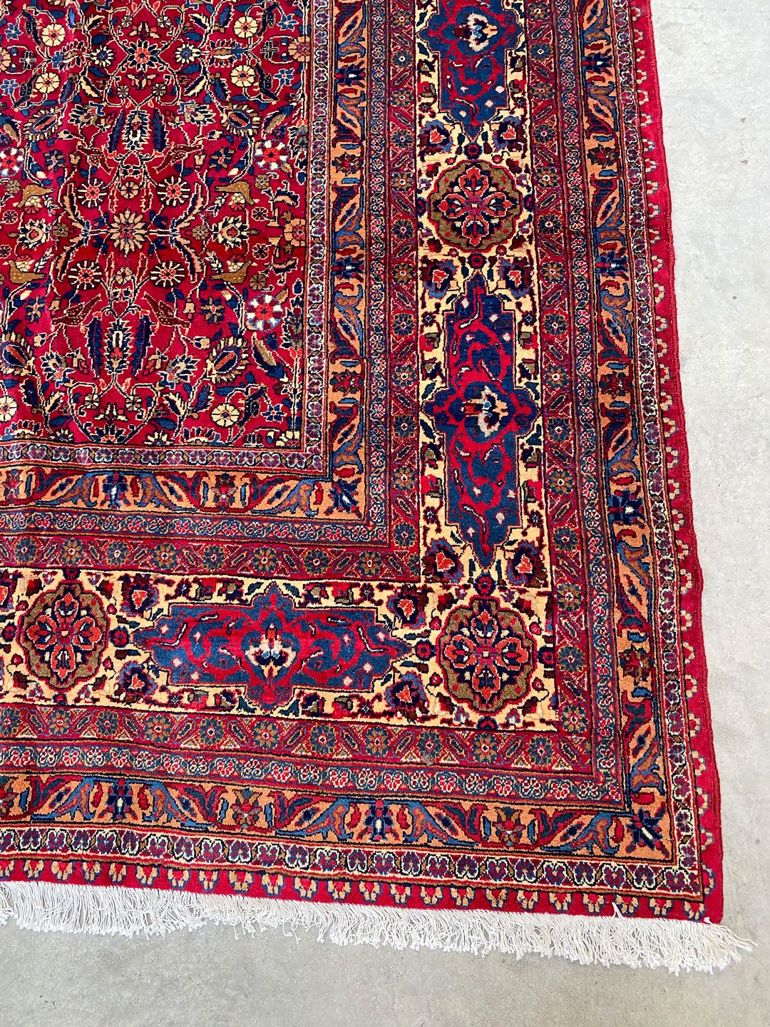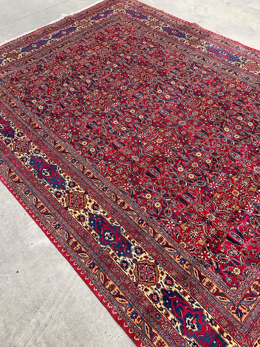 Large Room Size Authentic Persian Carpet. Above All It Is Hard To Get This Quality Hand Made Rug In Larger Sizes. Pure Lamb’s Pile on Cotton Base. Rich Red Tone Dyed Using Traditional Methods.