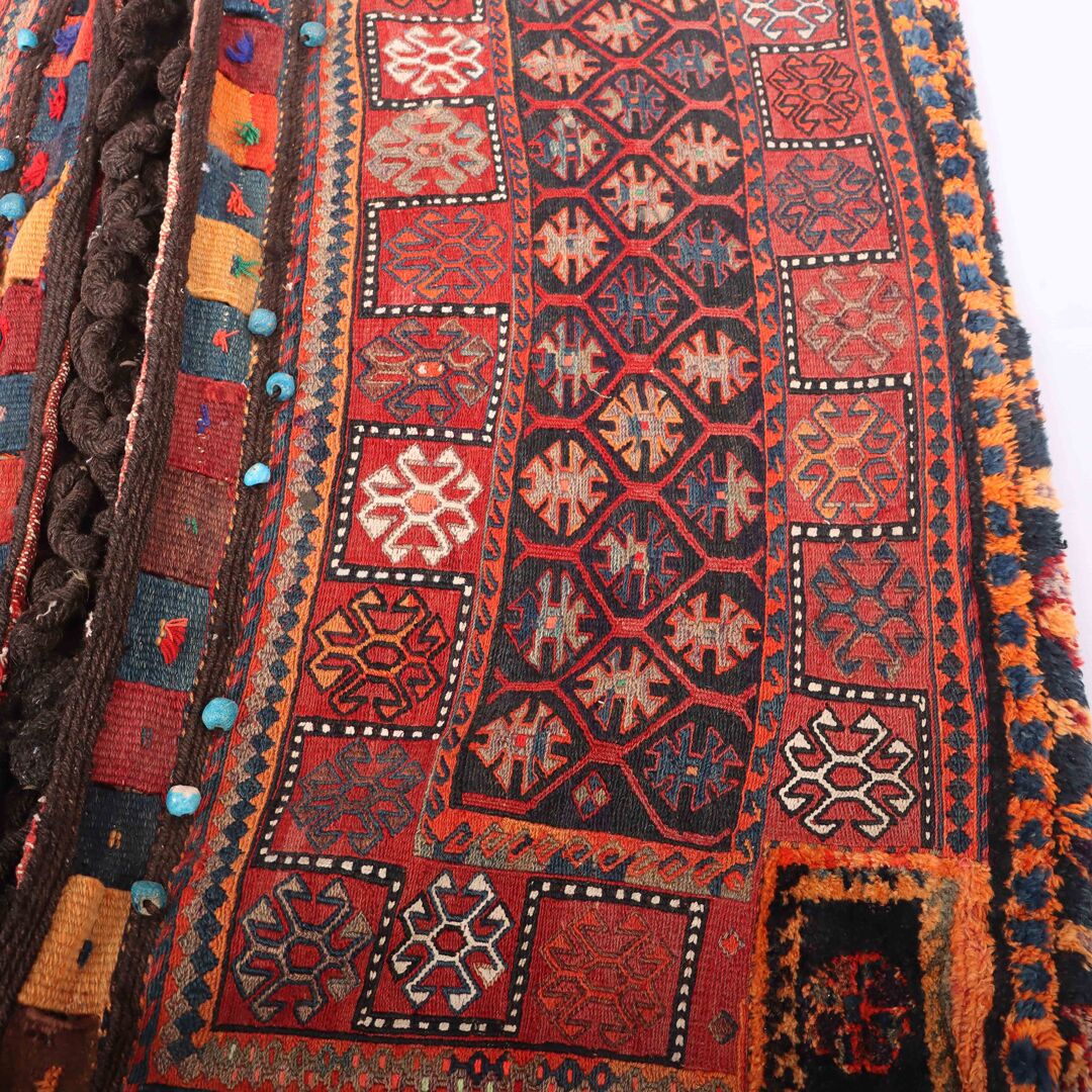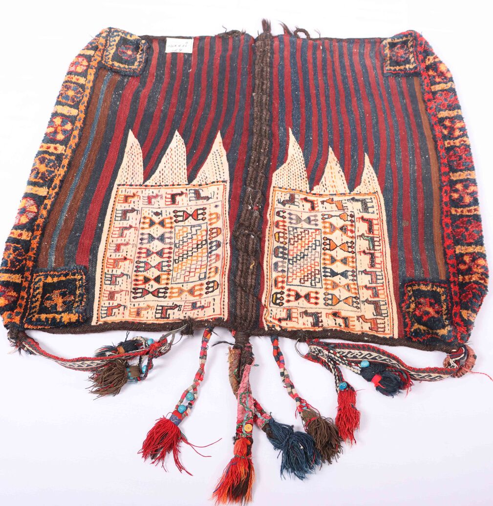 – Collectible Tribal: A unique and collectible Balouchi Saddle Rug with pure hand-spun wool pile on a cotton base.