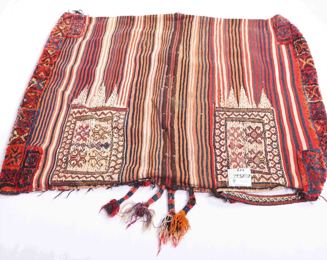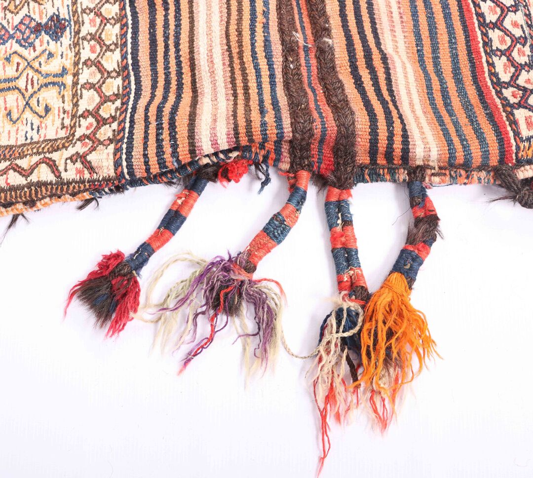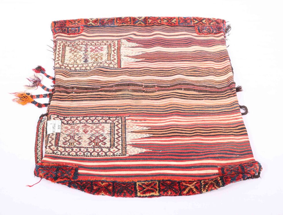 – Collectible Tribal: A unique and collectible Balouchi Saddle Rug with pure hand-spun wool pile on a cotton base.