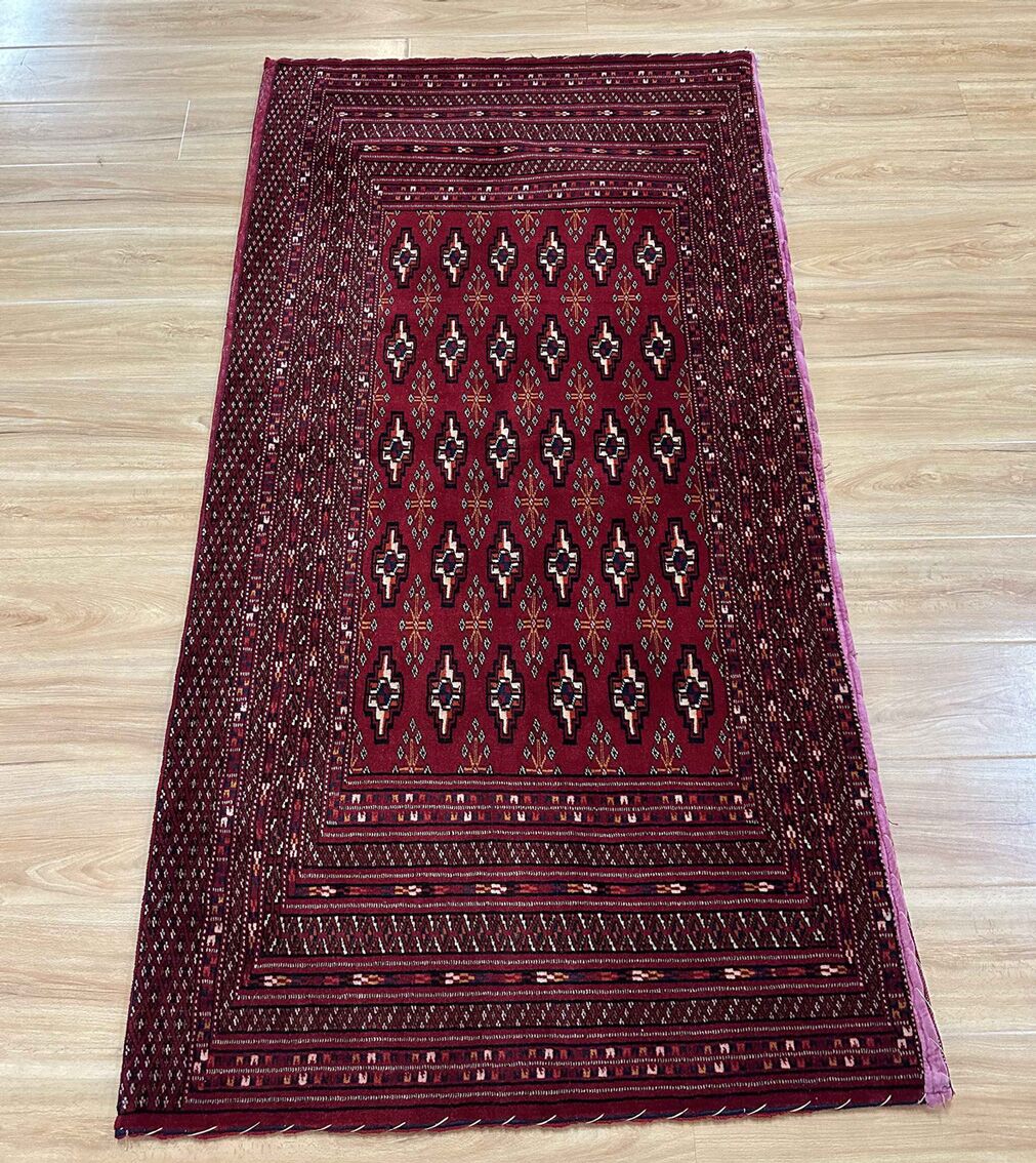 • Handwoven Mastery: Originating from East Persia, these Poshti rugs were woven by nomadic weavers who poured their artistry into every knot, creating a design that carries the rich tradition of Turkoman tribes.
