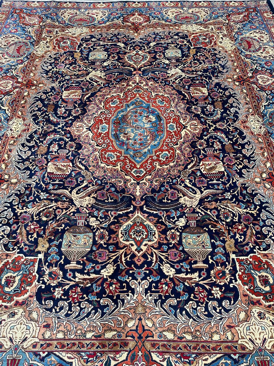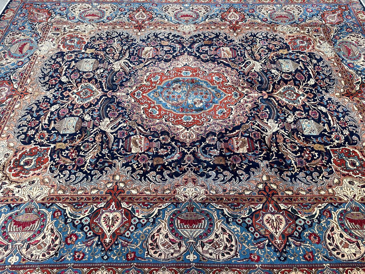 Stunning Large Room Size Authentic Handmade Treasure Design Persian Kashmar Rug